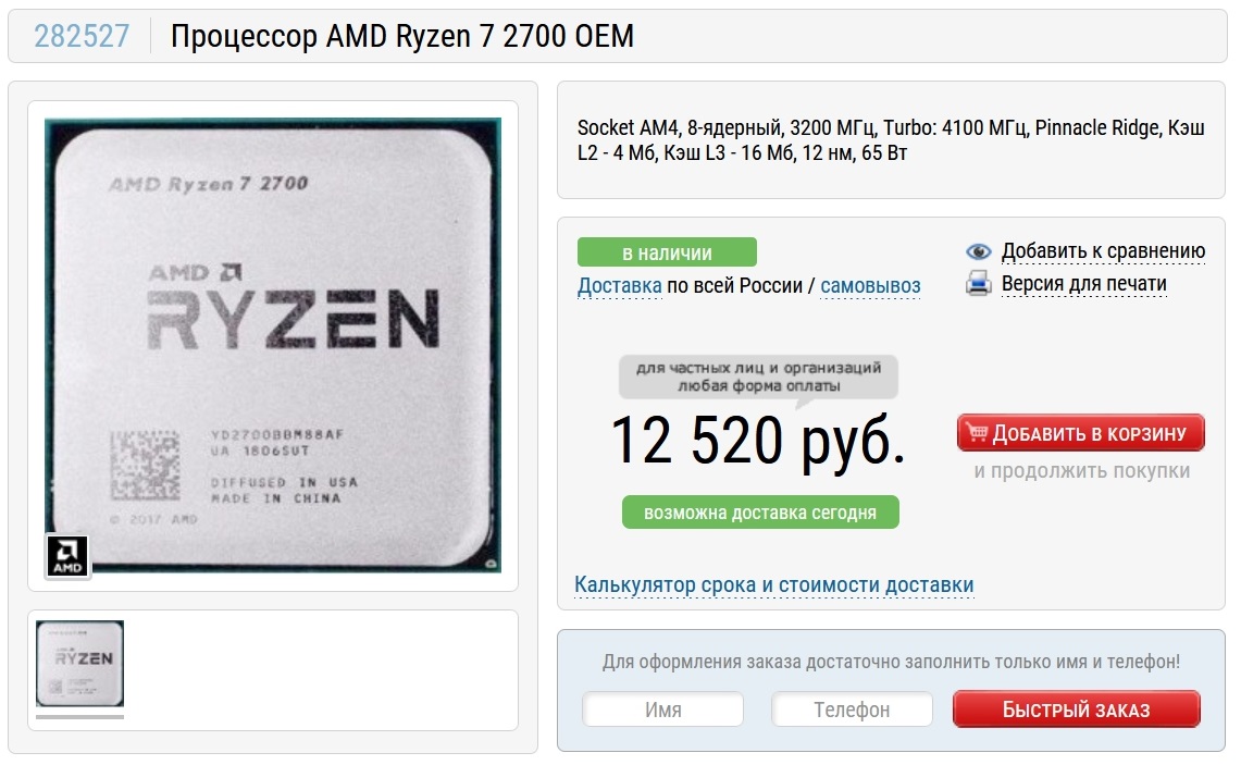 Чуть дороже стоит восьмиядерный Ryzen 7 2700, который в то время уже сложно было найти в продаже.
