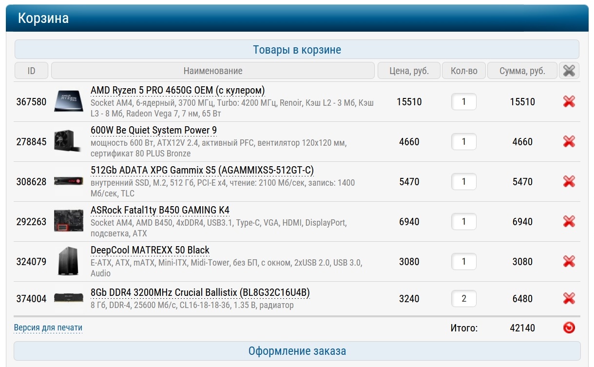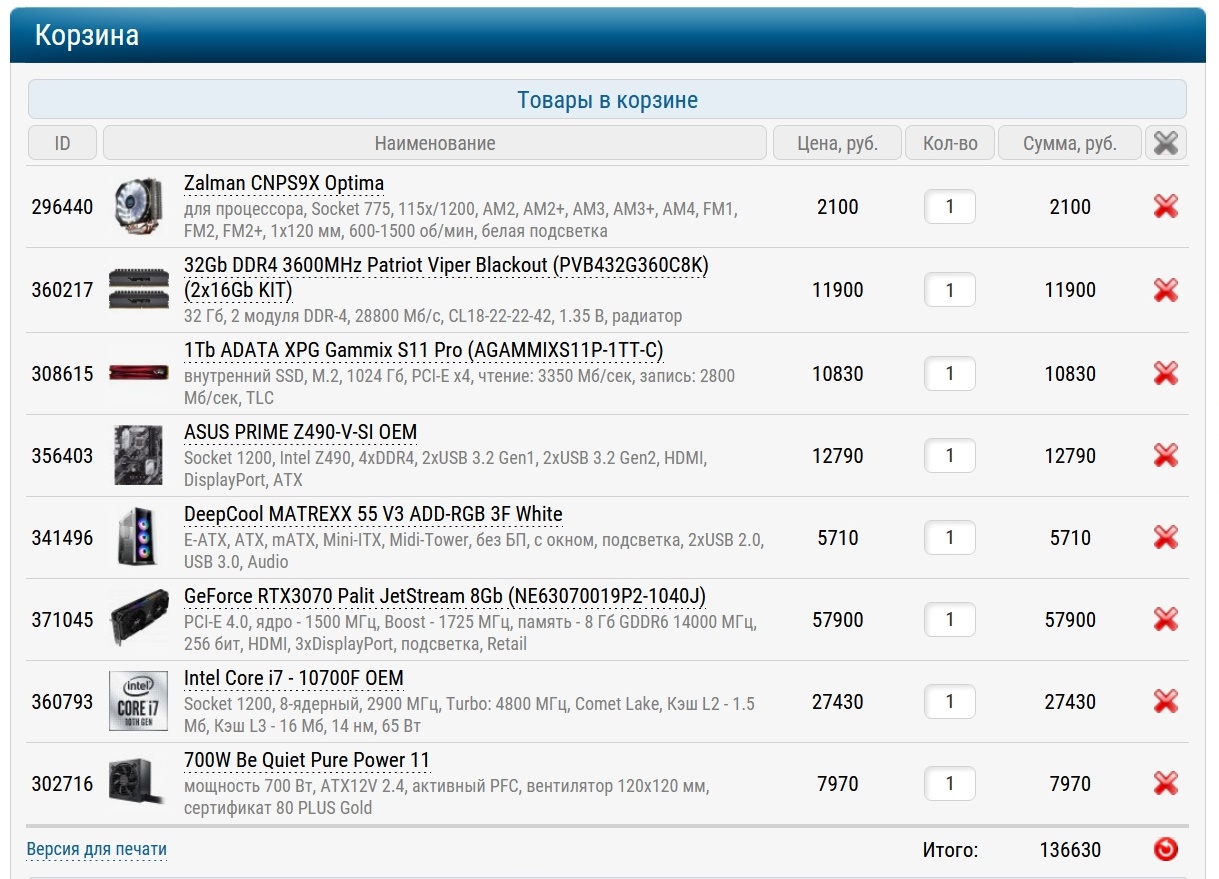 Итоговая стоимость сборки.