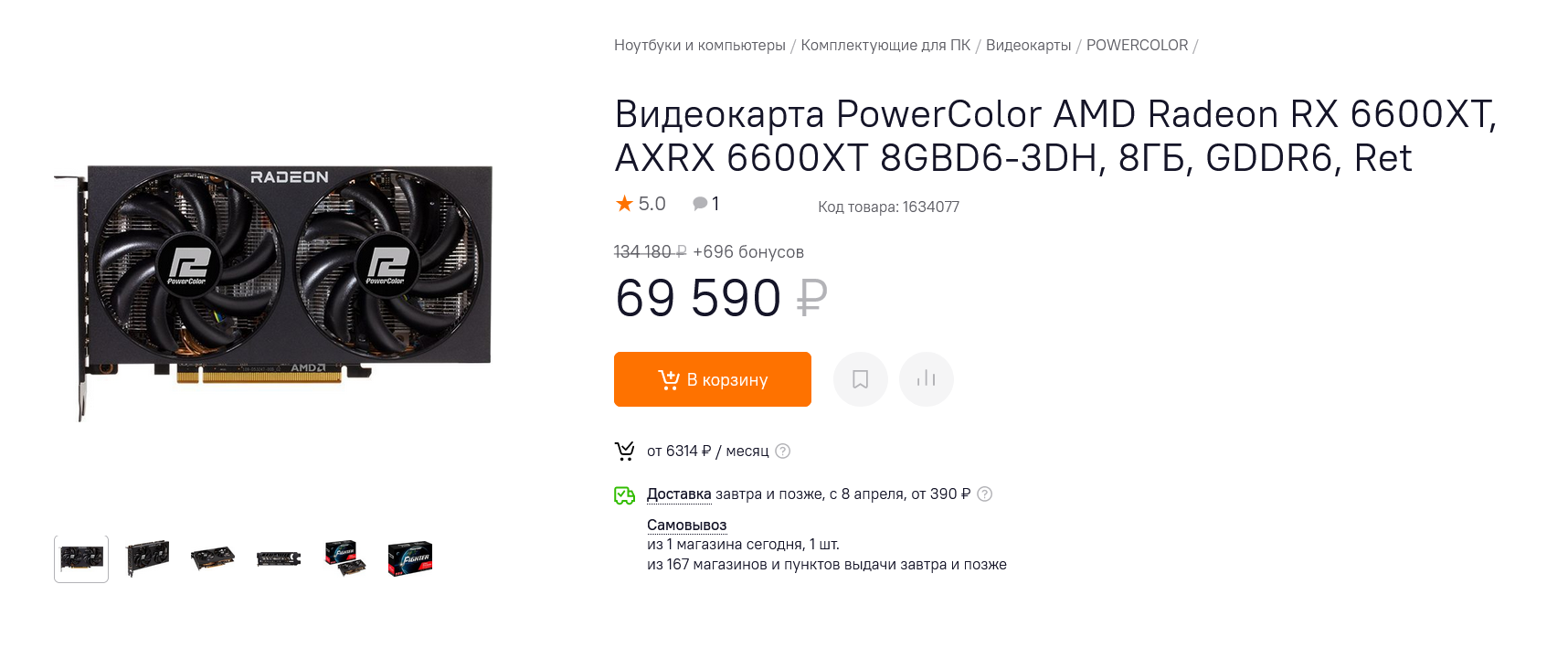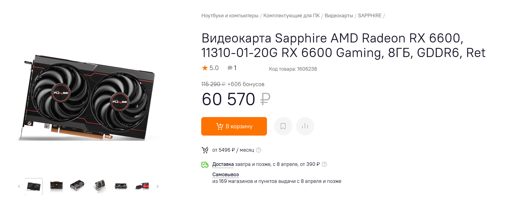 Не хотят падать цены и на Radeon RX 6600, самые недорогие модели которых дешевле 60000 рублей пока еще не найти, например, Sapphire Radeon RX 6600 Pulse. До кризиса недорогие модели Radeon RX 6600 можно было найти за 48000-50000 рублей и сегодня цена в 60000 рублей выглядит слишком завышенной. Ведь добавив 8000 рублей, уже можно купить GeForce RTX 3060, более предпочтительную для большинства геймеров.