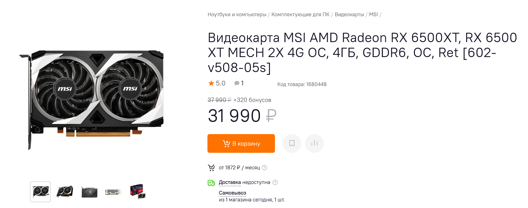 Ну а Radeon RX 6500 XT, неплохой бюджетный выбор для систем с PCI Express 4.0, стоит 31990 рублей.