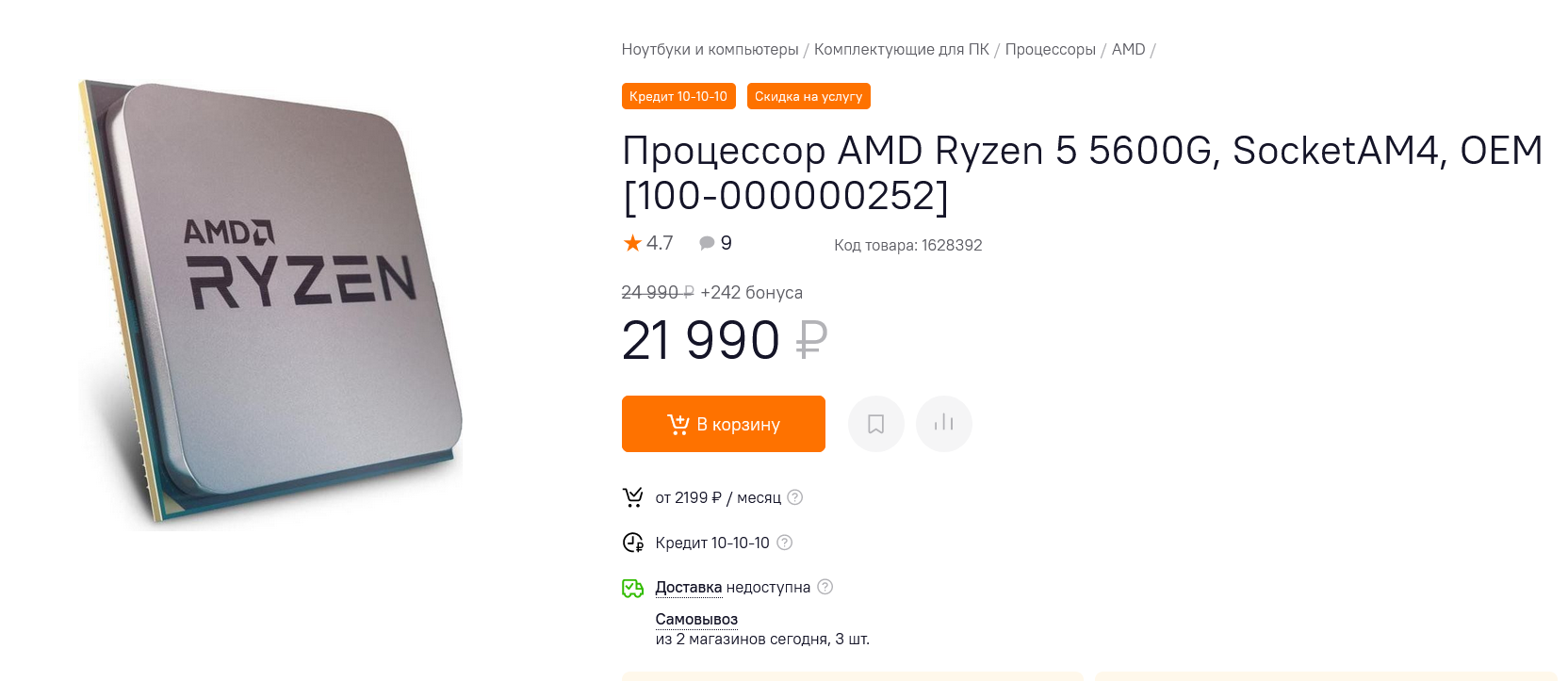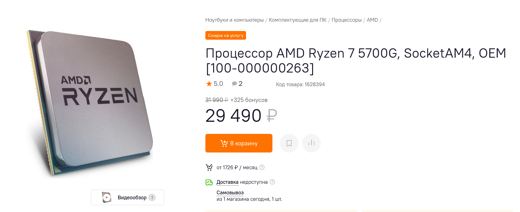 И наконец, самое производительное решение с встроенной графикой - Ryzen 7 5700G с Radeon Vega 8.