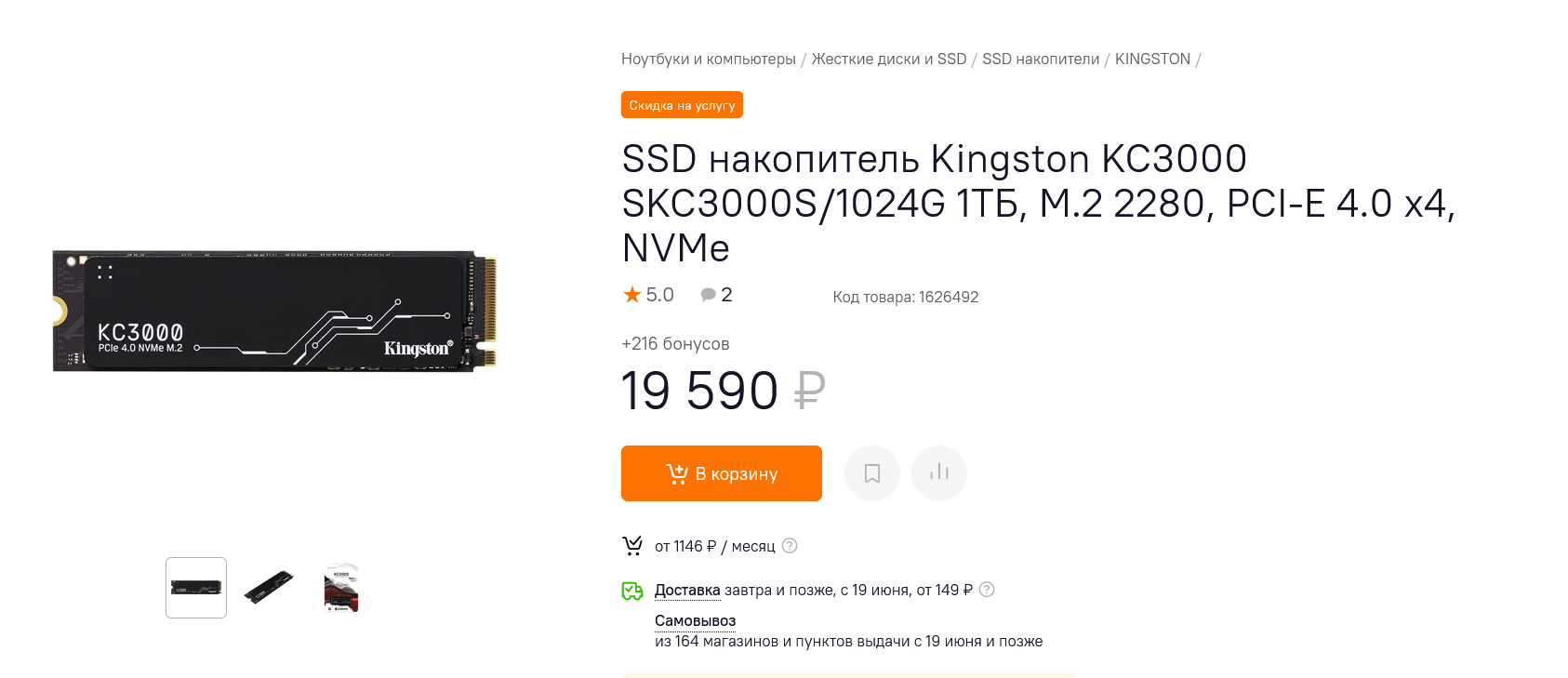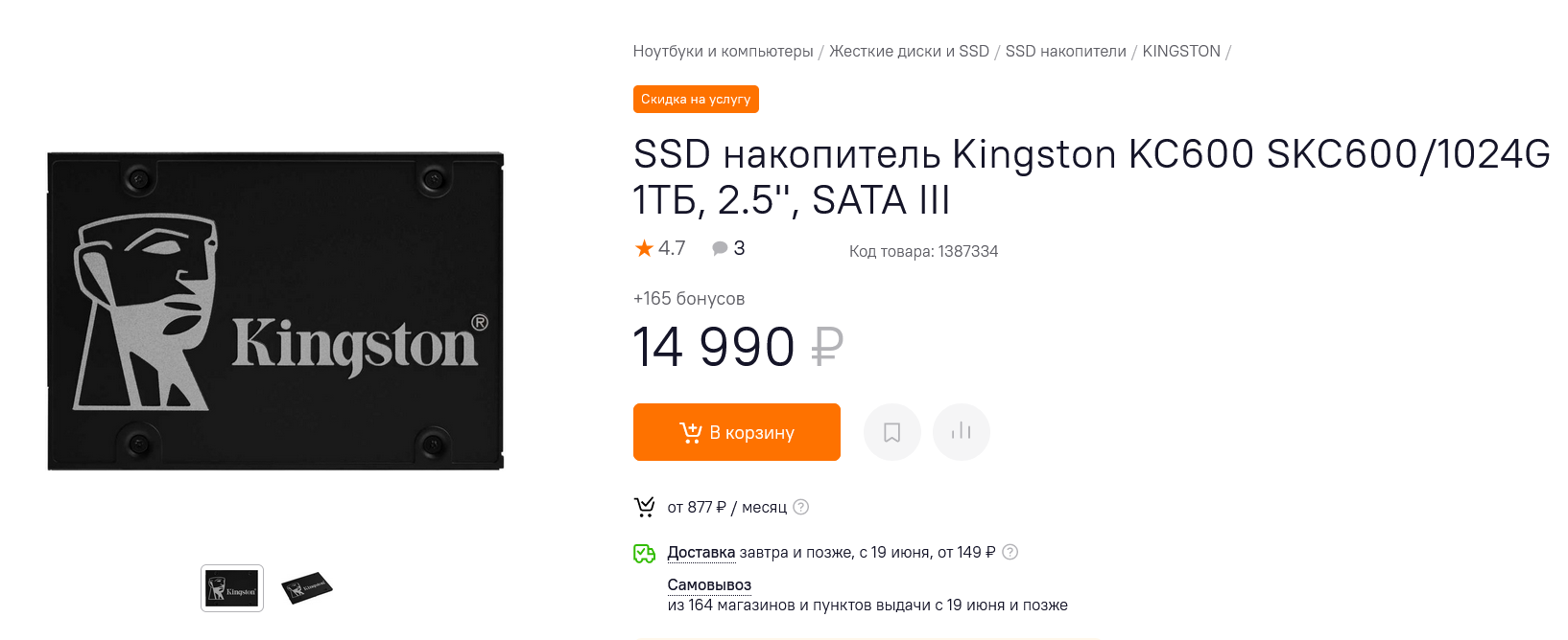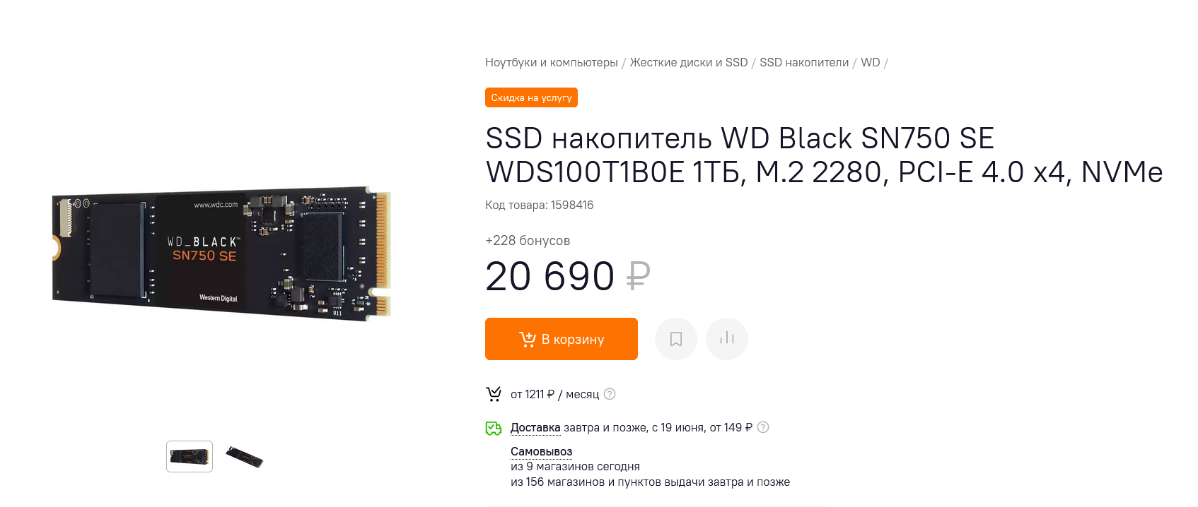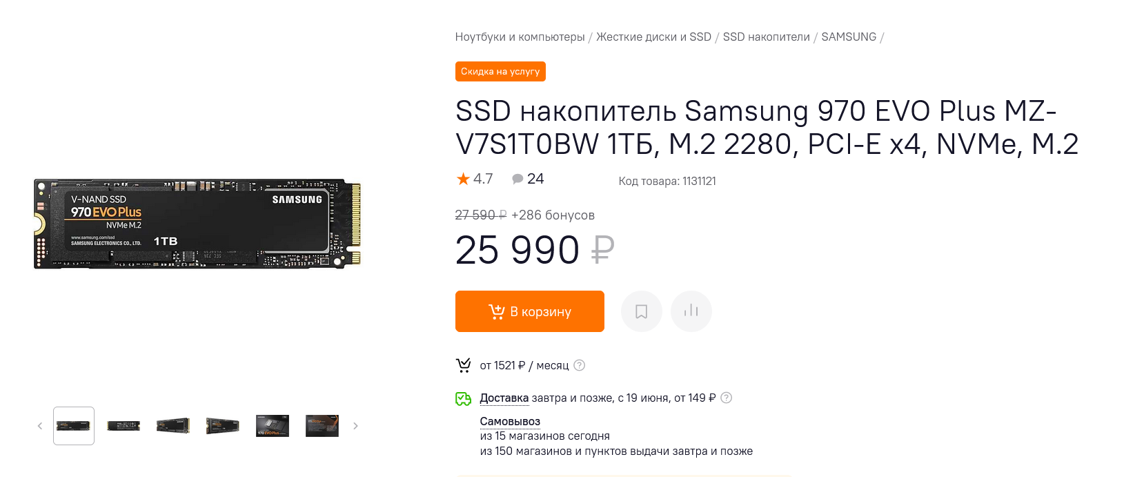 Совсем недавно эту модель можно было купить за 11-12 тысяч рублей, но в июне 2022 года ее цена составляет пугающие 25990 рублей. Такой рост можно объяснить как повышением цен на все SSD-накопители Samsung, о котором компания Samsung заявила в начале года, так и санкционным давлением, ведь в интернет-магазине Computeruniverse Samsung 970 EVO Plus MZ-V7S1T0BW стоит меньше 100€, а на AliExpress - чуть дороже 10000 рублей.