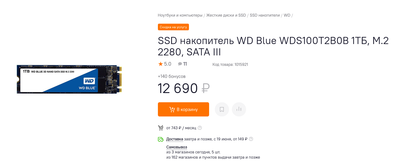10 самых популярных SSD объемом 1 ТБ в июне 2022 года