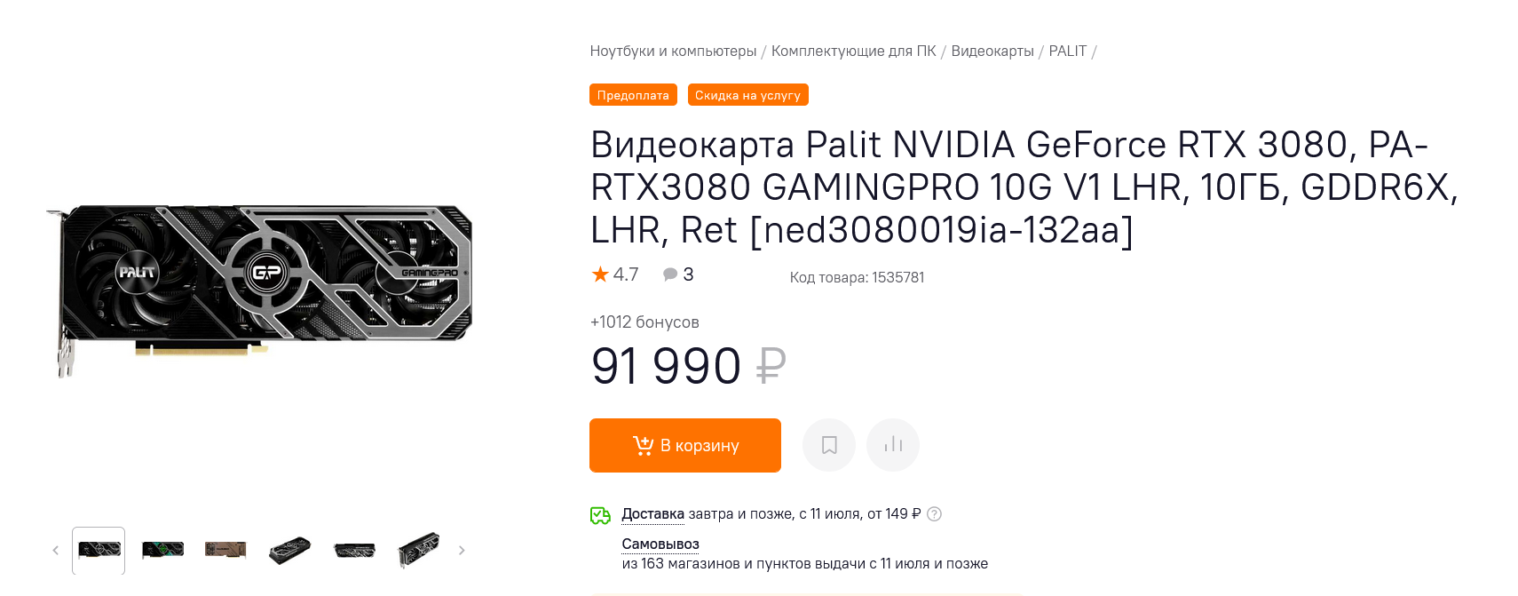 И разница в стоимости может достигать огромных сумм, за которые мы умудряемся собирать бюджетные игровые ПК. Например, Palit GeForce RTX 3080 GamingPro в Ситилинке стоит 91990 рублей.