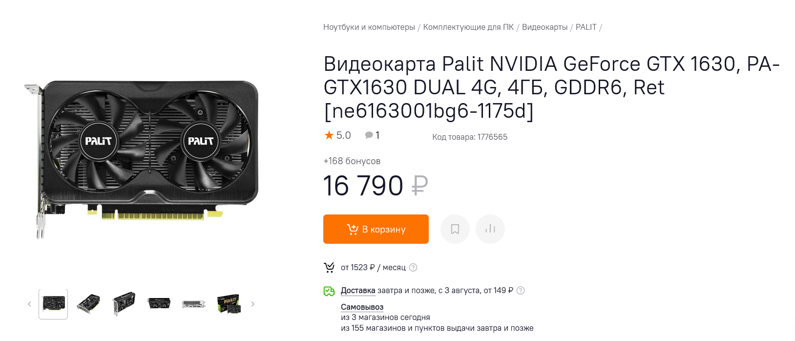 GeForce GTX 1630 - довольно спорная новинка, нацеленная на сегмент видеокарт начального уровня, позволяющих поиграть в новинки игр на минимальных настройках. По производительности GeForce GTX 1630 немного отстает от GeForce GTX 1050 Ti, но и стоит дешевле. Вдобавок реальное энергопотребление новинки ниже и Palit GeForce GTX 1630 Dual, судя по обзорам, потребляет в играх около 50 ватт. А главное преимущество новинки перед видеокартами Radeon RX 6400 и Radeon RX 6500 - наличие более сильного видеодекодера и полноценных функций кодирования видео, что делает видеокарту отличным кандидатом в мультимедийные ПК.