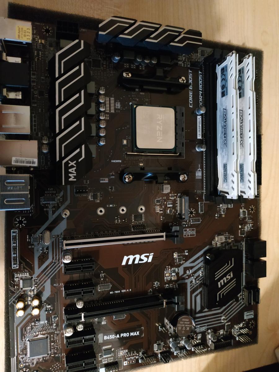 К мысли о том, что пора сменить всю платформу, я пришел после того, как собрал друзьям и знакомым три компьютера на шустрых и недорогих Ryzen 5 1600 AF, которые стоили тогда 7000 рублей. И когда рубль в марте 2020 просел, а цены на комплектующие начали расти, я купил Ryzen 5 1600 AF за 7600 рублей, материнскую плату MSI B450-A PRO MAX за 6000 рублей и 32 ГБ ОЗУ Crucial Ballistix Sport LT BLS16G4D30AESC за 13300 рублей.