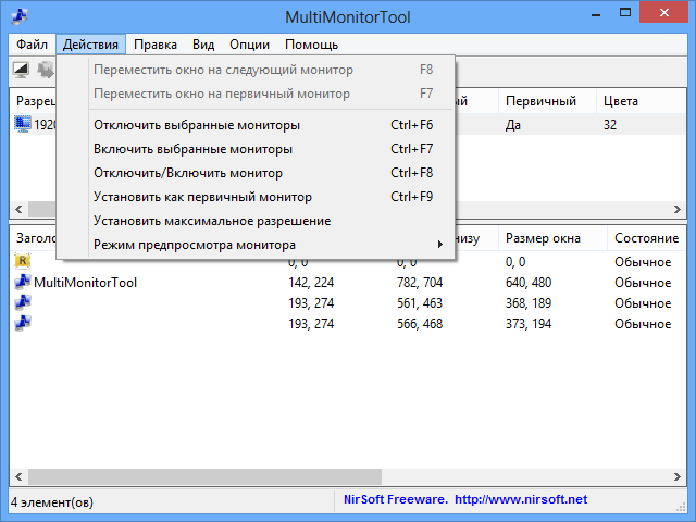 Все чаще у пользователей появляются мультимониторные конфигурации, ведь подключив к ПК современный телевизор, мы получаем удобнейшую систему для просмотра видеоконтента. Вот только работа с двумя мониторами в Windows пока не так удобна, как хотелось бы, хотя прогресс по сравнению с Windows 7 огромный. Утилита MultiMonitorTool предоставляет огромное количество возможностей при работе с двумя мониторами: можно включать и отключать мониторы, устанавливать первичный монитор, сохранять и загружать профили настройки мониторов и перемещать окна между мониторами. Причем все действия, как и в случае с SoundVolumeView, можно выполнять с помощью командной строки или ярлыков.
