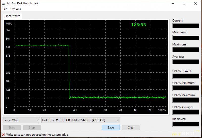 Для всех накопителей мы посмотрим и на такую важную характеристику, как скорость последовательной записи, ведь при покупке нужно учитывать особенности записи современных SSD, когда максимальная скорость достигается при записи в SLC-кеш. Здесь и далее эти данные я буду брать из обзоров в сети, с внушающих доверие сайтов, ведь производители не указывают такую важную для пользователя информацию. Нужно учитывать и то, что подобные тесты обычно производятся на пустом накопителе, а если объем данных на нем велик - скорость будет еще ниже.