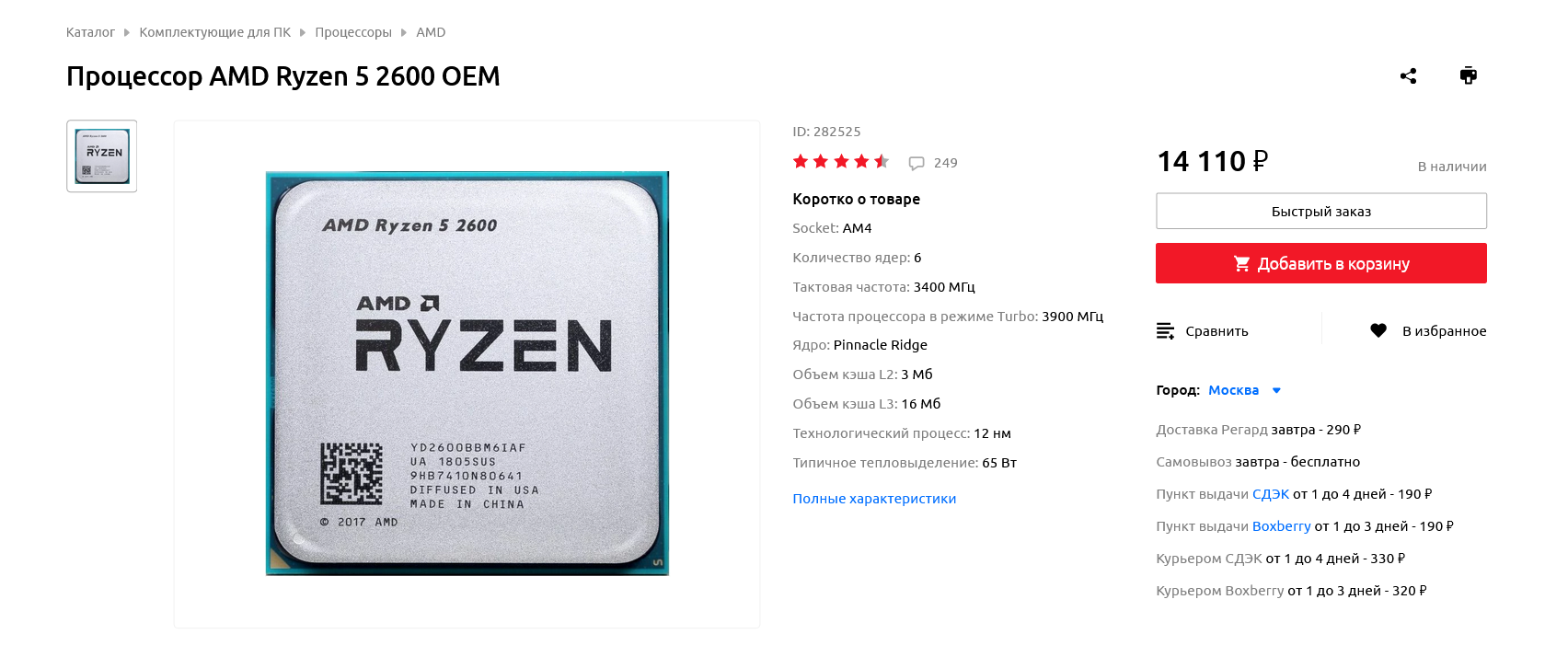 Конечно, есть еще AliExpress, где цены заметно ниже, но брать там такое хрупкое устройство, как процессор, решаются не все. Я тоже готов доплатить, но получить возможность купить процессор сразу, без ожидания, с возможностью осмотреть при покупке и с полноценной местной гарантией.
