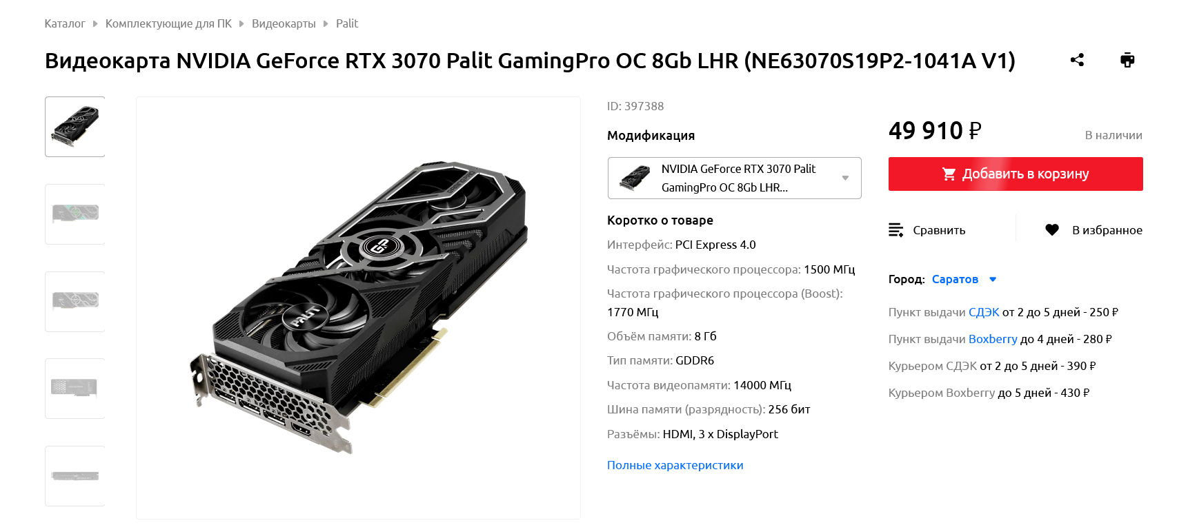 Или доплатить довольно солидную сумму до GeForce RTX 3070, но получить более мощную видеокарту, которая потенциально более надежна.