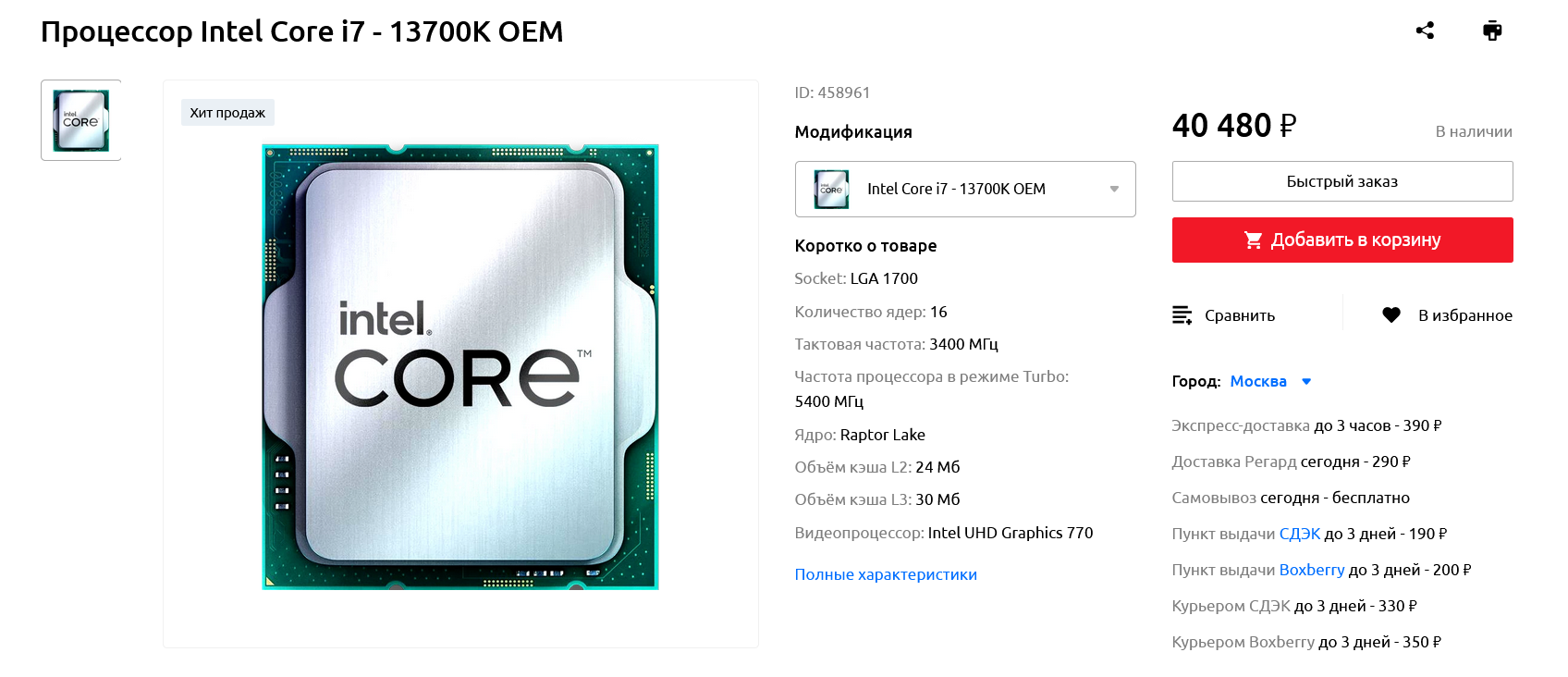 Вот такая десятка процессоров самая популярная в апреле 2023 года в Регарде. Как видно, покупатели в основном предпочитают процессоры Intel, включая как самые дешевые модели для бюджетных ПК, так и топовые многоядерные монстры, способные стать основой мощного игрового компьютера за несколько сотен тысяч рублей.