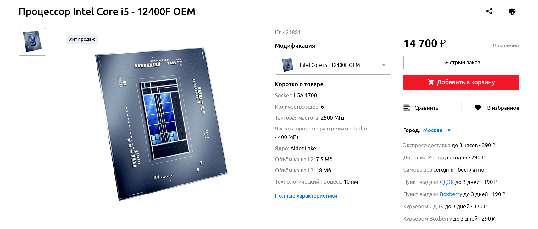И наконец, самый популярный процессор в Регарде — Core i5-12400, популярный шестиядерник со встроенной графикой Intel UHD Graphics 730. Почему покупатели предпочитают доплатить за встроенную графику может быть много причин, одна из которых — затронувший многих дефицит видеокарт. Курсы криптовалют опять начинают расти, и встроенная графика совсем не помешает, позволяя продать основную видеокарту майнерам по высокой цене.
