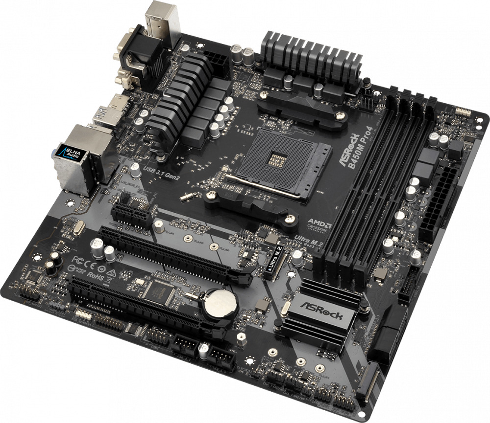 Ryzen 5 5600 можно назвать оптимальным выбором для игрового ПК среднего уровня летом 2023 года. Стоит он заметно меньше, чем Ryzen 5 5600X, но отстает от него совсем немного. Эту разницу легко перекрыть разгоном, и мы возьмем ему в пару ASRock B450M Pro4 R2.0, плату на чипсете AMD B450 с хорошей системой питания, полностью закрытой радиаторами, которая позволит разогнать наш процессор. А еще у ASRock B450M Pro4 R2.0 есть два слота M.2 и отличные возможности по разгону ОЗУ.