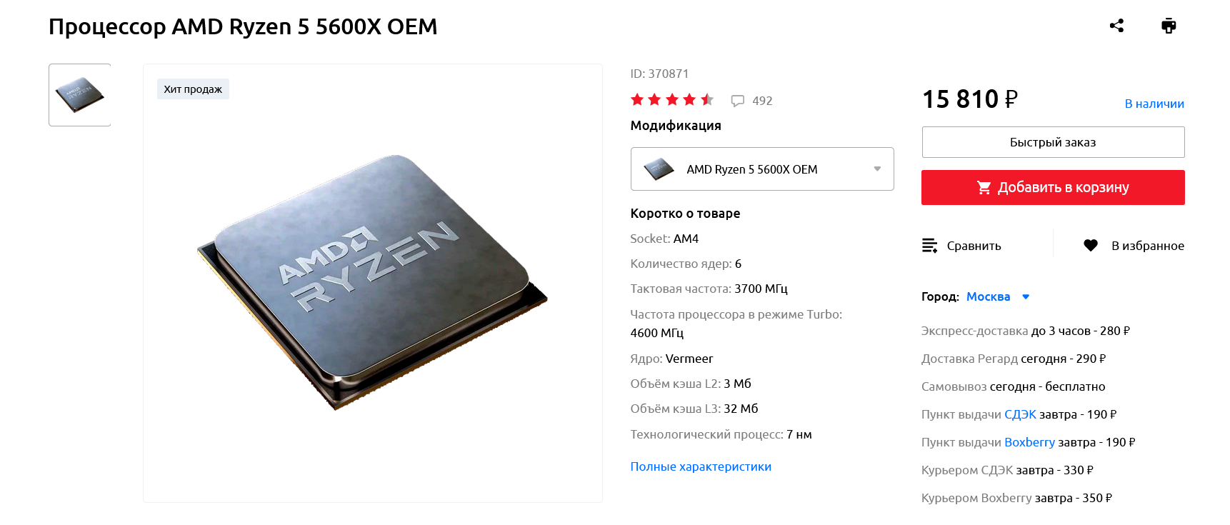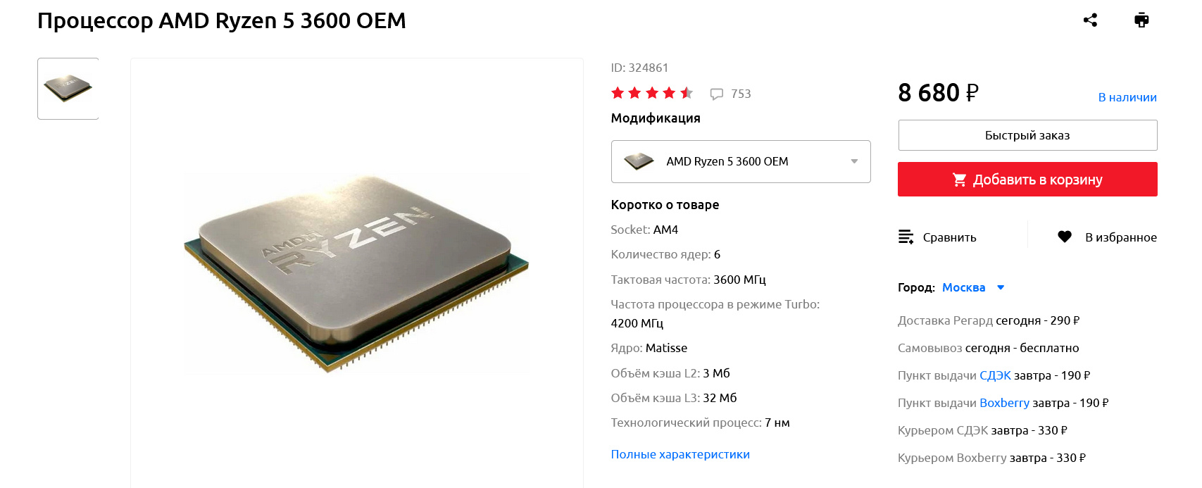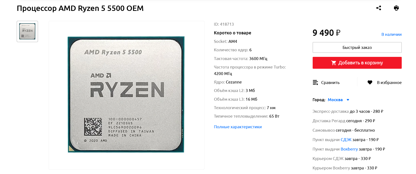 Многие, увидев эту связку, воскликнут — "Что это за старье!". Но вы только посмотрите на цены — Ryzen 5 3600 стал стоит заметно дешевле Ryzen 5 5500, а Radeon RX 580 значительно обгоняет GeForce GTX 1650, с которой стоит одинаково. Ее единственный минус — более высокое энергопотребление.