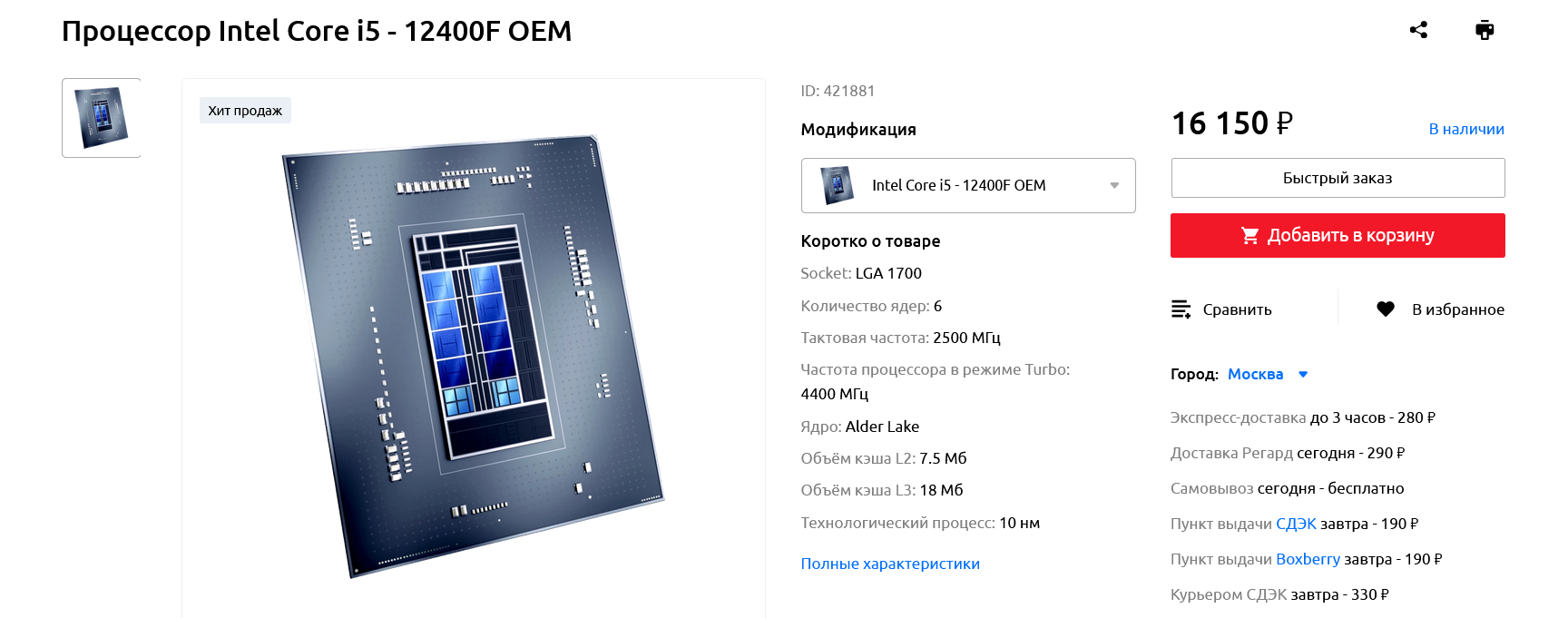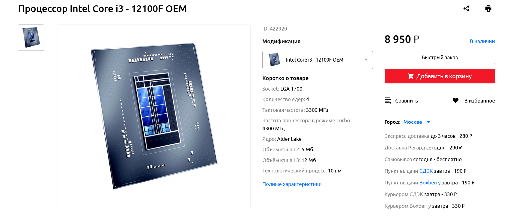 Core i3-12100F очень быстрый, холодный и недорогой четырехъядерник, который отлично показывает себя в киберспортивных играх. В пару ему отлично подойдет видеокарта Radeon RX 6500 XT, которая раскрывается на максимум в системах с шиной PCI Express 4.0, которую имеют даже самые бюджетные платы LGA 1700.