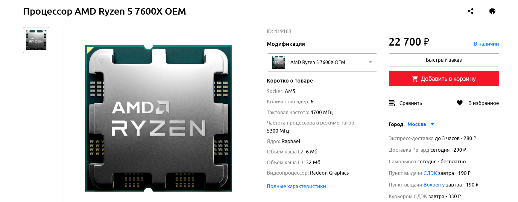 Ryzen 5 7600X имеет всего шесть ядер, но в играх обгоняет не только восьмиядерный Ryzen 7 5700X, но и Ryzen 9 5950X с 16-ю ядрами. Но материнская плата и память для него обойдутся дороже — это нужно учитывать. С ним вместе будет отлично смотреться Radeon RX 6700, видеокарта с 10 ГБ видеопамяти, которая стала отличным конкурентом в играх для более дорогих GeForce RTX 4060 Ti, но, только без активации трассировки лучей.