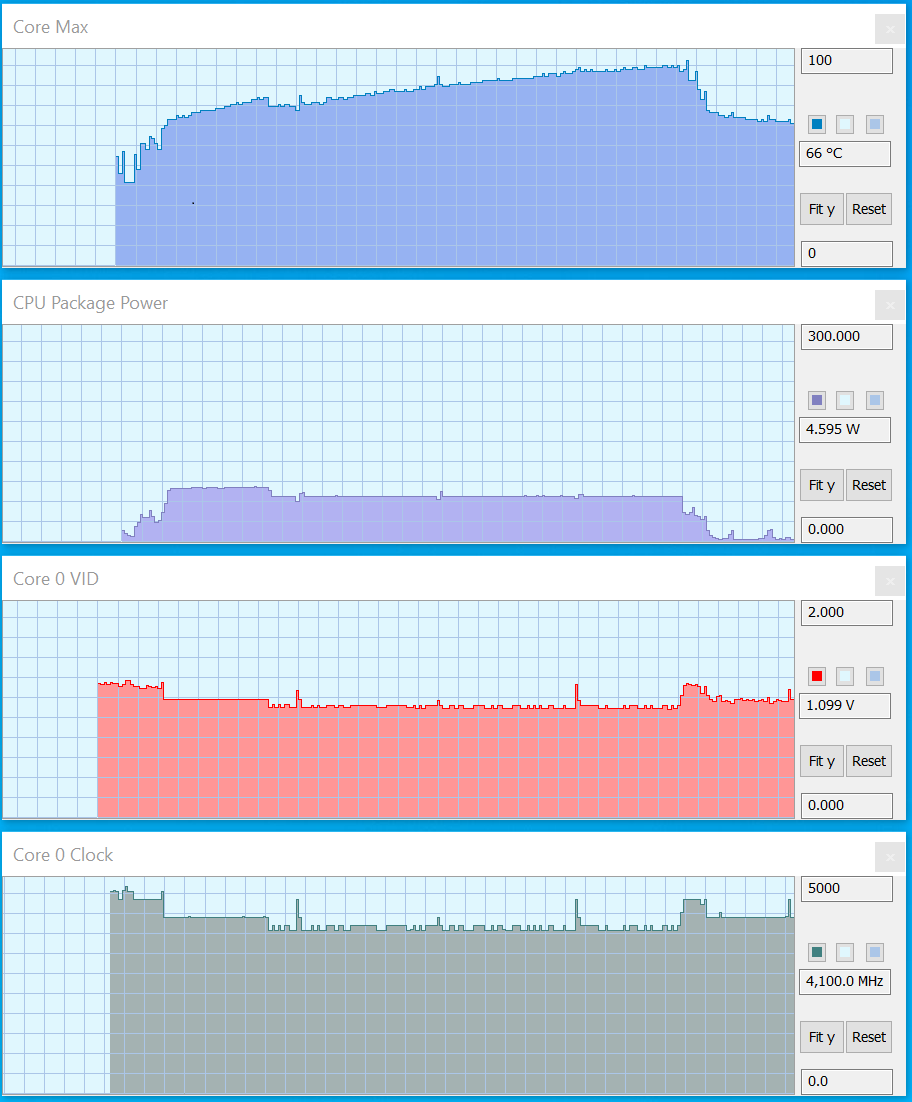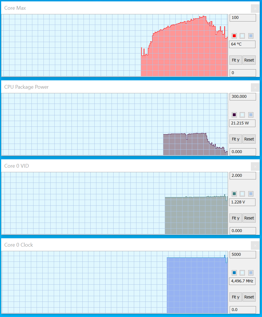 Система быстро нагревается, выходя к пиковому значению 100*С через 2 минуты 21 сек.