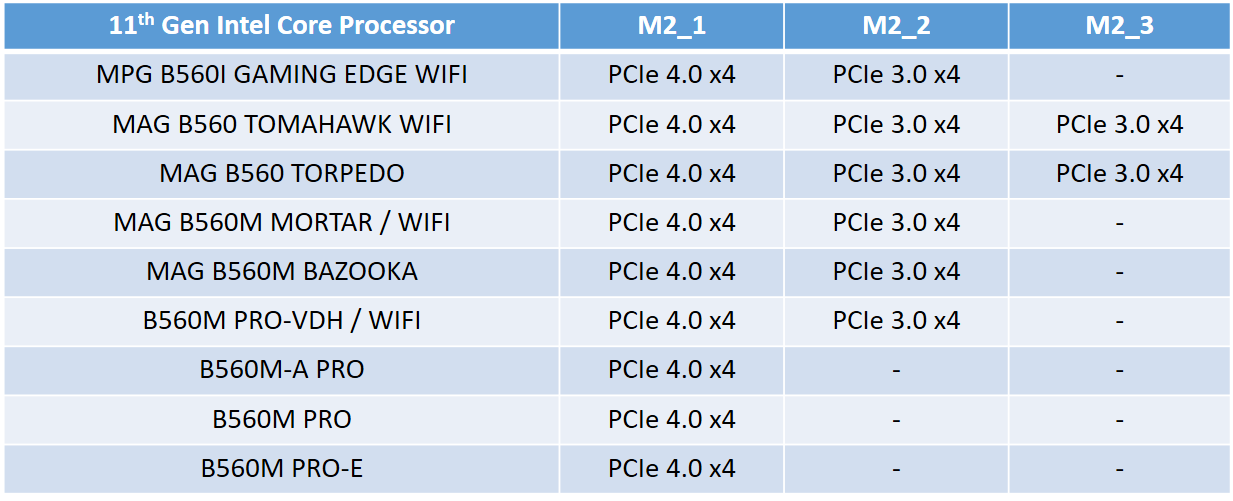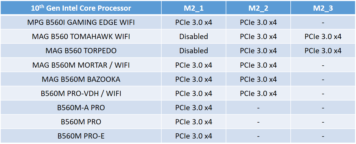 Недавно пользователи обнаружили, что при установленном процессоре 10-го поколения один из слотов M.2 не функционирует на некоторых материнских платах серии B560. Связано это с тем, что второй слот M.2 работает только при наличии процессора Intel Core 11 поколения. Все это означает, что при наличии двух M.2 слотов активным будет лишь один.