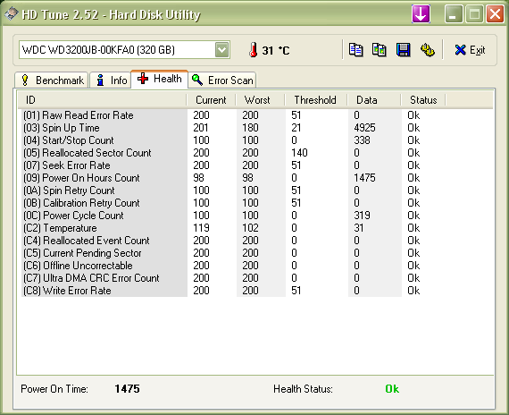 Здесь, думаю, объяснять ничего не нужно. Разве что могу пояснить разницу между Start/Stop Count (04) и Power Cycle Count (0С). Грубо говоря, эти показания соответствуют количеству старта/прекращения работы HDD и его включения соответственно. Почему это не одно и тоже, спросите вы. Во время BSOD HDD останавливается, питание на него подано, но шпиндель останавливается, затем заново раскручивается. Количество BSOD можете подсчитать сами, возникали они во время игры в TESIV: Oblivion. Их причина уже, как я надеюсь, устранена (драйвер звуковой карты).