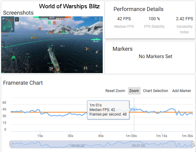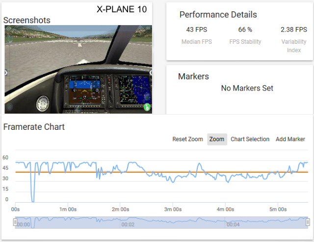 Играть вполне комфортно: GameBench показывает 46 фпс средних, но в свободном полете фпс приближается к 60. Небольшое падение возле земли никак не повлияло на играбельность. Просто жанр позволяет.