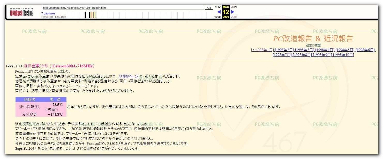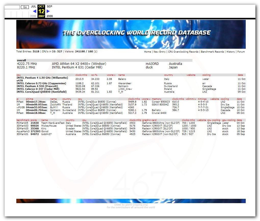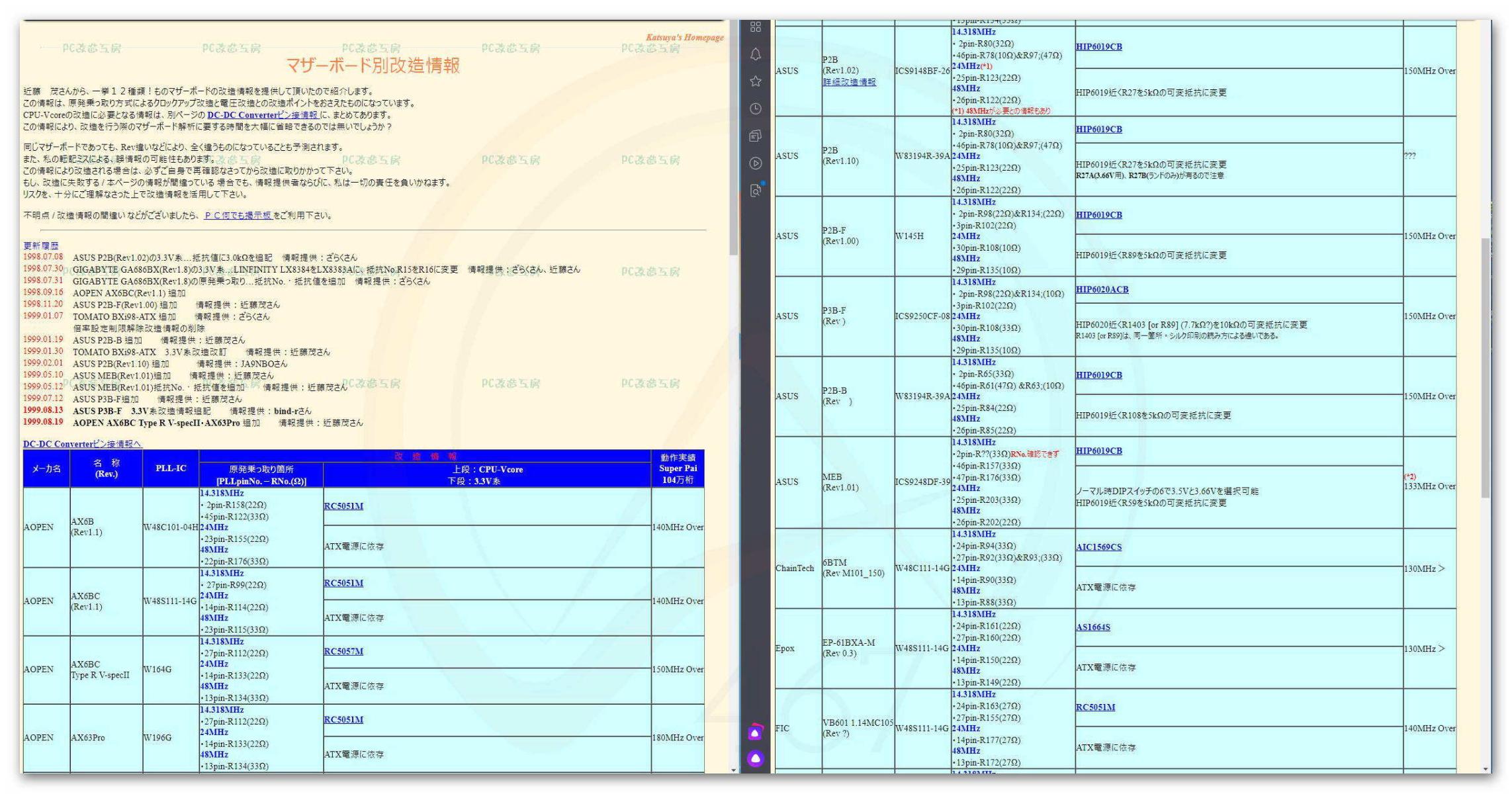 Первая база данных результатов разгона скорей всего была создана там же на сайте Nifty на странице FexTpup в 98-99г. как я не лазил по веб архиву, я не смог найти эту страницу. Но в интернете есть скрин в единственном экземпляре.