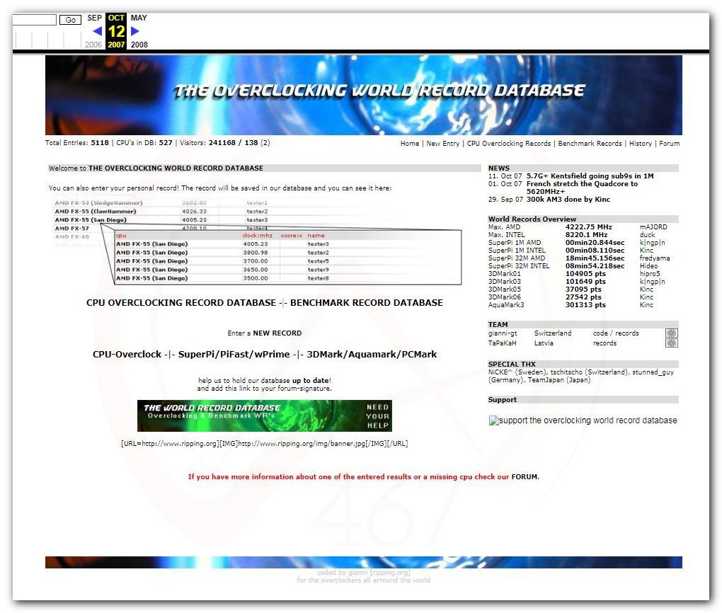 Пользователь RichBa5tard делал приложение для мобильного (MBot) которое отслеживало новые темы на форуме и новые результаты. Вскоре видимо было решено расширить проект, и было решено наверное, сделать веб ресурс, для ведения статистики разгона и много другого. Всё двигалось не быстро, были наверное споры нешуточные, потому как ресурс долго работал в тестовом периоде в 2005 году да и 2006 год также.