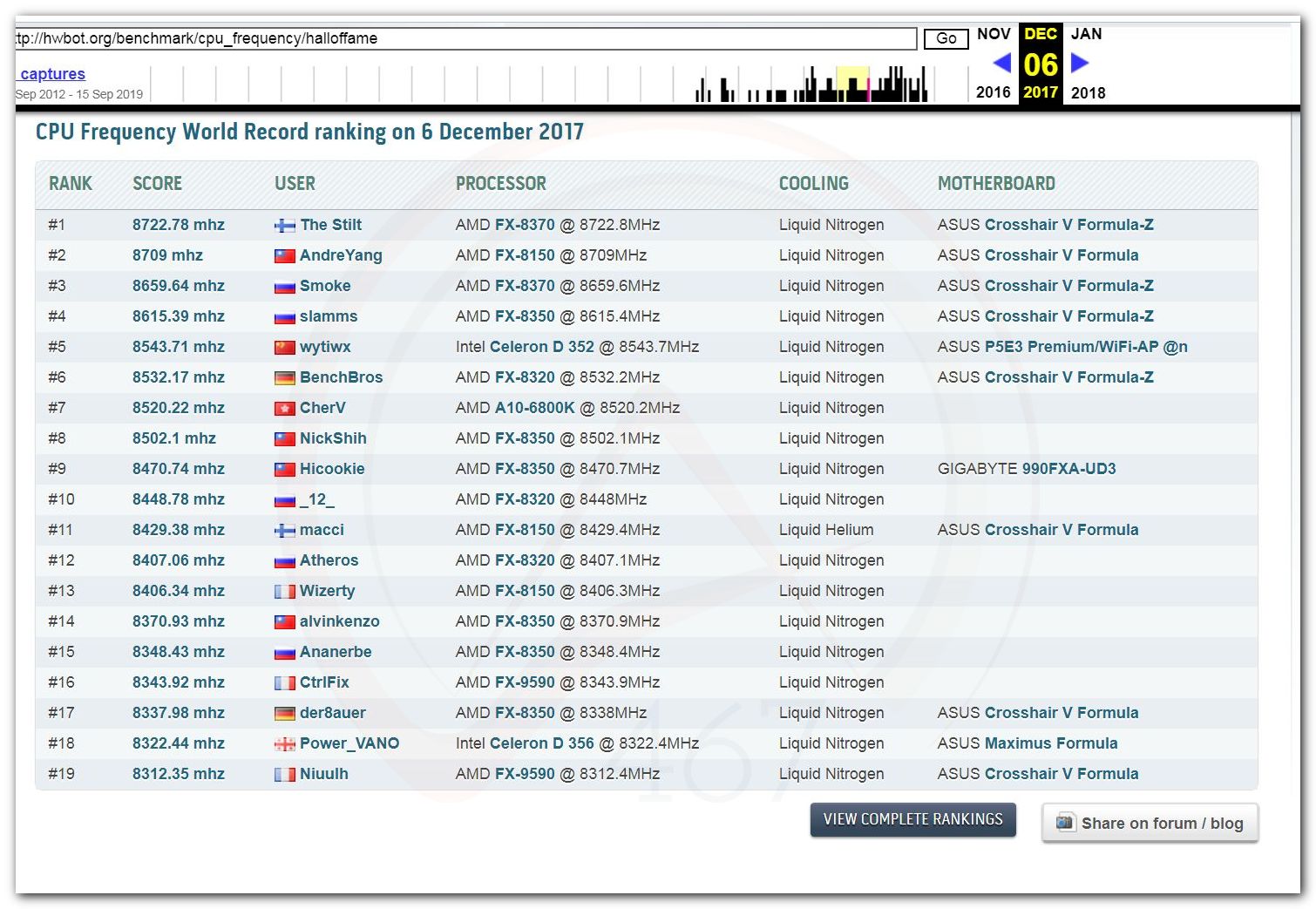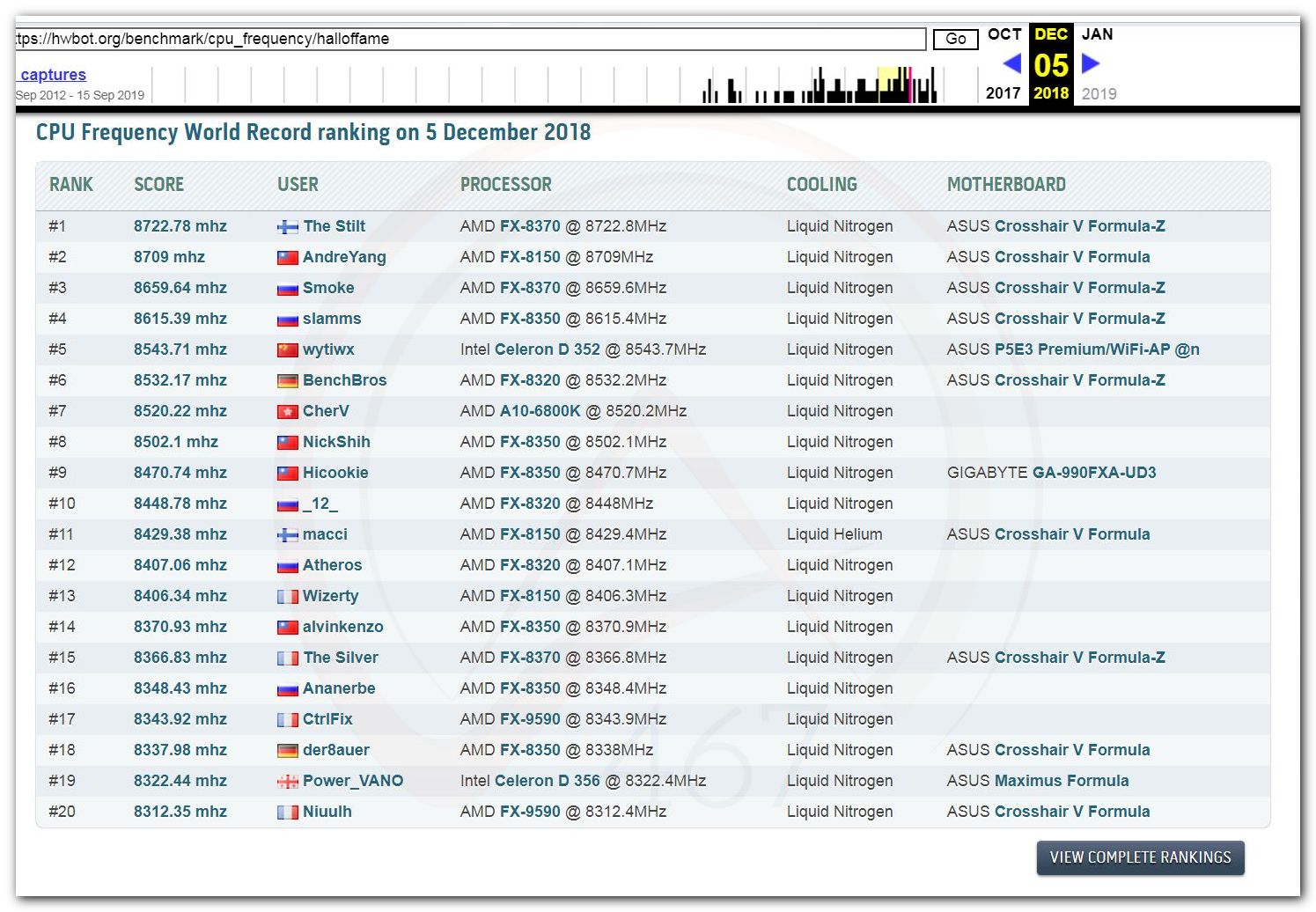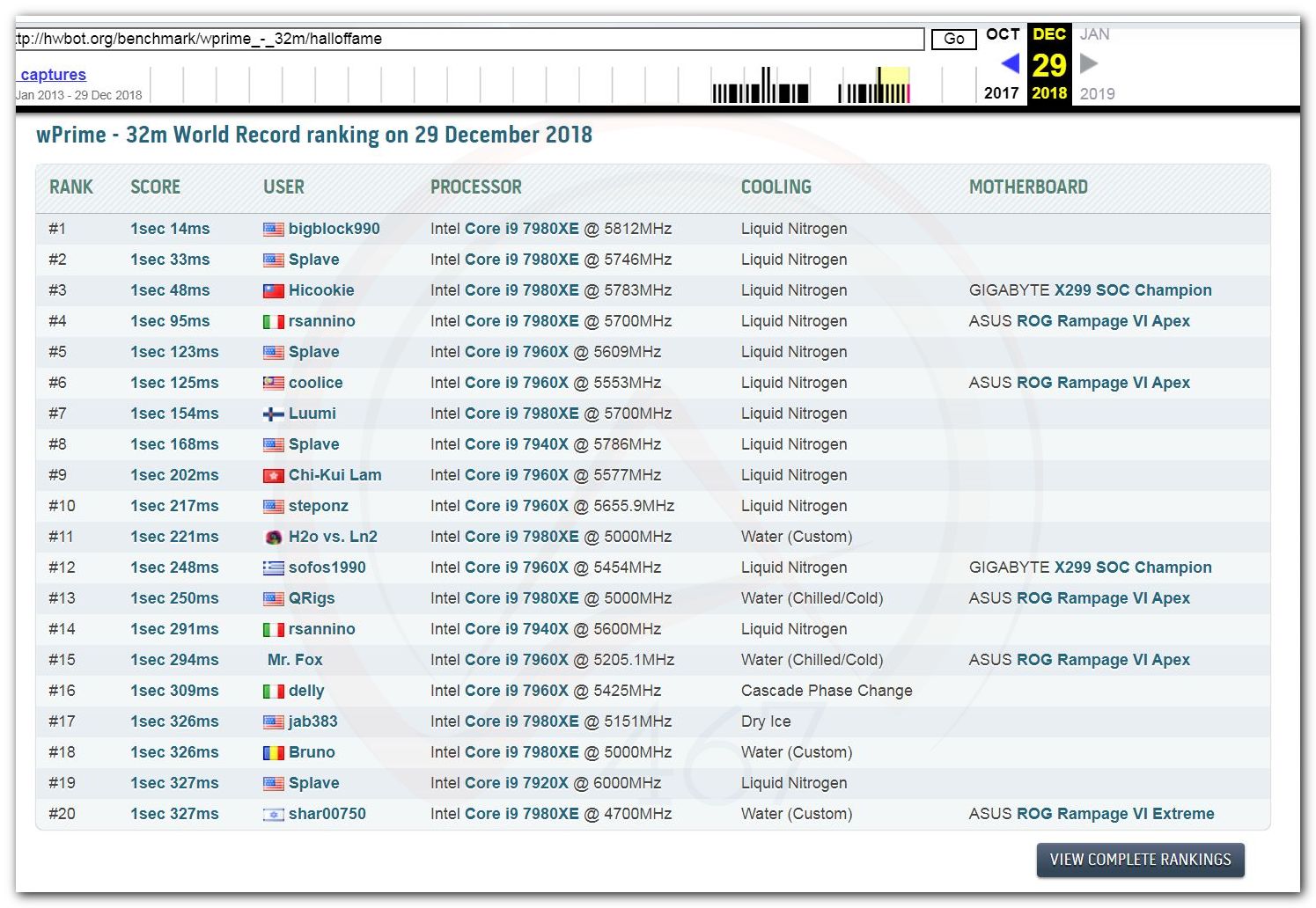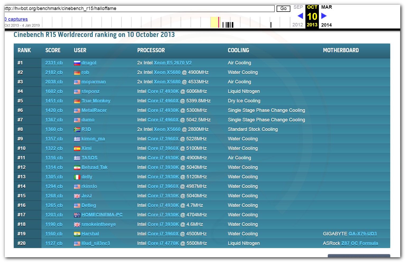 3 Ноября 2006 года, (Frederik richba5tard Colardyn) и остальные кто подключился к проекту Hwbot.org запускают первую ревизию ресурса. Регистрация некоторых команд была доступна немного раньше ещё в 2005 году, но тогда это была тестовая версия. Если не ошибаюсь сборная команда xtremesystems.org зарегистрировалась первой 20 апреля 2006 года.