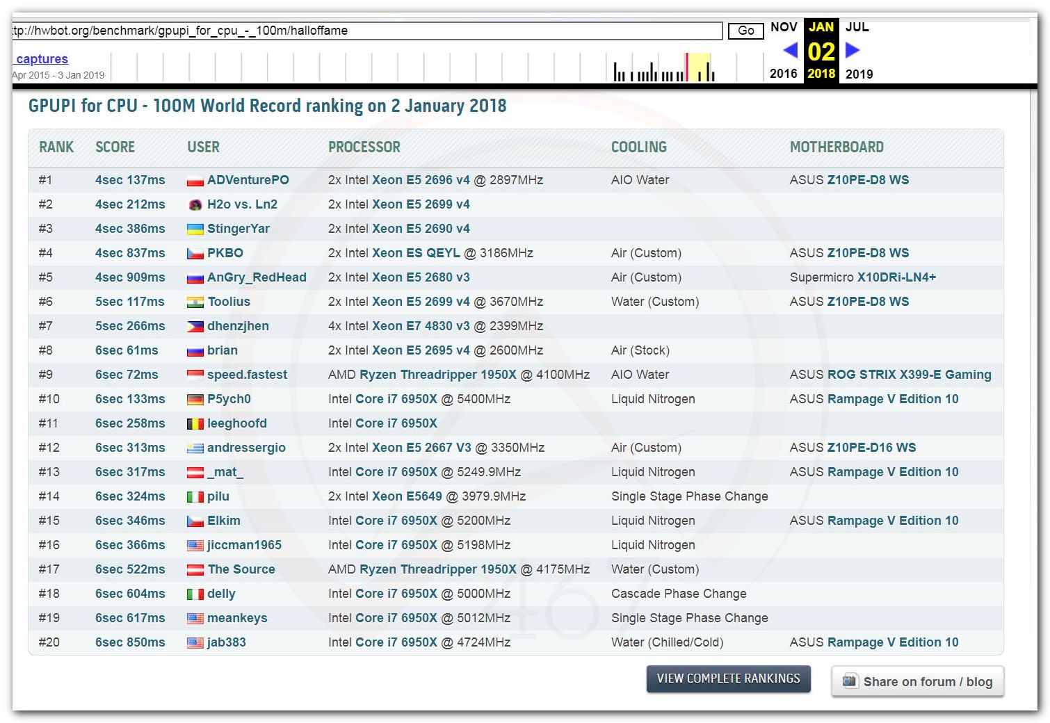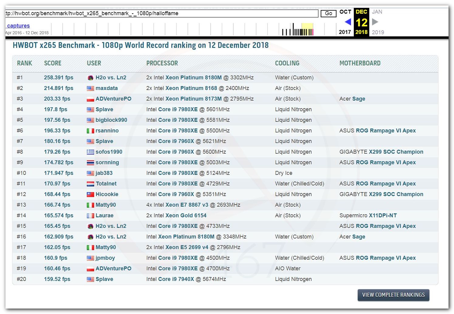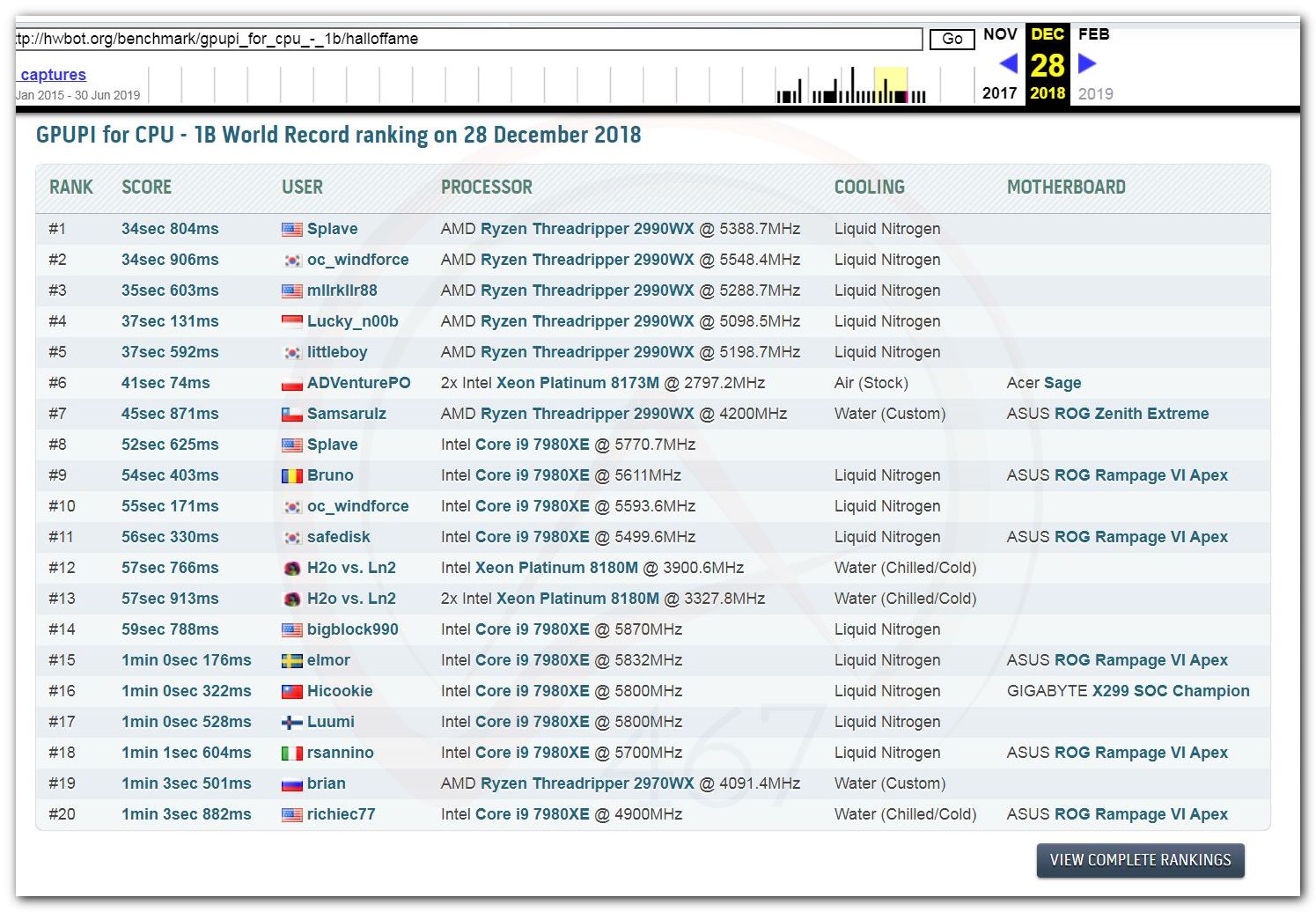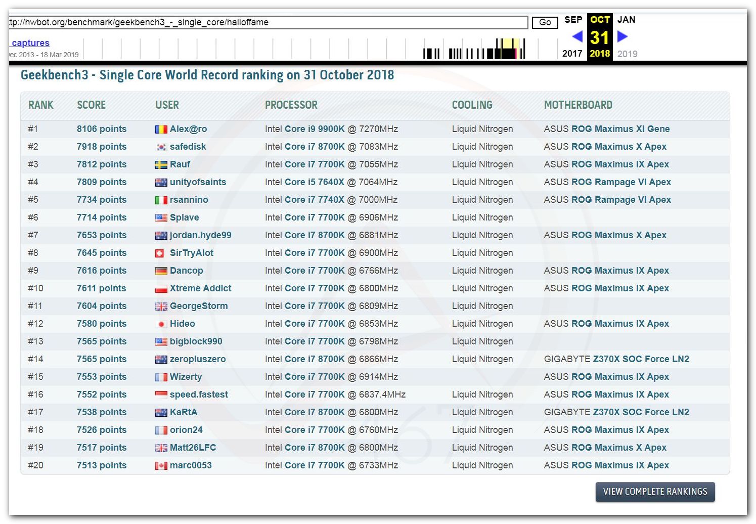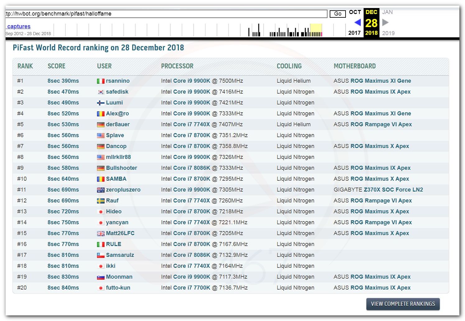 3 Ноября 2006 года, (Frederik richba5tard Colardyn) и остальные кто подключился к проекту Hwbot.org запускают первую ревизию ресурса. Регистрация некоторых команд была доступна немного раньше ещё в 2005 году, но тогда это была тестовая версия. Если не ошибаюсь сборная команда xtremesystems.org зарегистрировалась первой 20 апреля 2006 года.