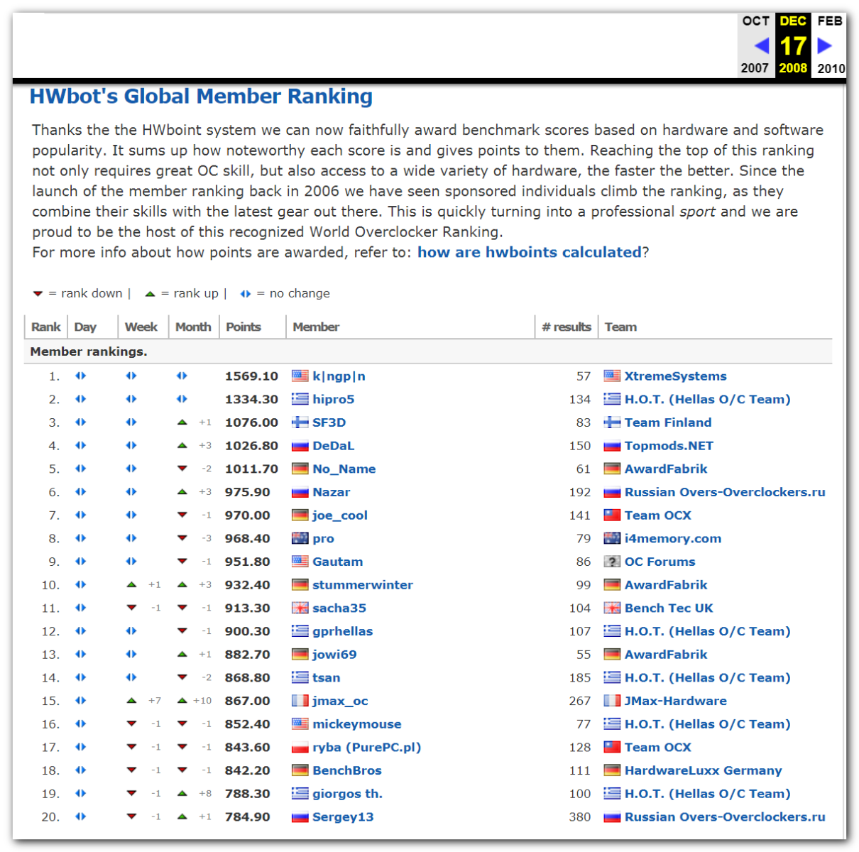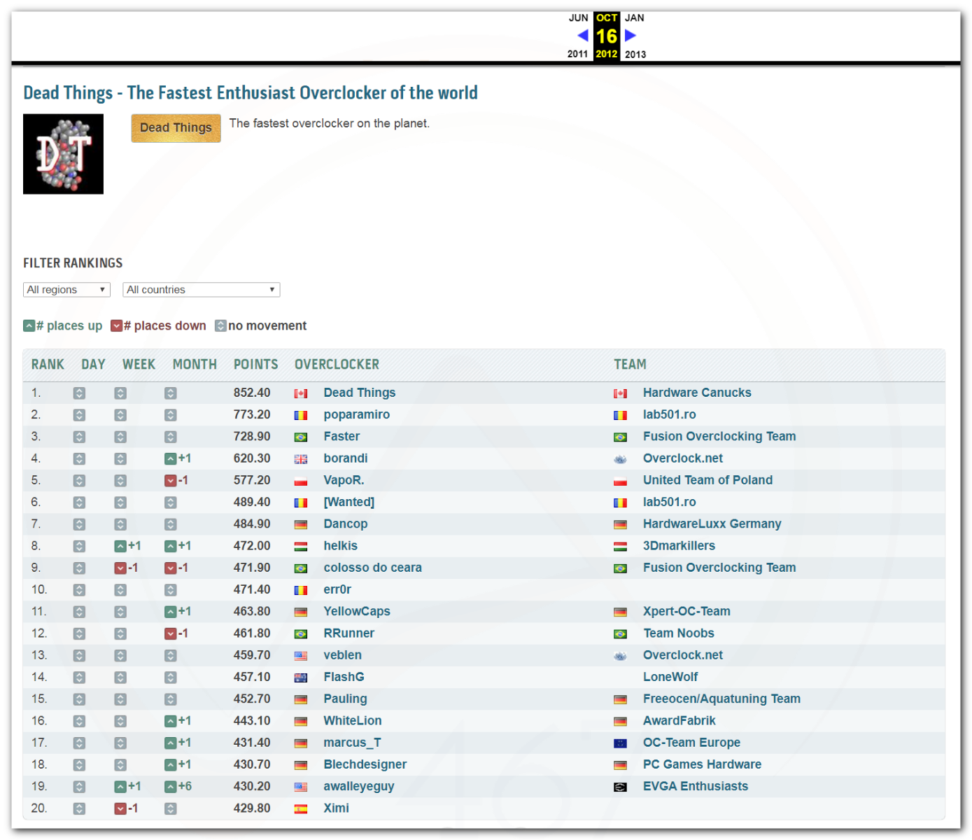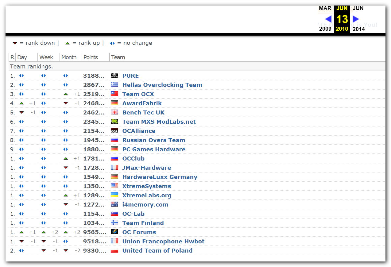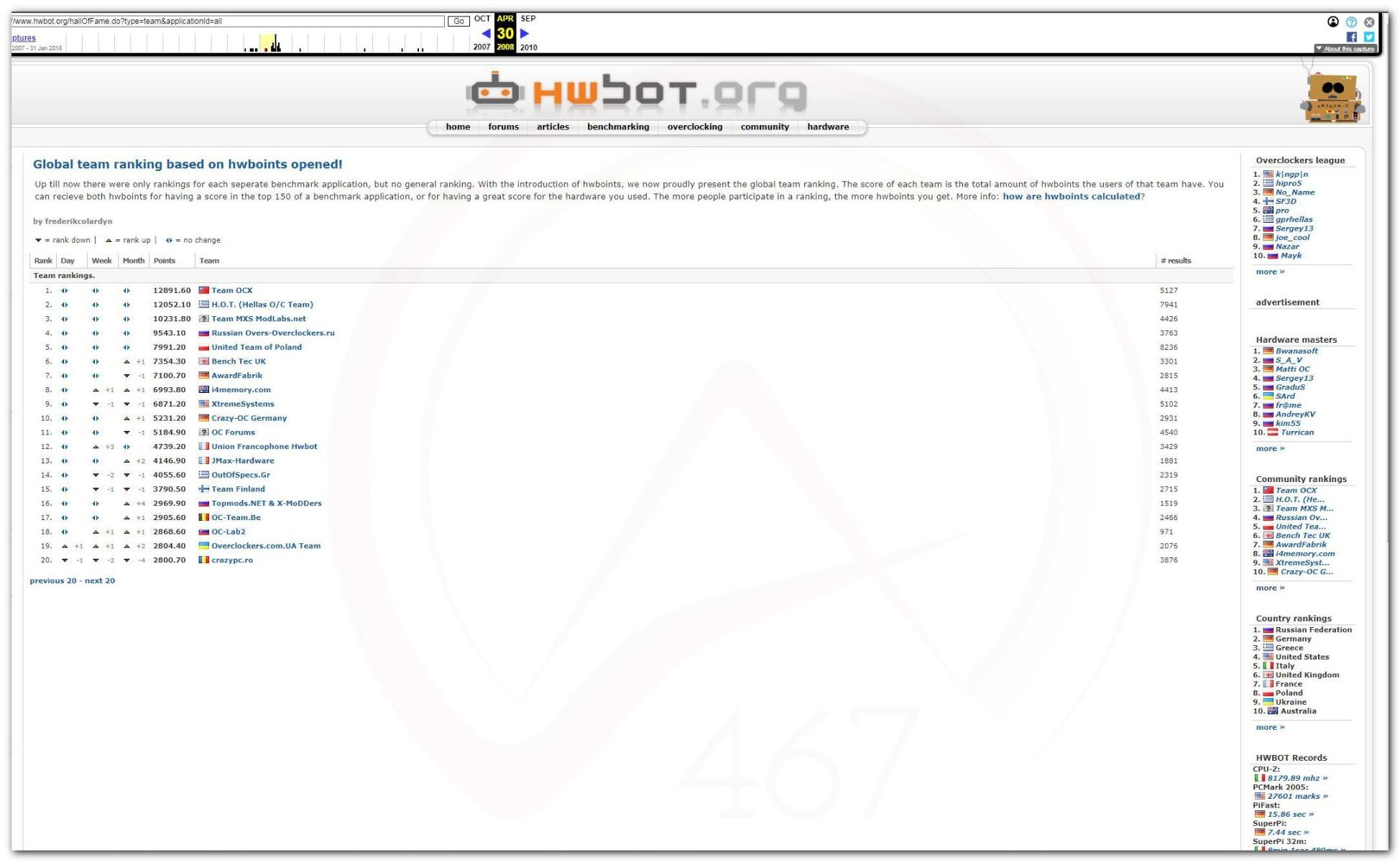 Собираться в команды стали ещё до появления Hwbot. Будем отталкиваться от начала регистрации команды на сайте Hwbot. И разговор пойдёт о командах с просторов бывшего СССР. Наверное на некоторых будет заостряться внимание, а на некоторых нет, так как мало информации и многие были созданы неизвестно зачем и оказались изначально мёртвыми. После 2009 года, так сотни создавались их точно пропускать буду.