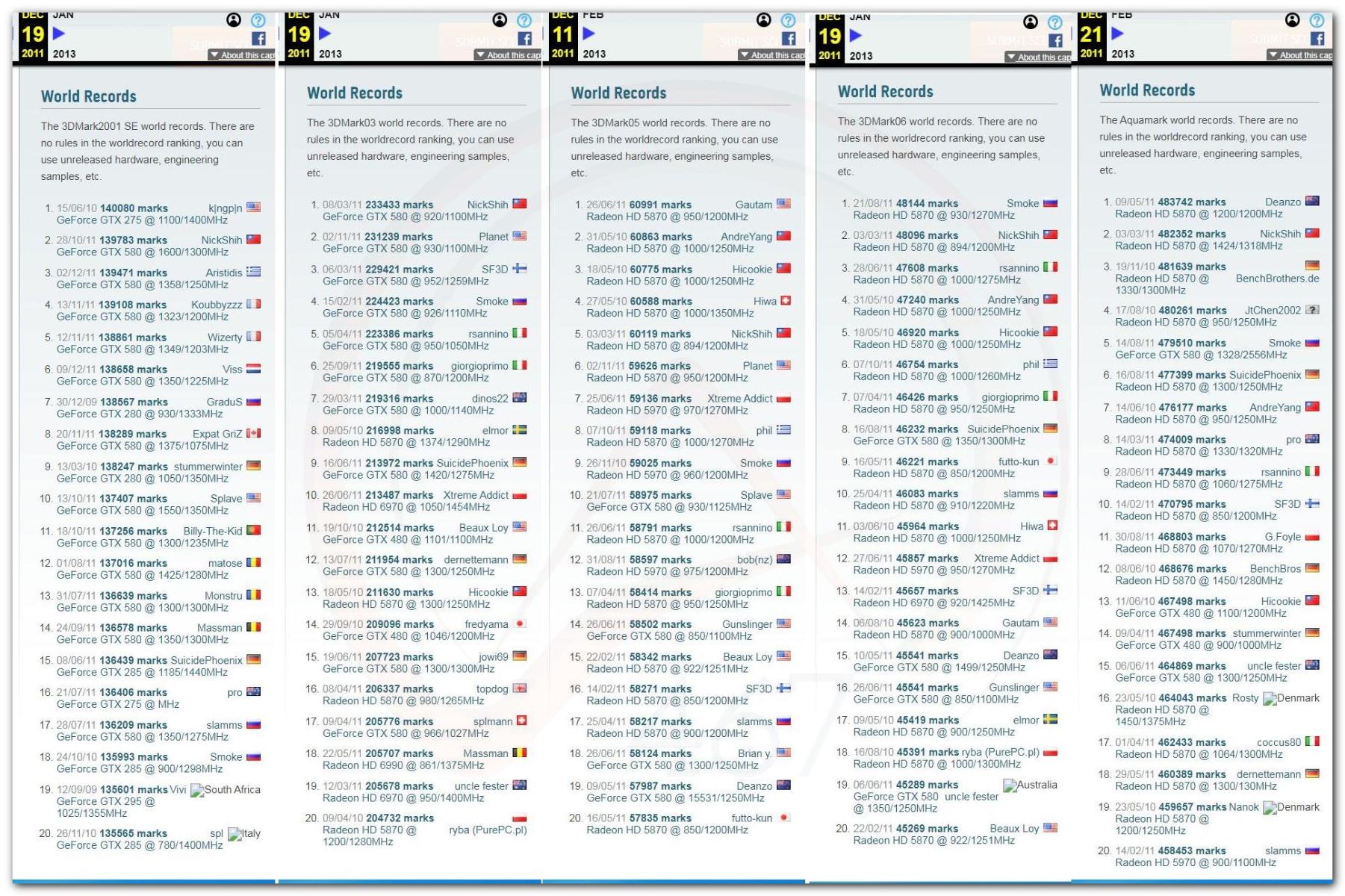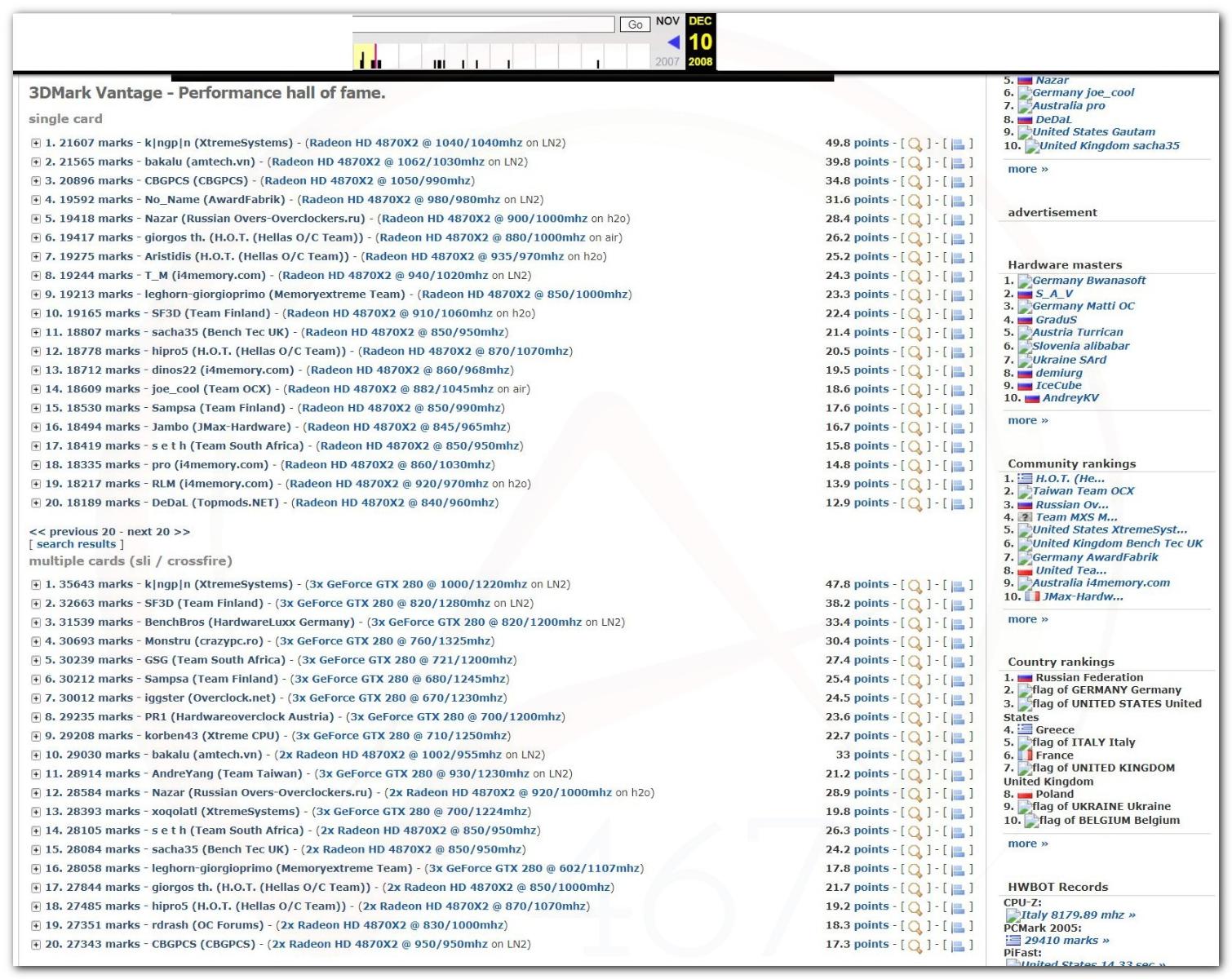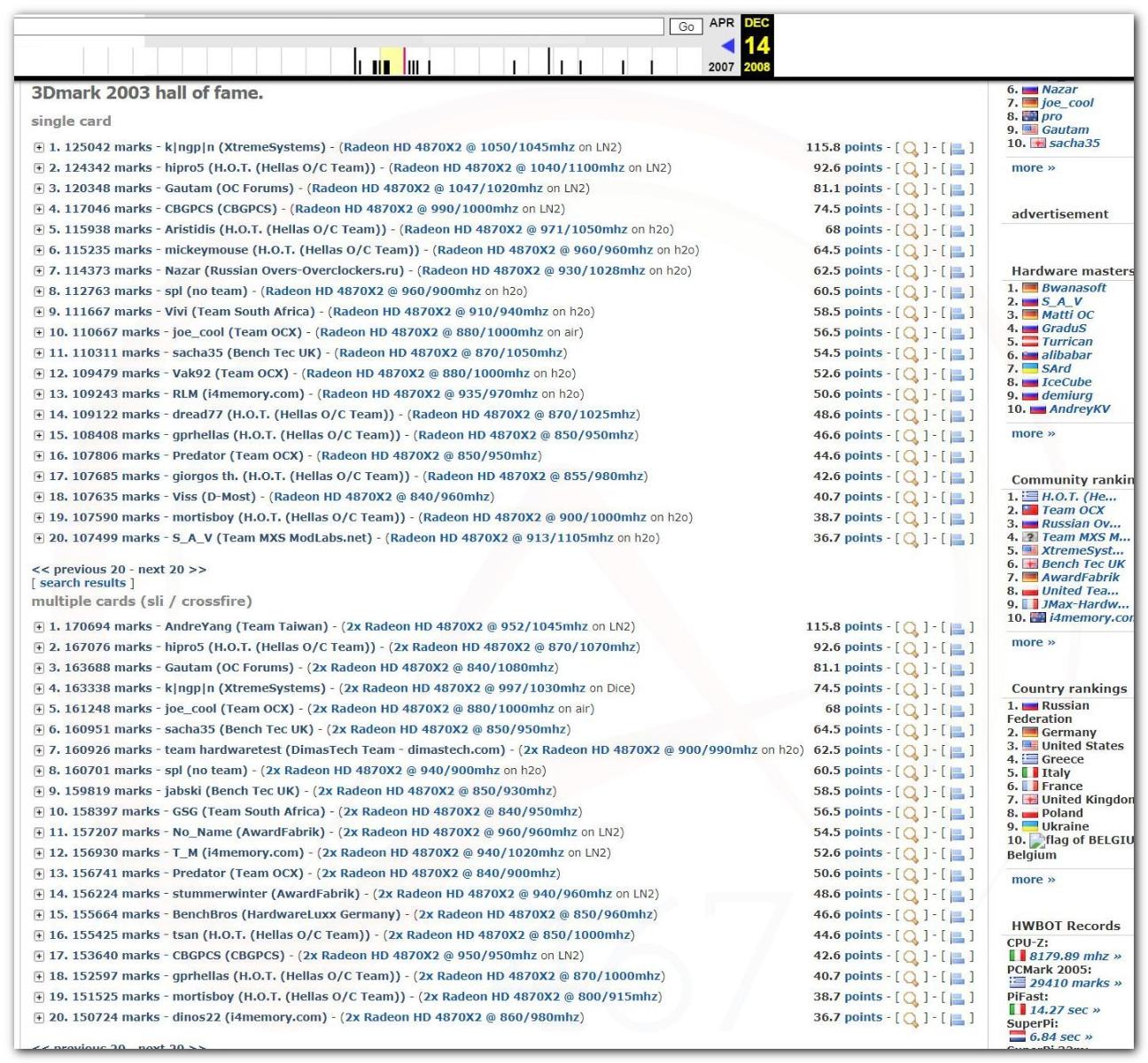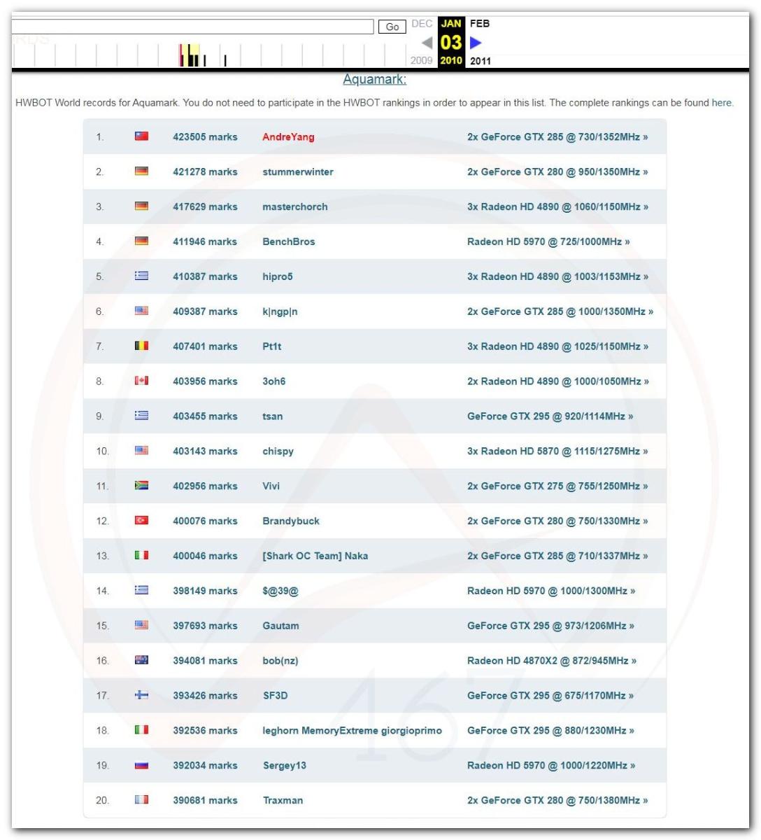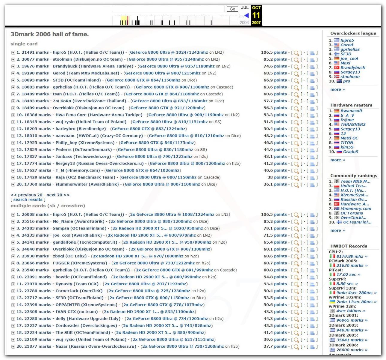 В 2000г. наверное самый бум наступил в момент появления 3DMark2000 и далее 2001, и создания базы этих результатов ORB на сайте MadOnion. В последствии перекочевала на Futuremark.