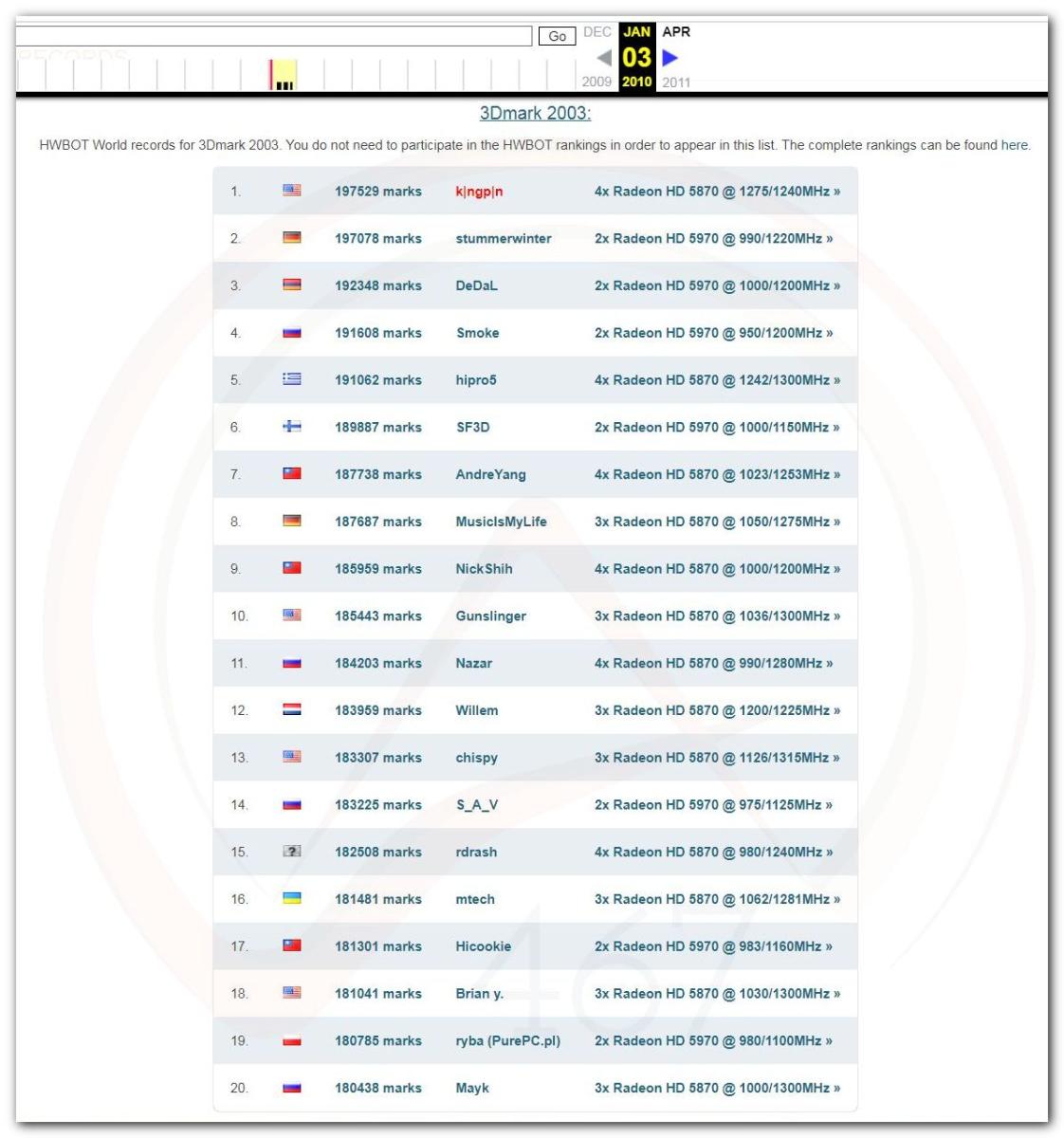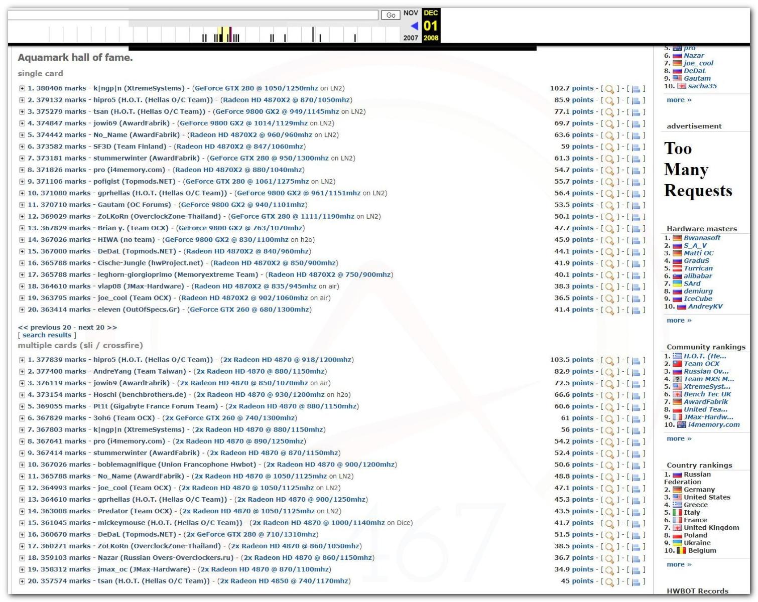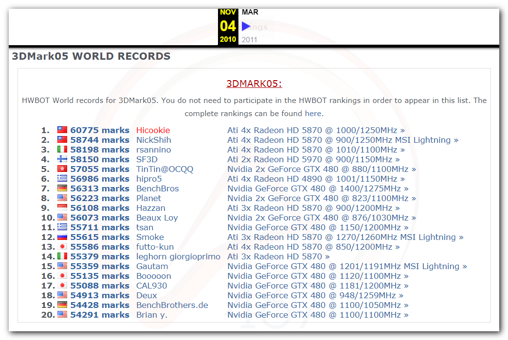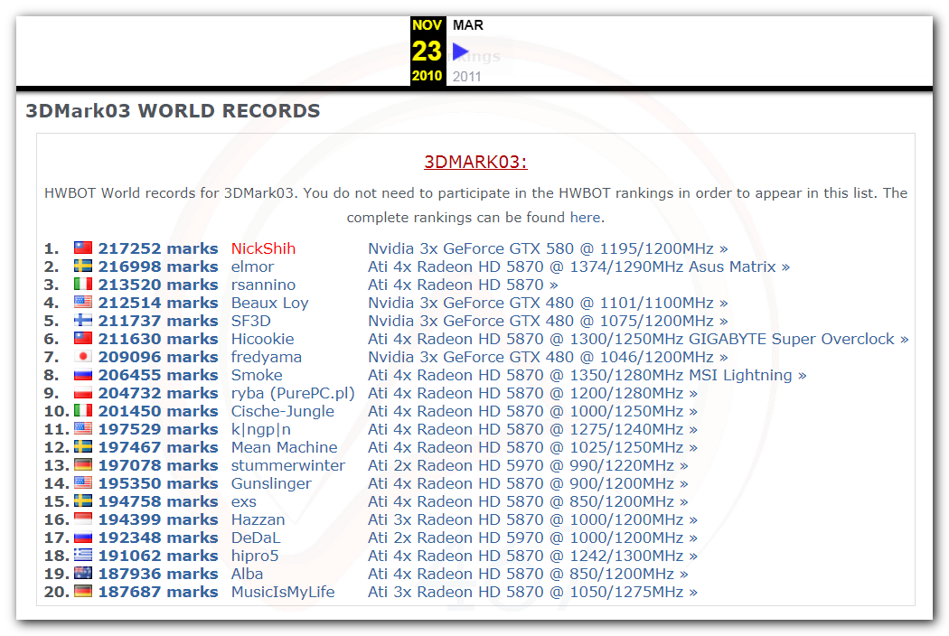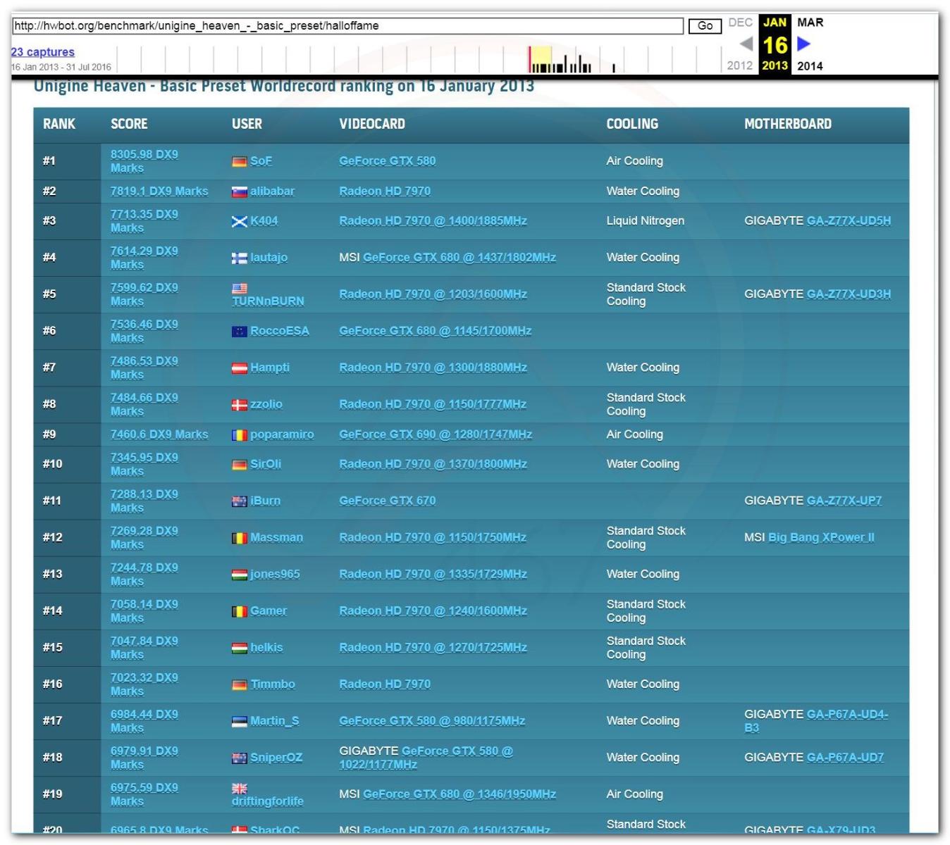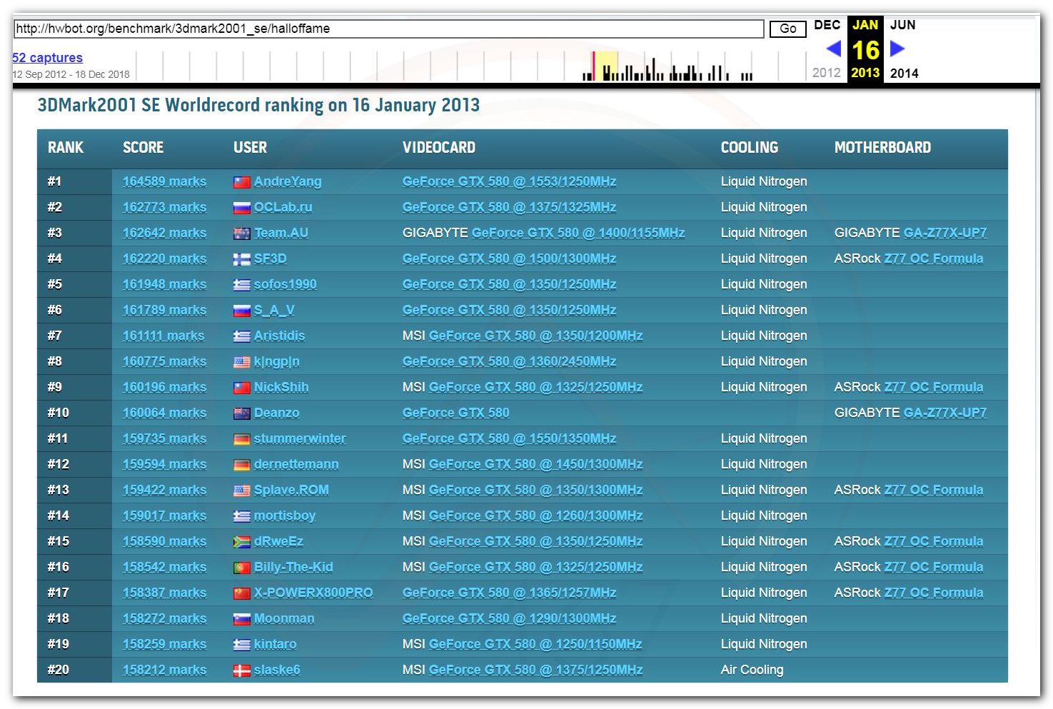 В 2000г. наверное самый бум наступил в момент появления 3DMark2000 и далее 2001, и создания базы этих результатов ORB на сайте MadOnion. В последствии перекочевала на Futuremark.