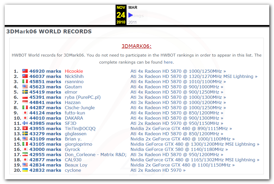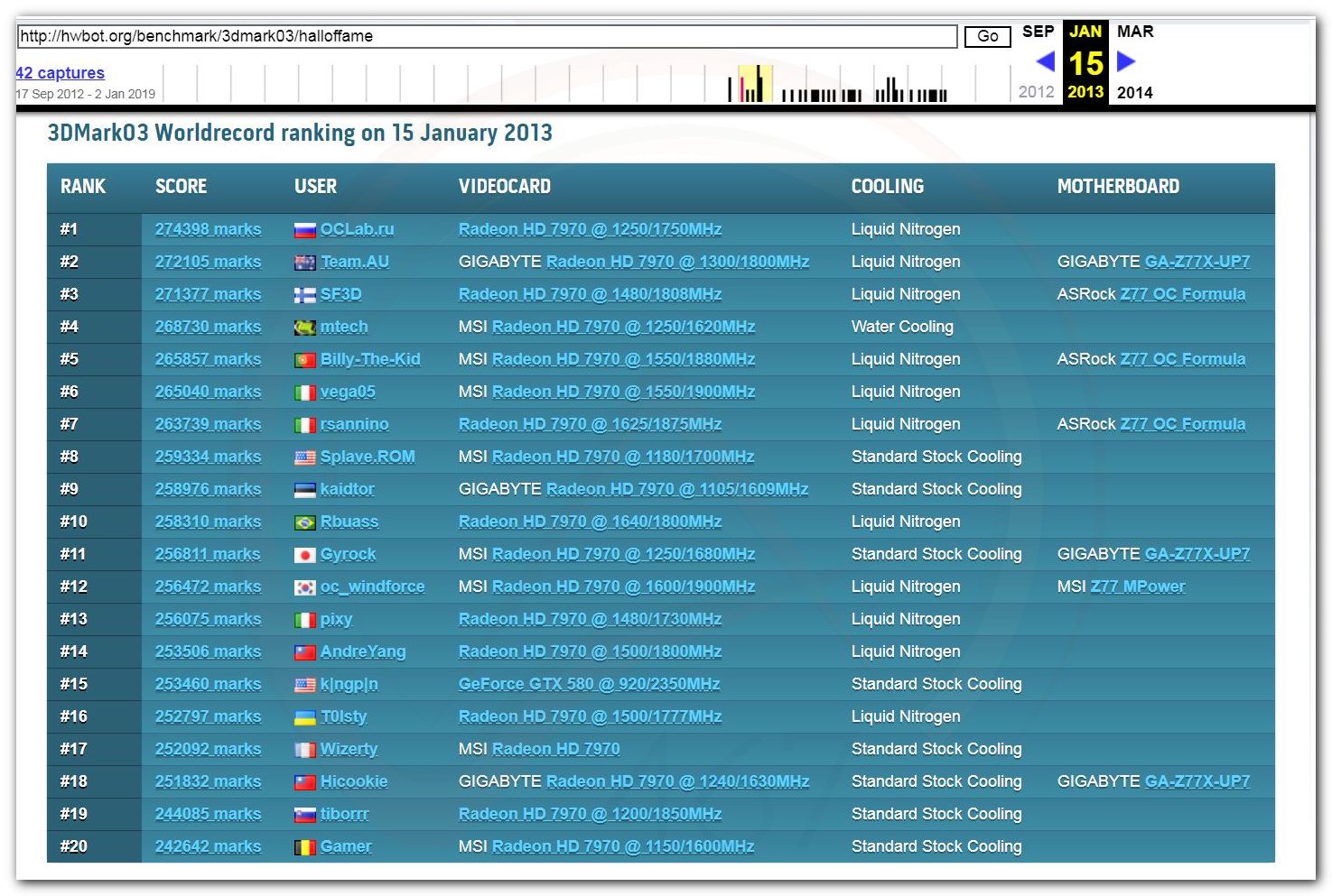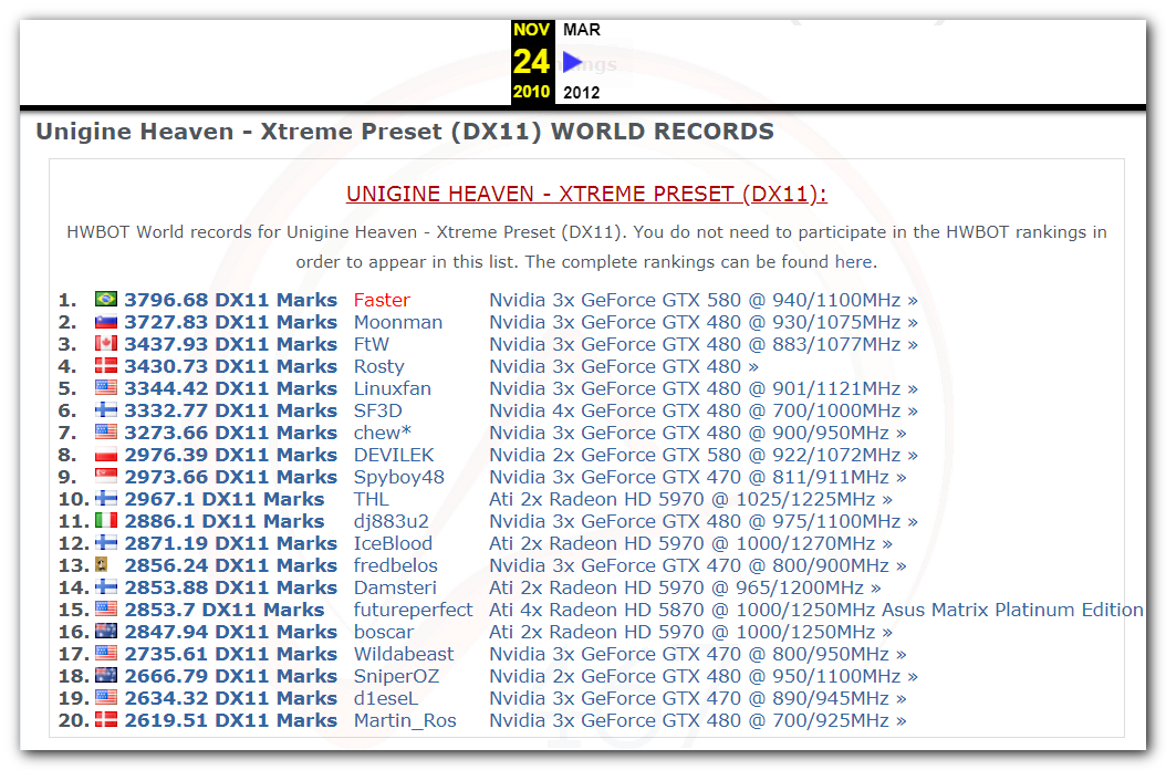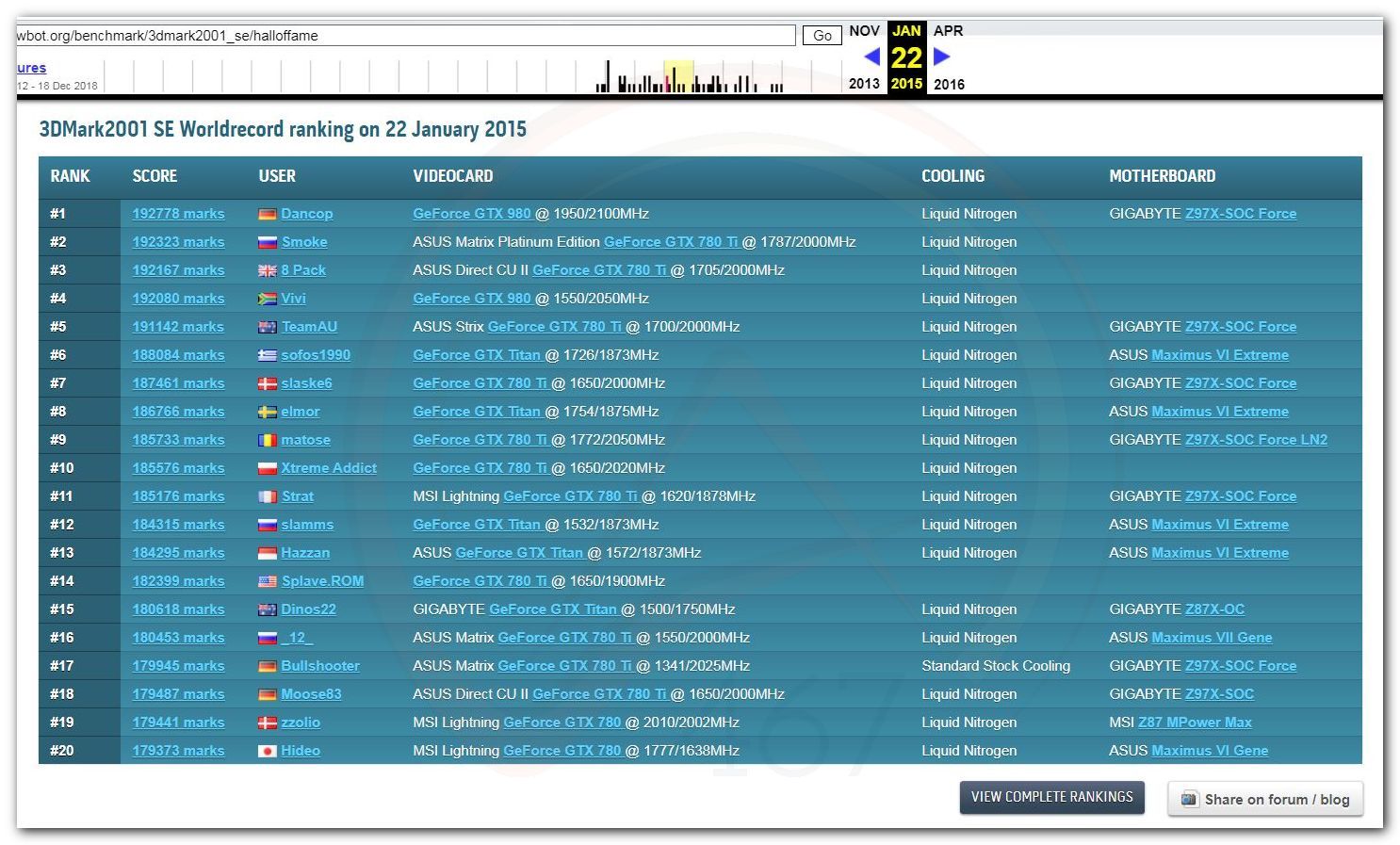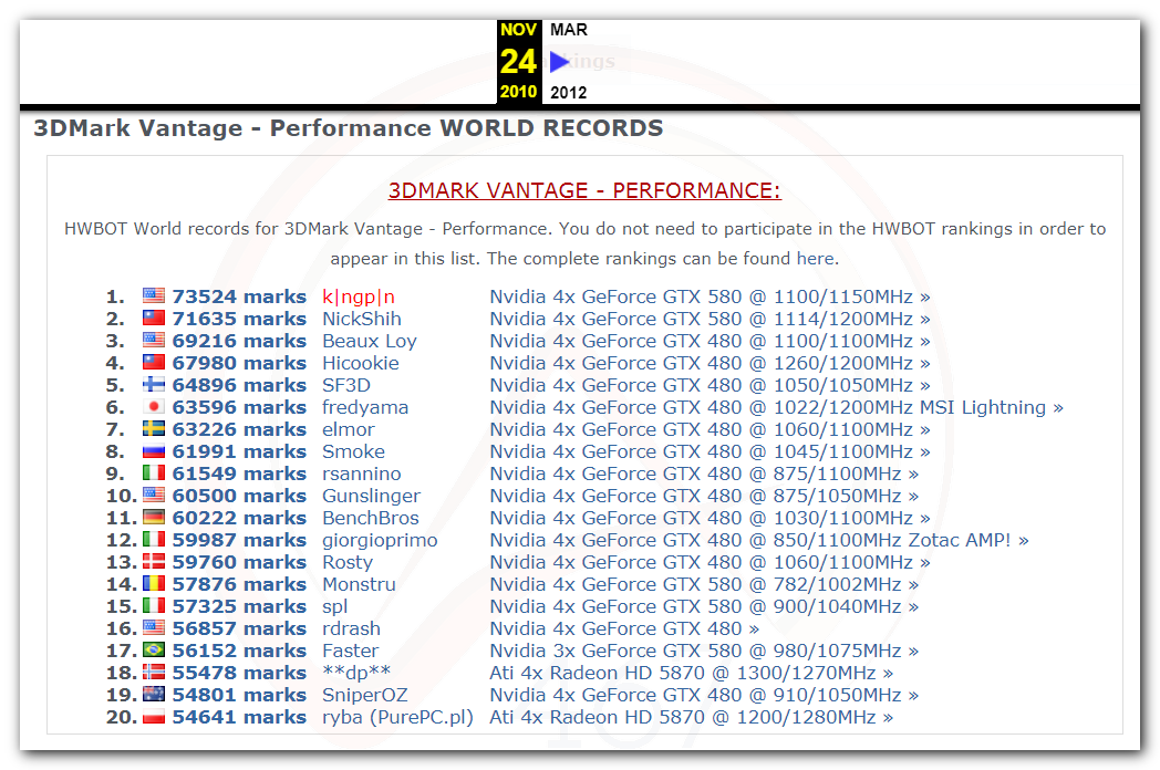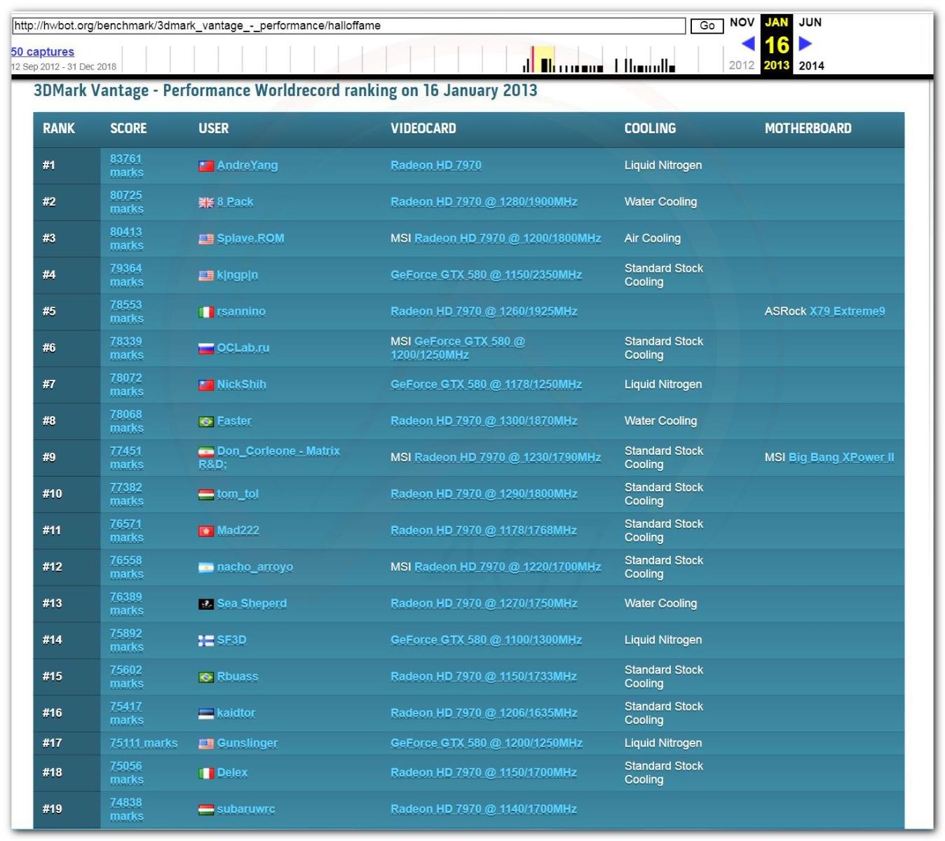 В 2000г. наверное самый бум наступил в момент появления 3DMark2000 и далее 2001, и создания базы этих результатов ORB на сайте MadOnion. В последствии перекочевала на Futuremark.