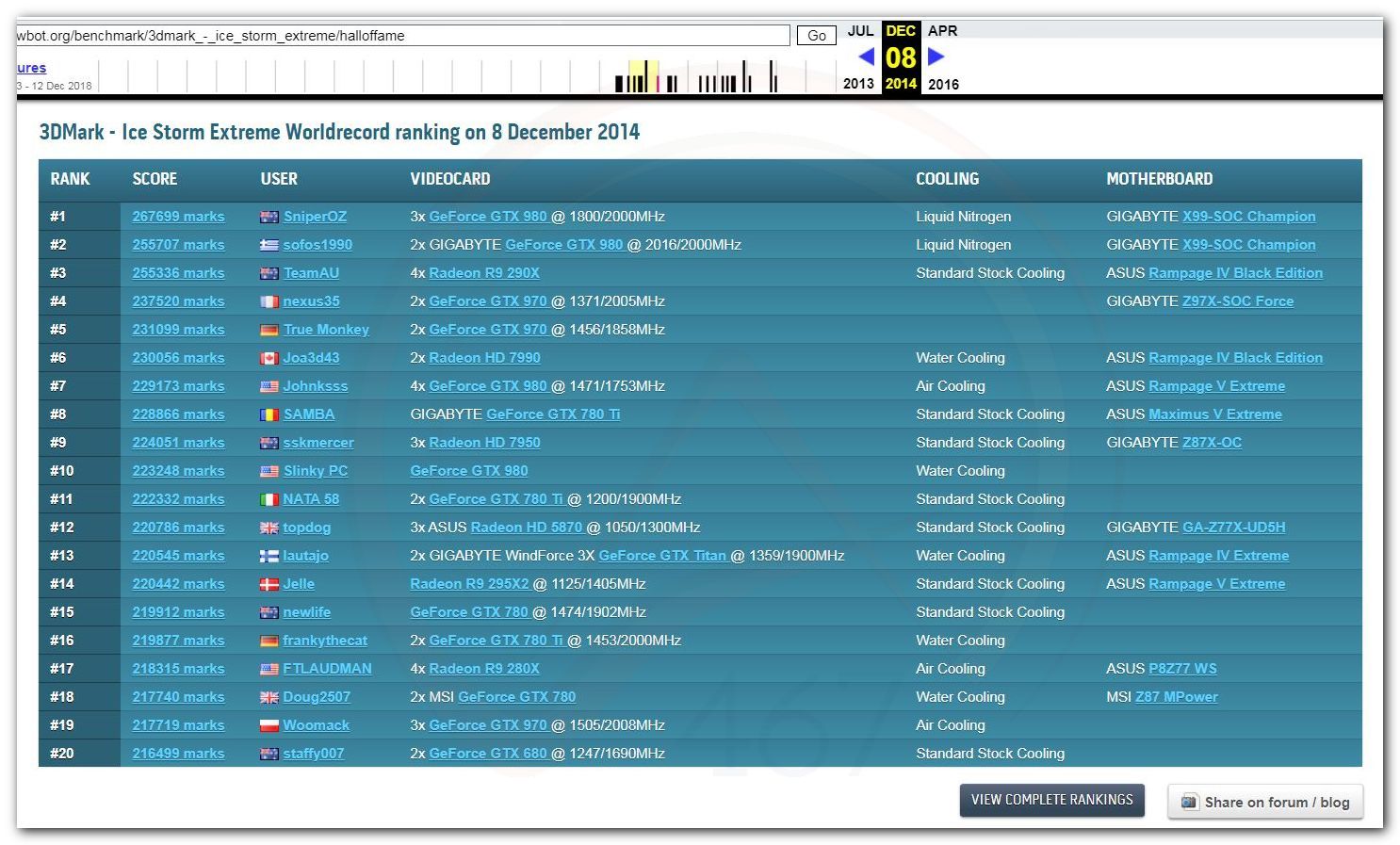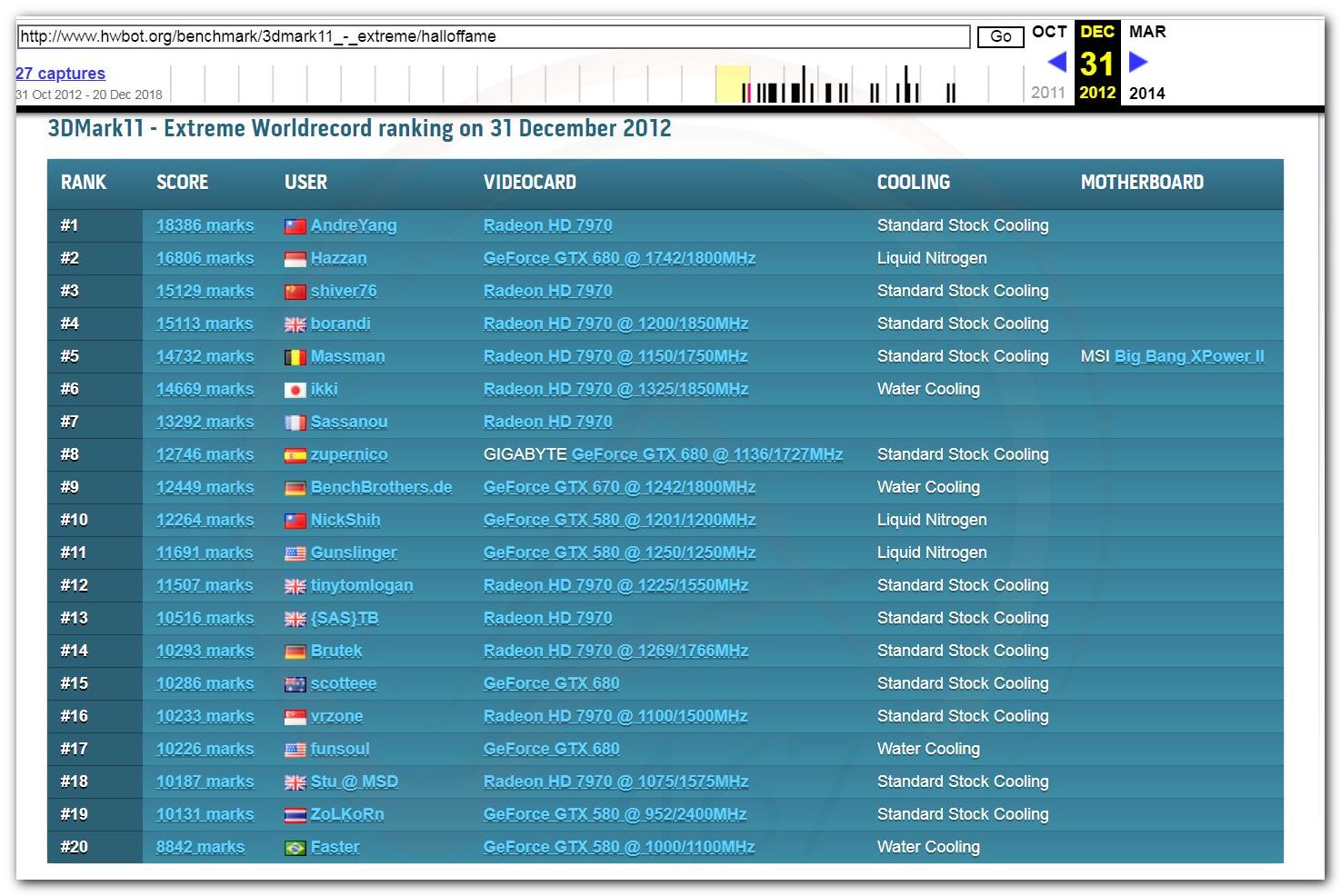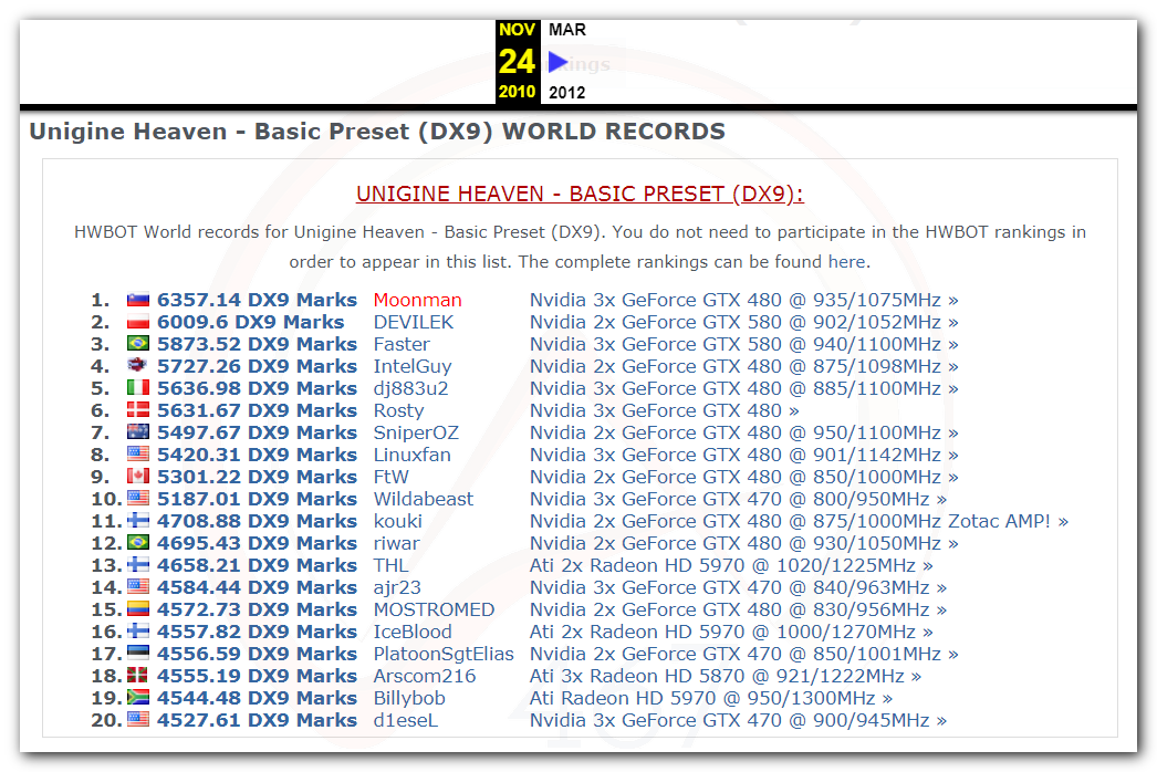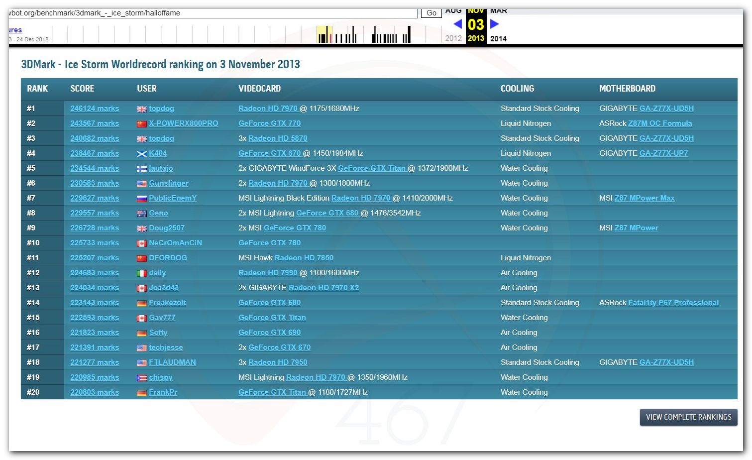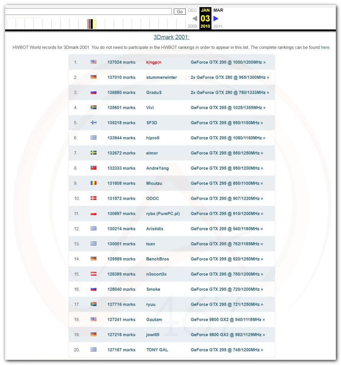В 2000г. наверное самый бум наступил в момент появления 3DMark2000 и далее 2001, и создания базы этих результатов ORB на сайте MadOnion. В последствии перекочевала на Futuremark.