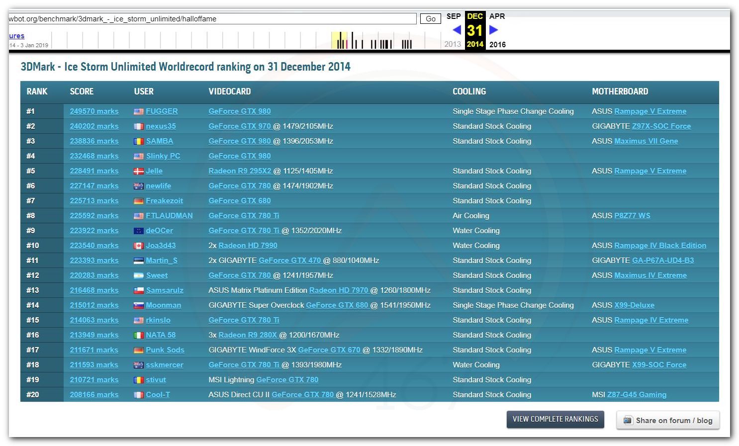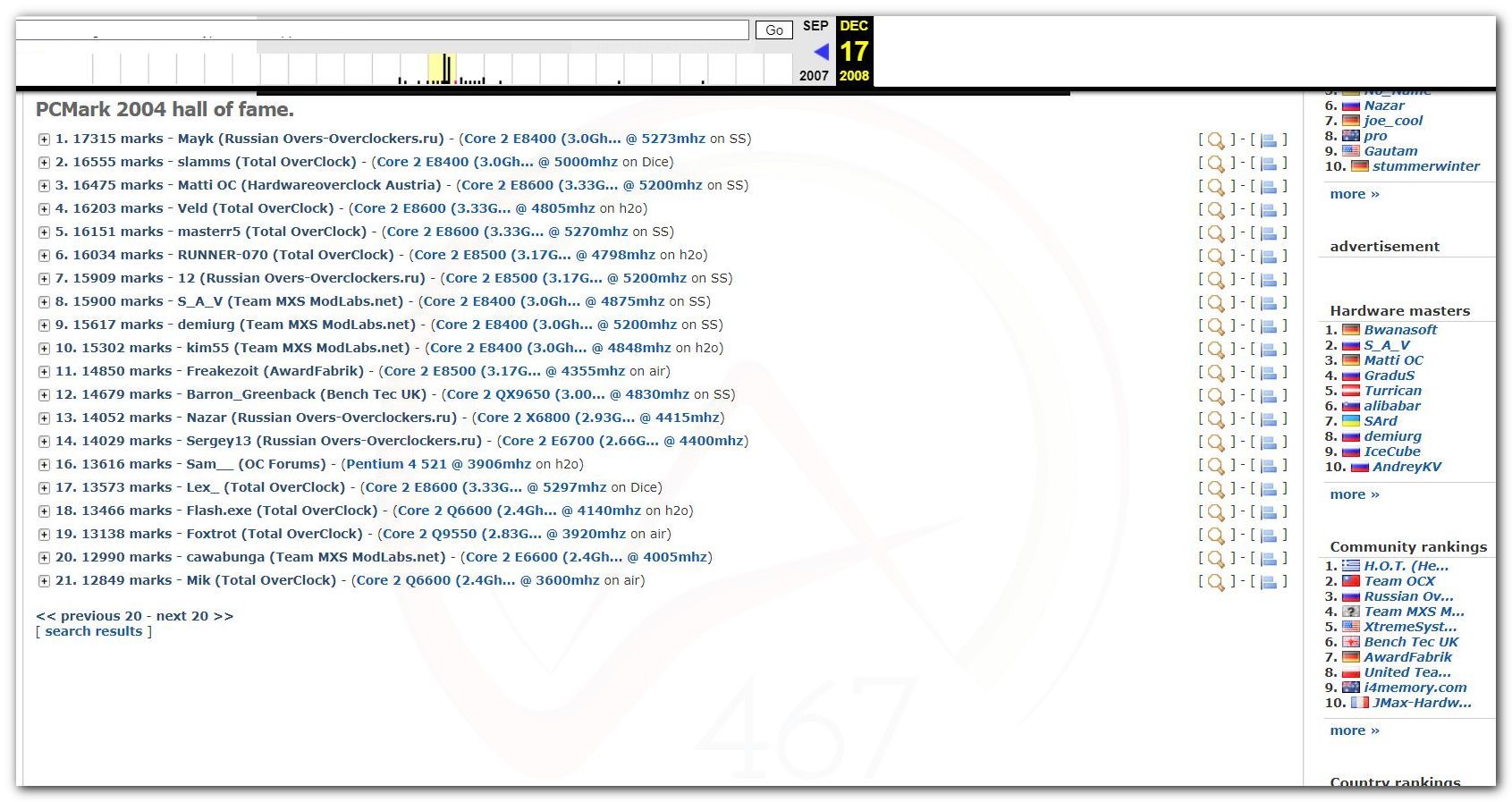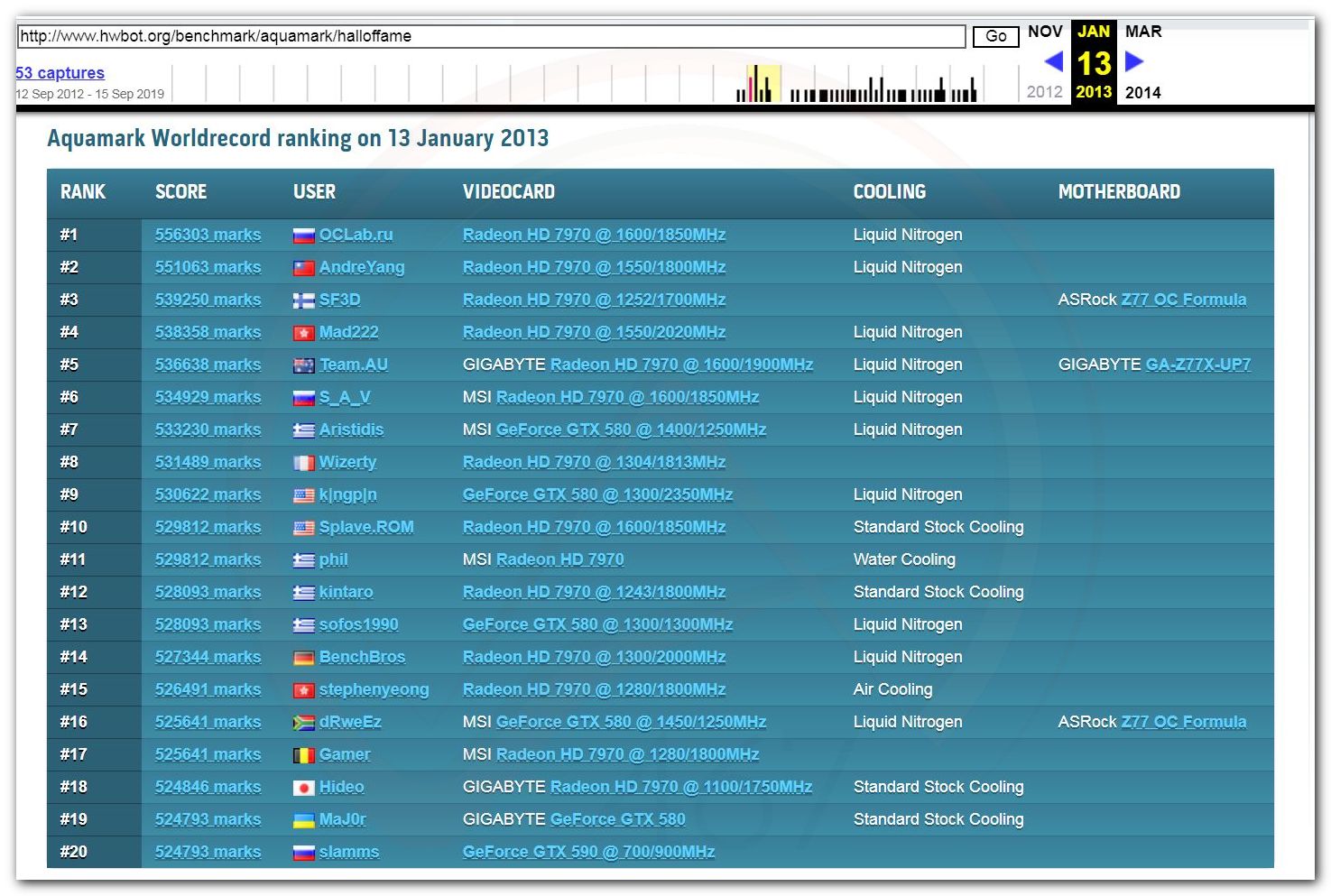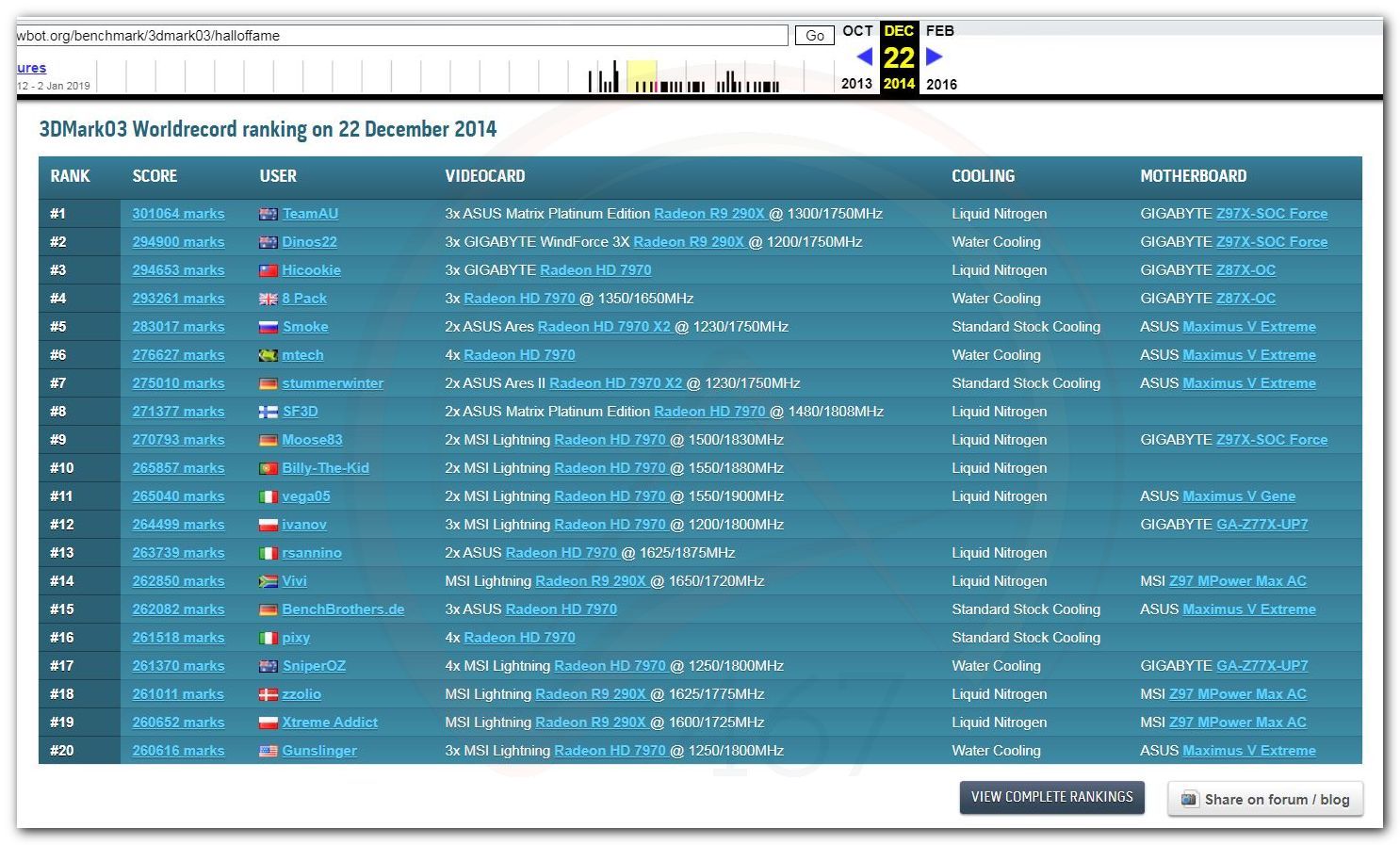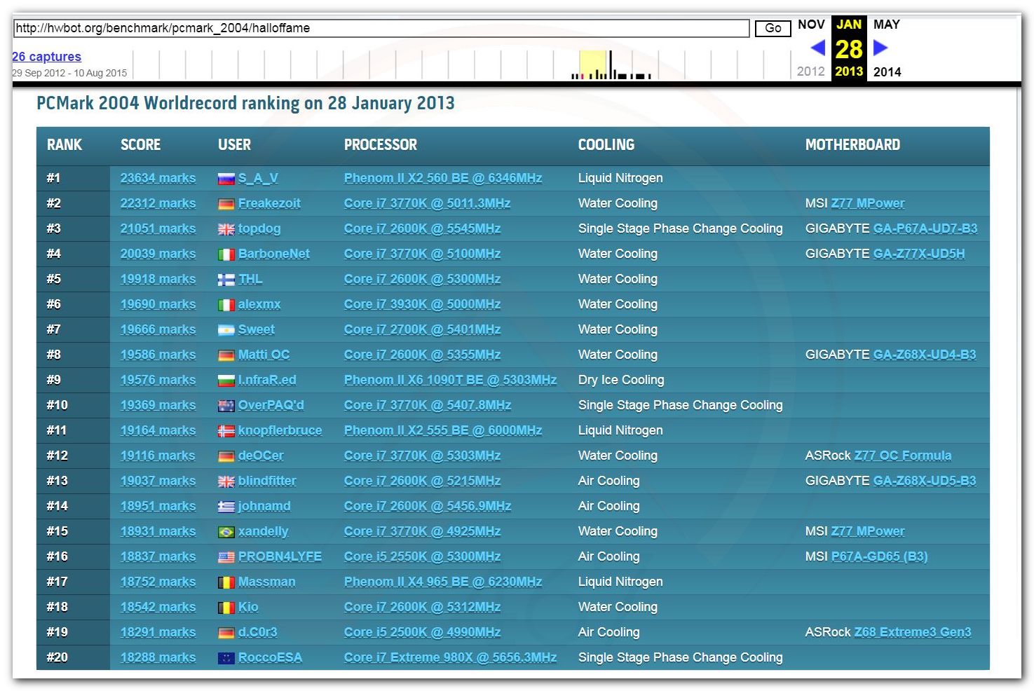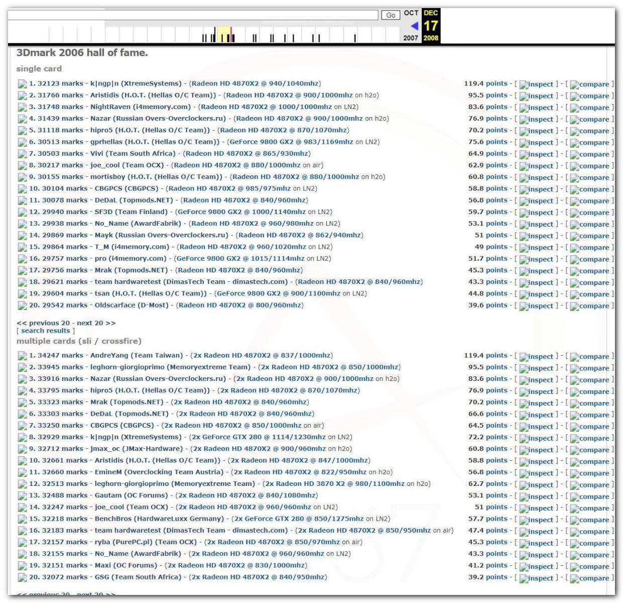 В 2000г. наверное самый бум наступил в момент появления 3DMark2000 и далее 2001, и создания базы этих результатов ORB на сайте MadOnion. В последствии перекочевала на Futuremark.