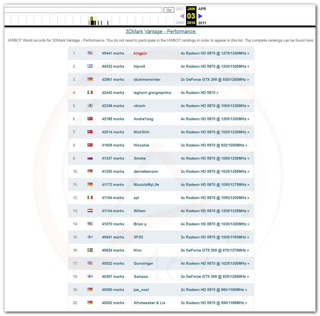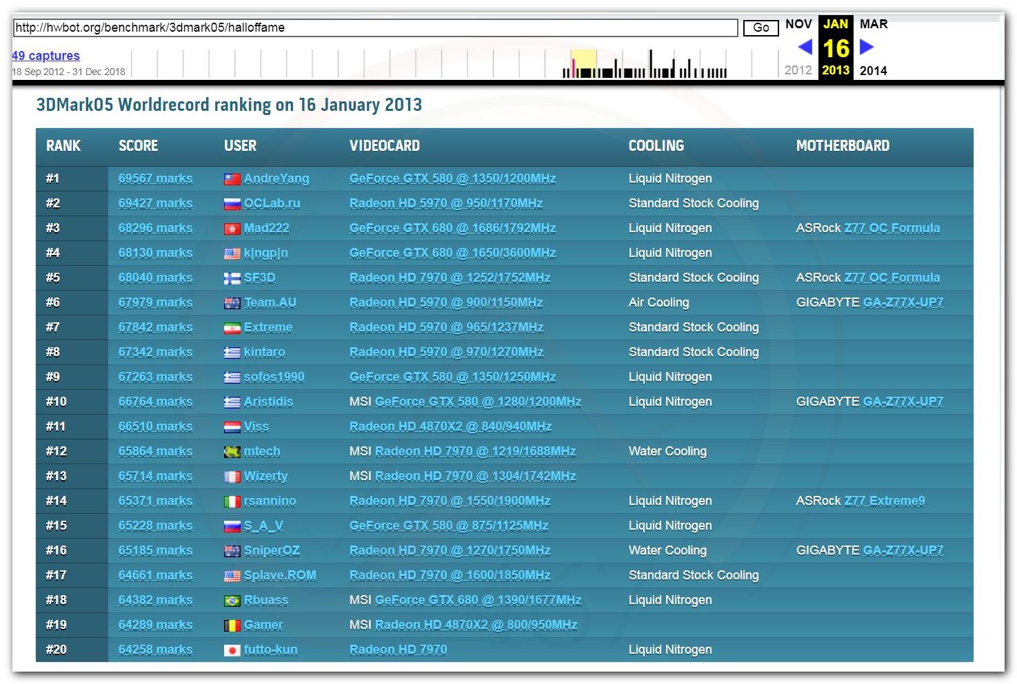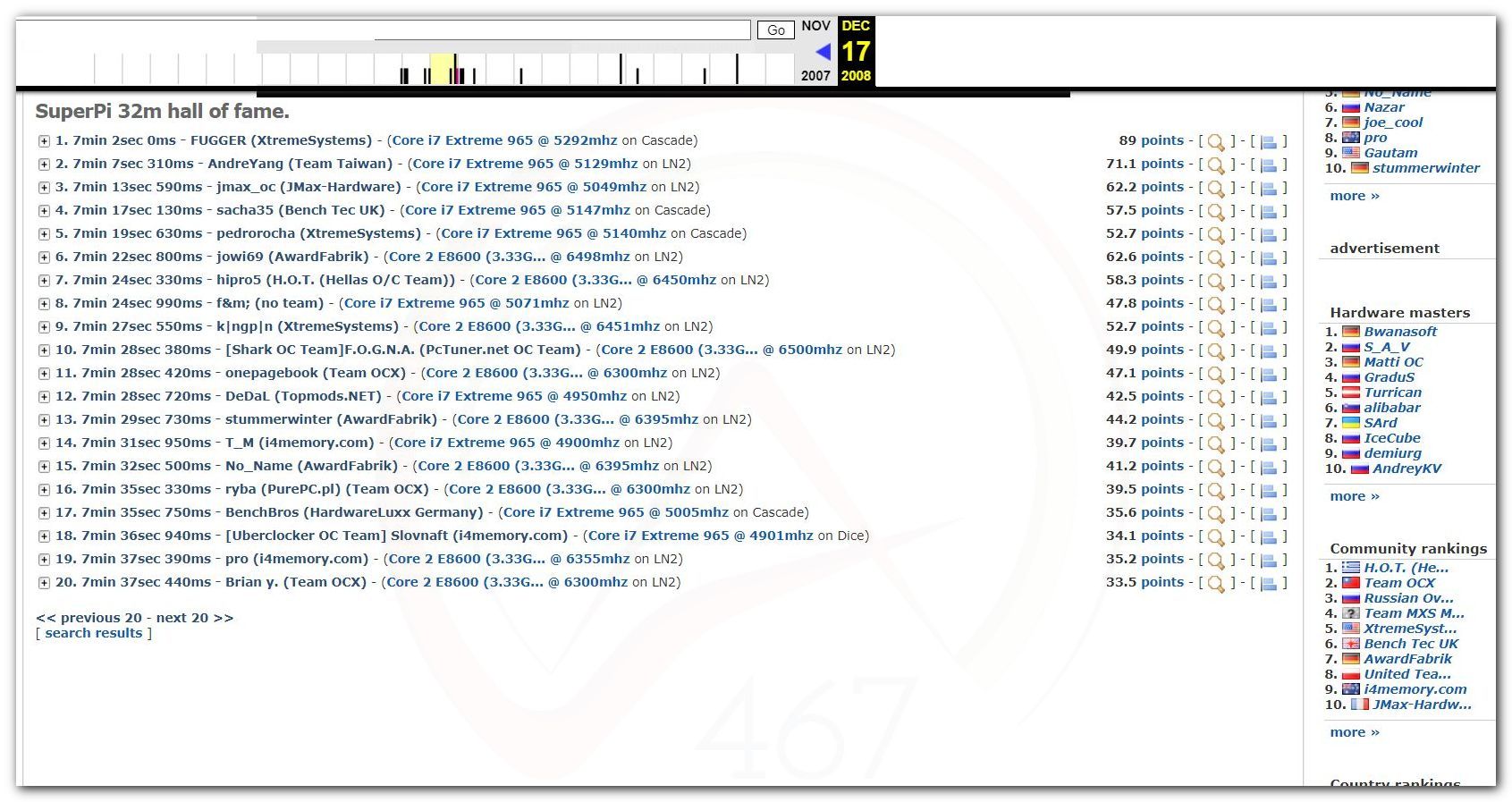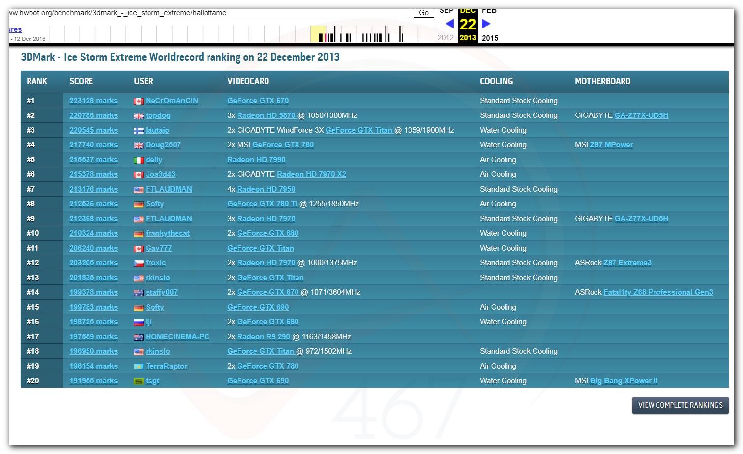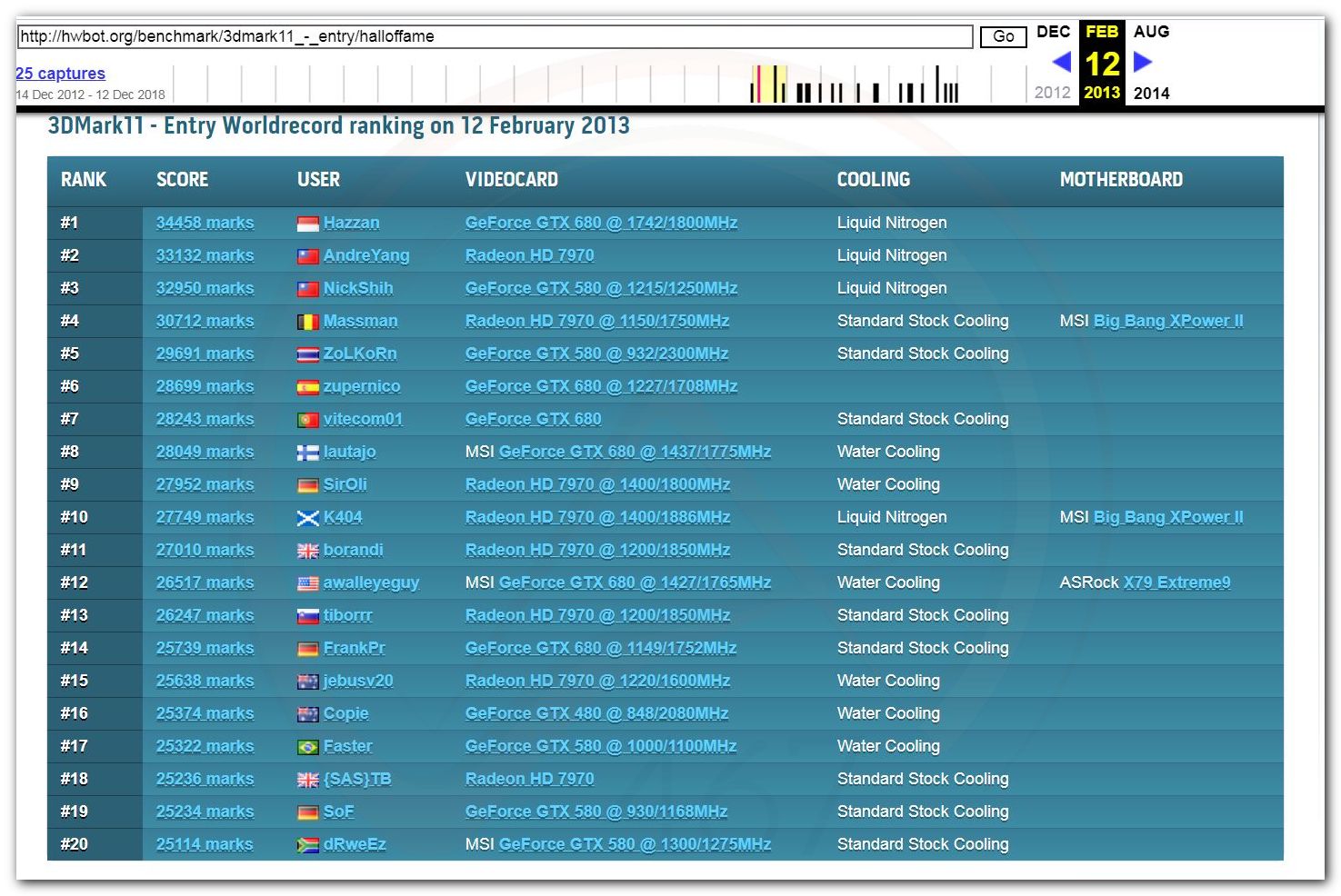 В 2000г. наверное самый бум наступил в момент появления 3DMark2000 и далее 2001, и создания базы этих результатов ORB на сайте MadOnion. В последствии перекочевала на Futuremark.
