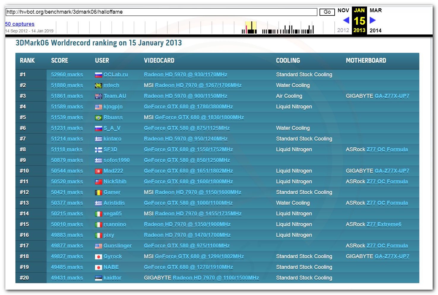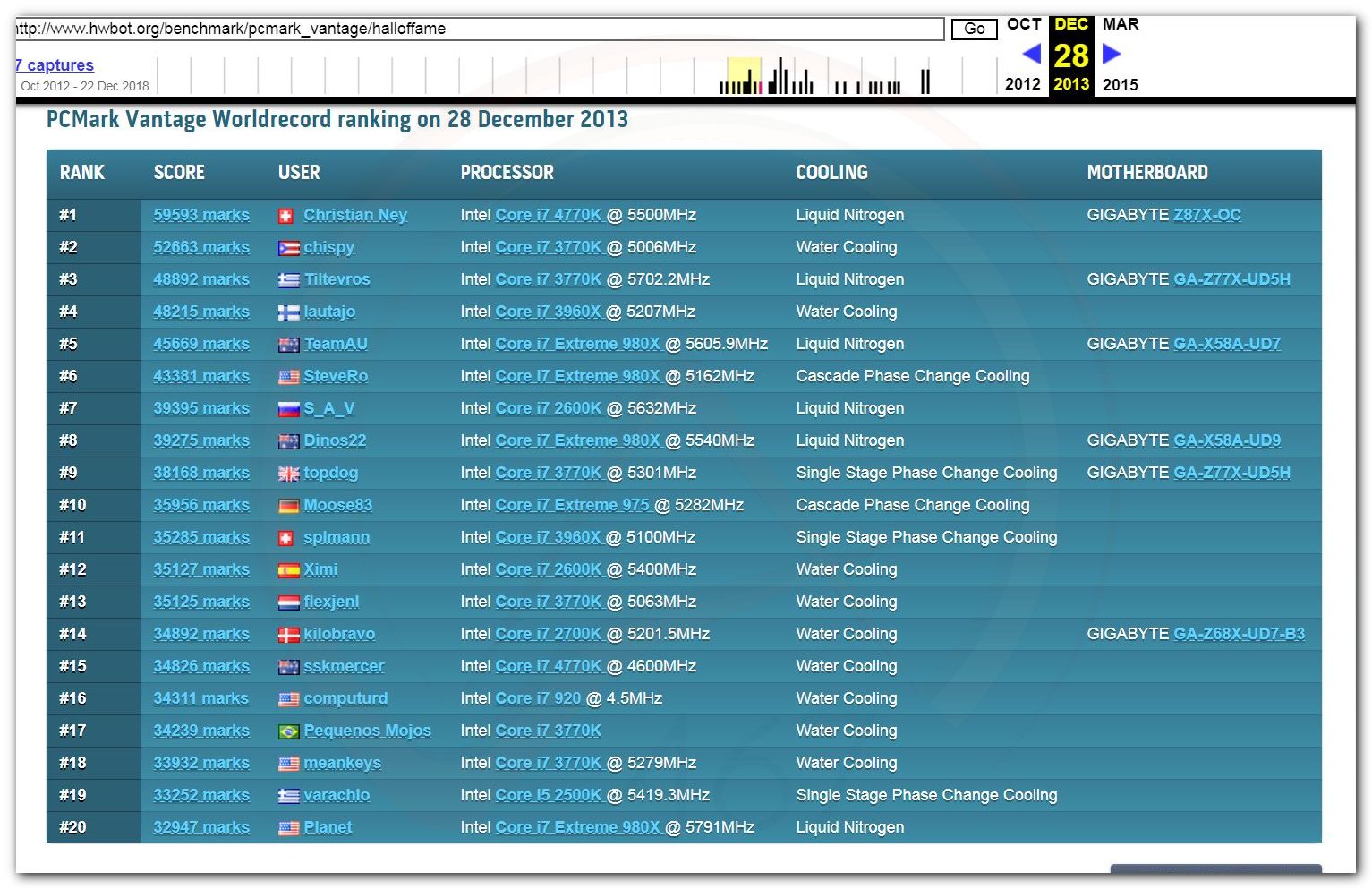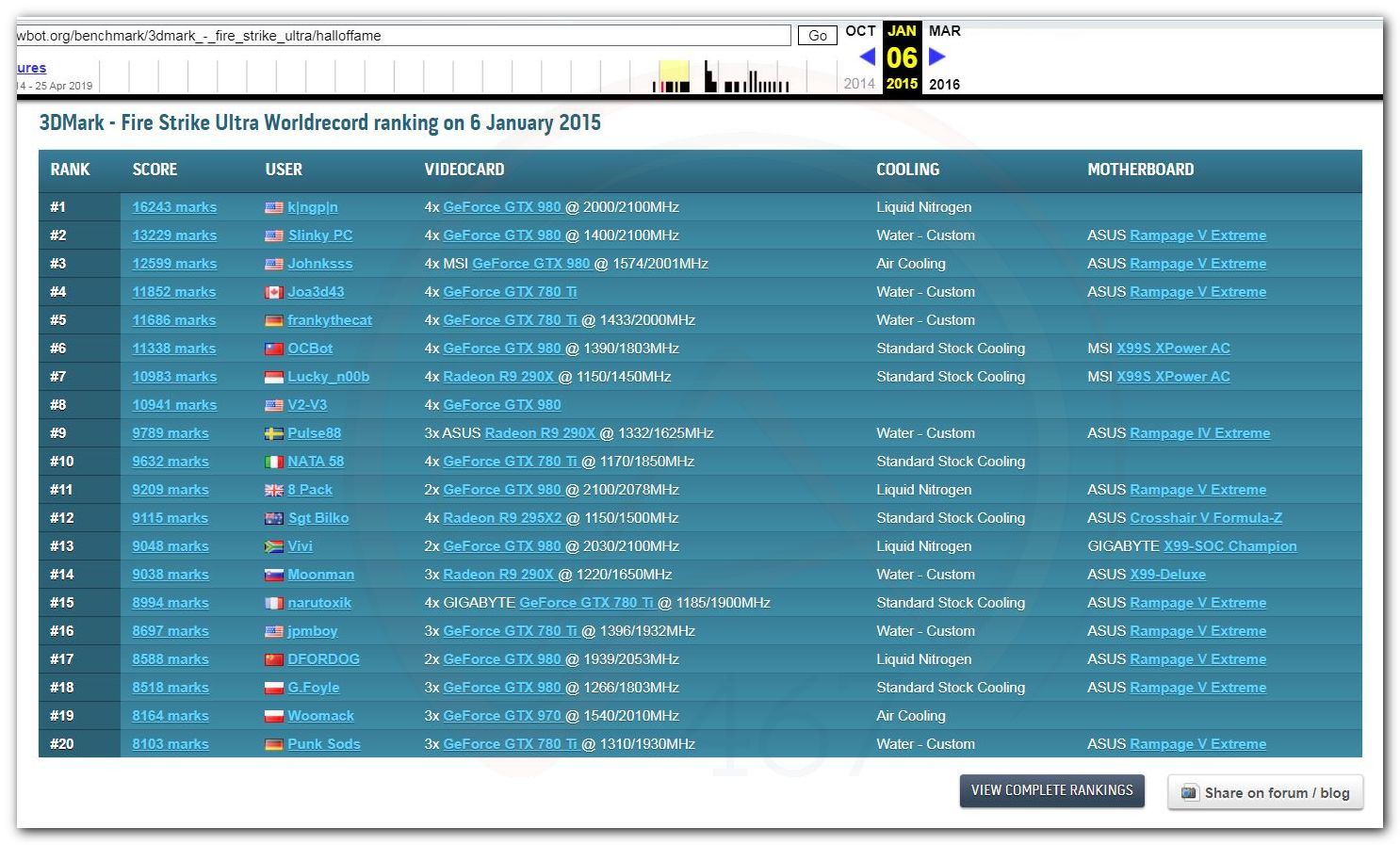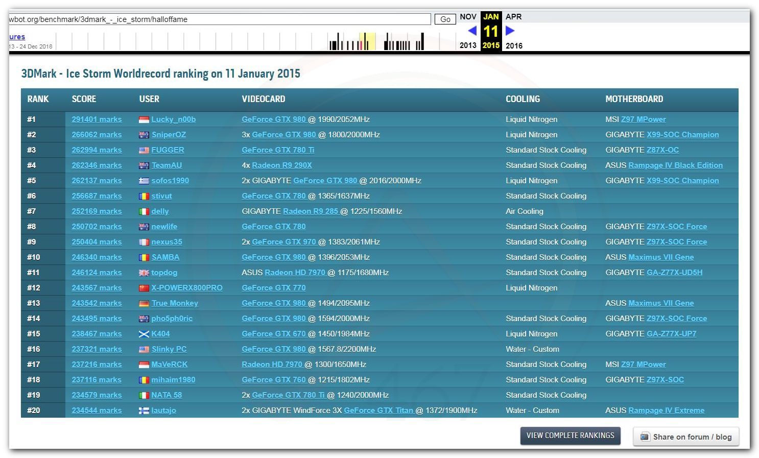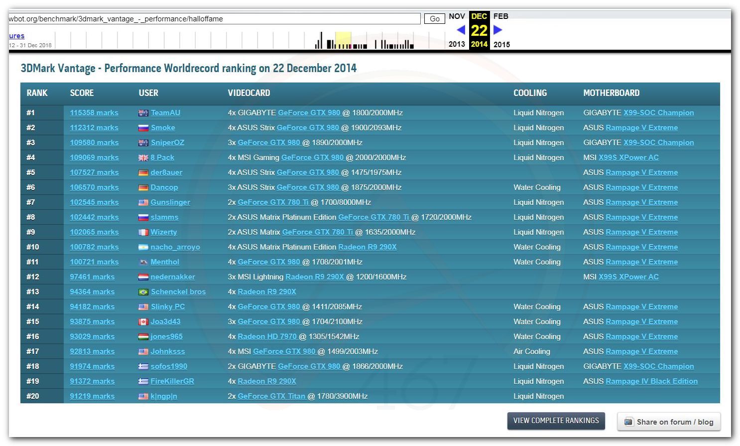 В 2000г. наверное самый бум наступил в момент появления 3DMark2000 и далее 2001, и создания базы этих результатов ORB на сайте MadOnion. В последствии перекочевала на Futuremark.