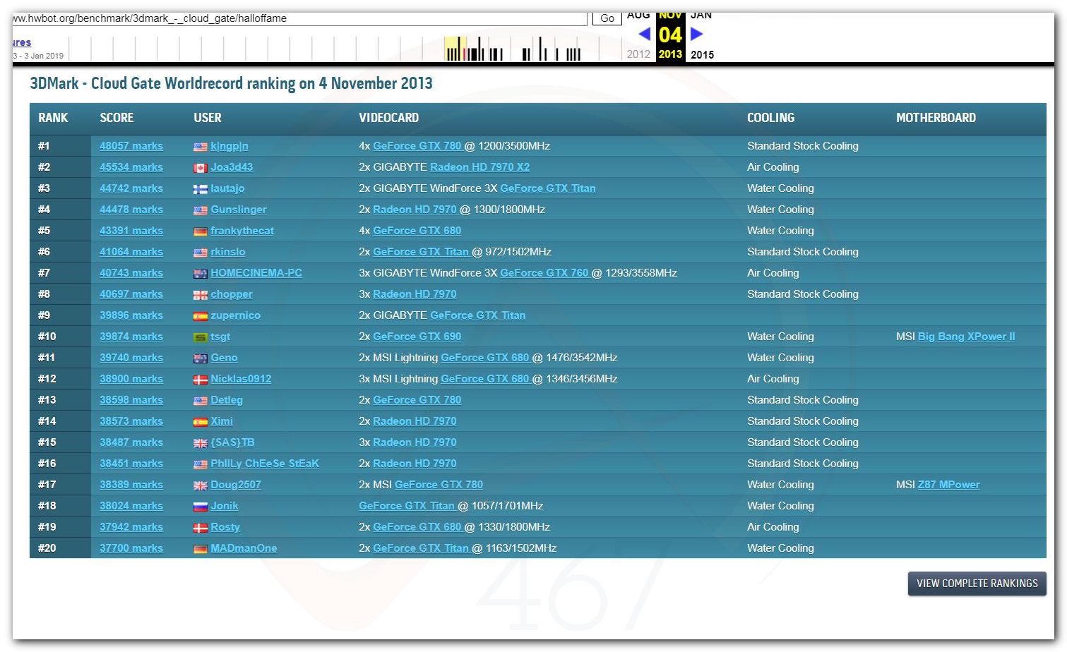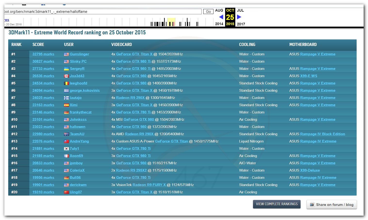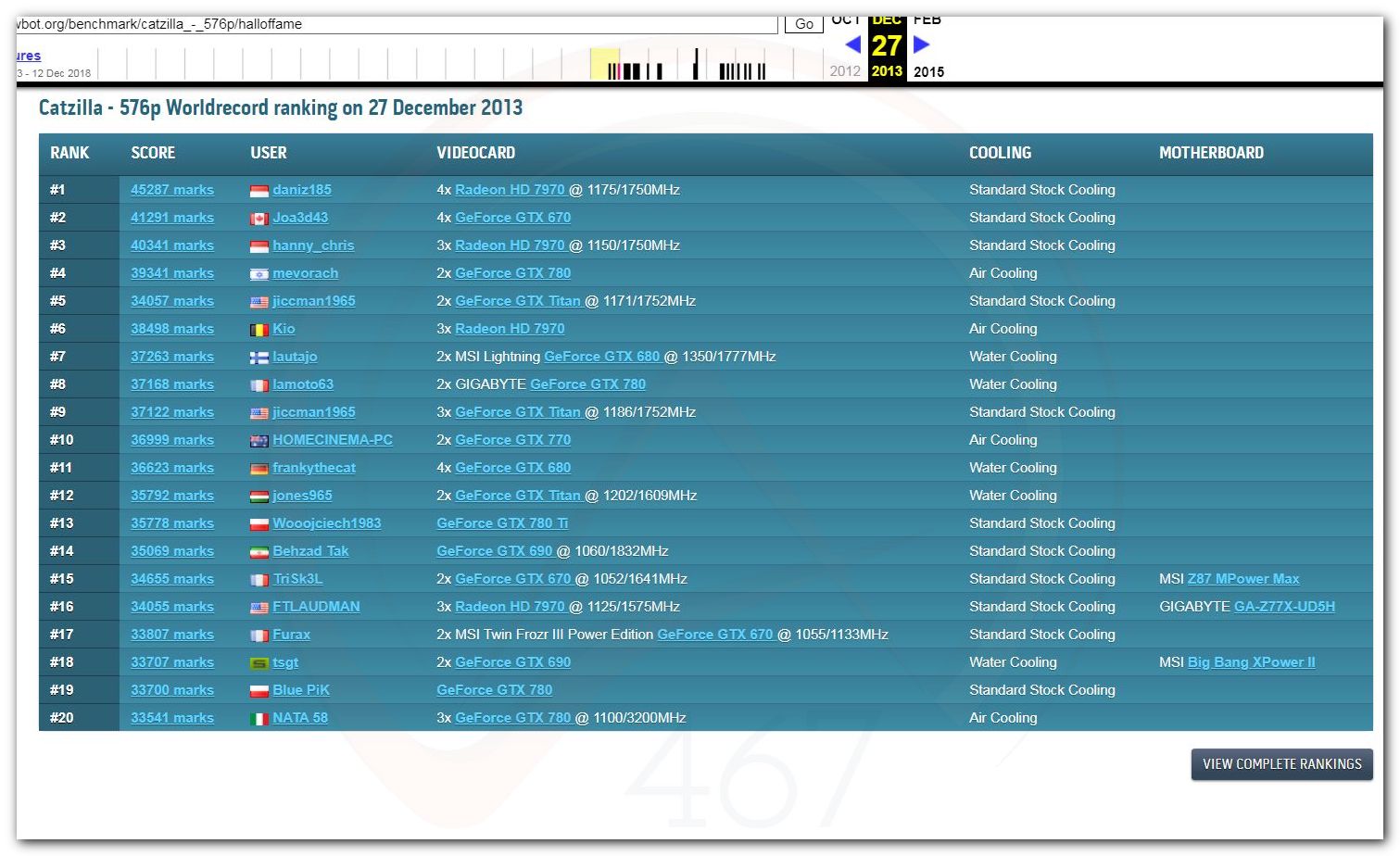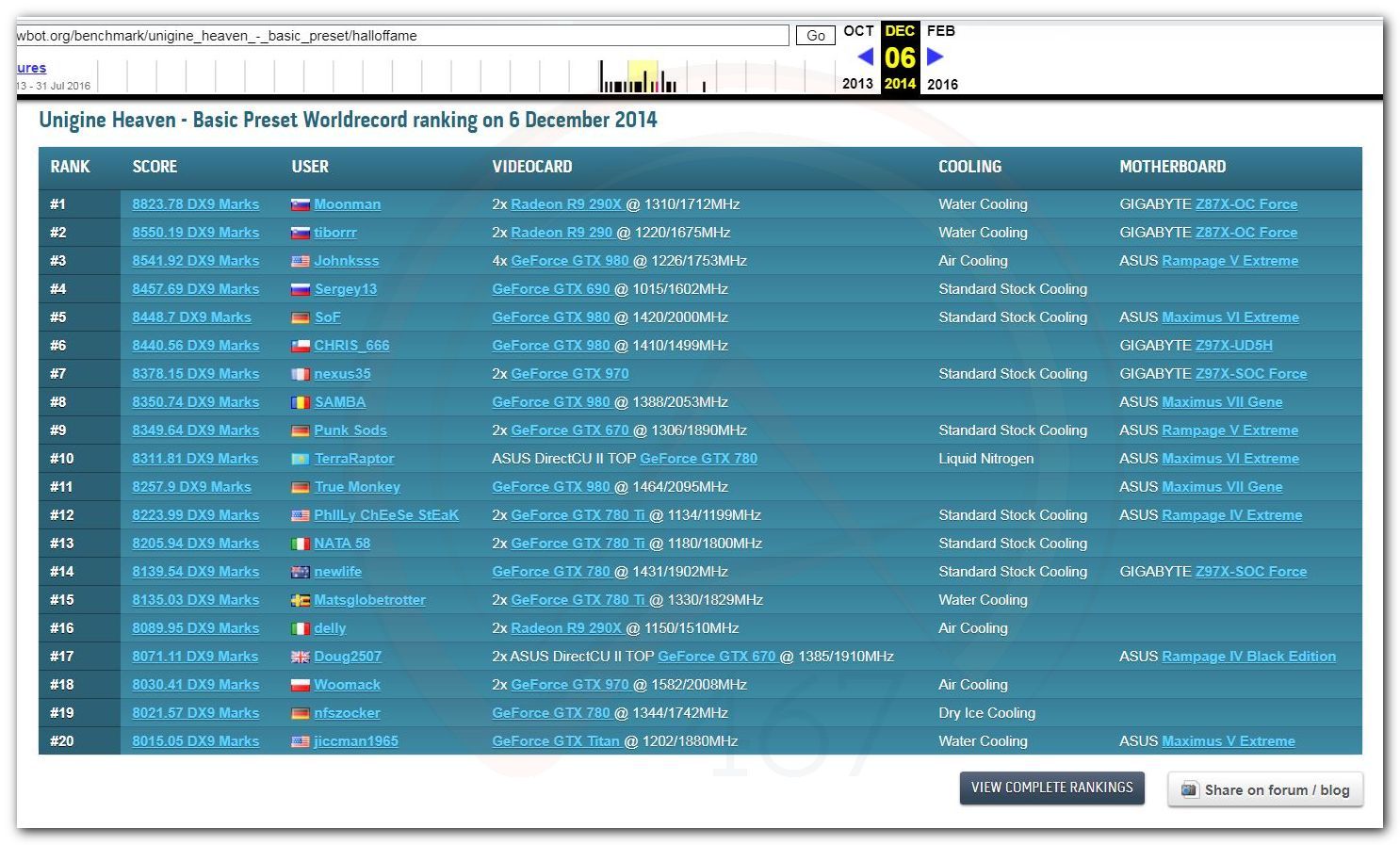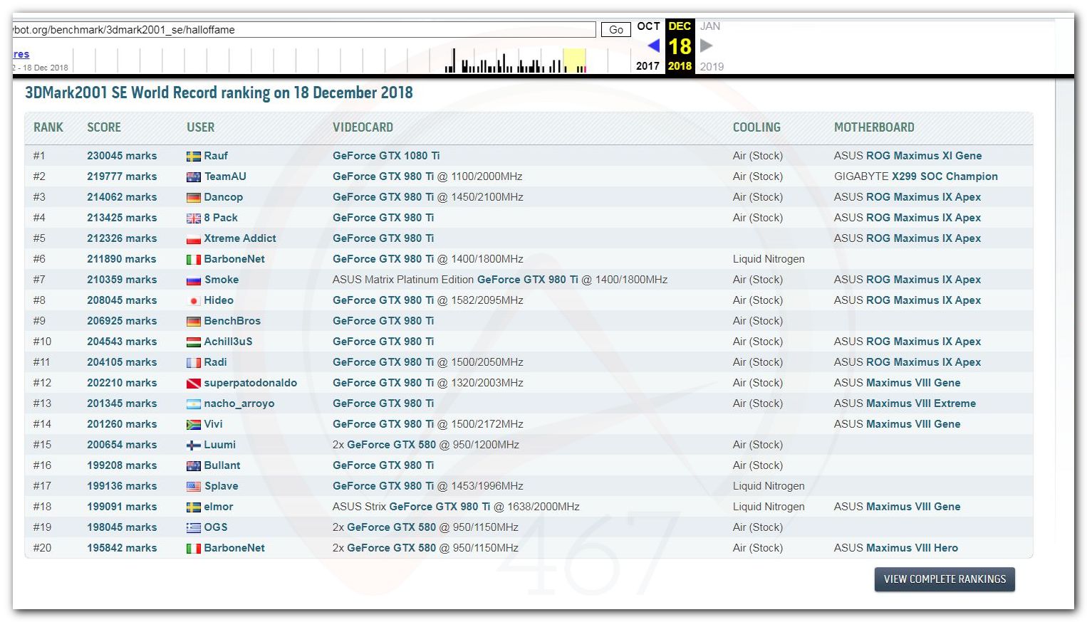 В 2000г. наверное самый бум наступил в момент появления 3DMark2000 и далее 2001, и создания базы этих результатов ORB на сайте MadOnion. В последствии перекочевала на Futuremark.