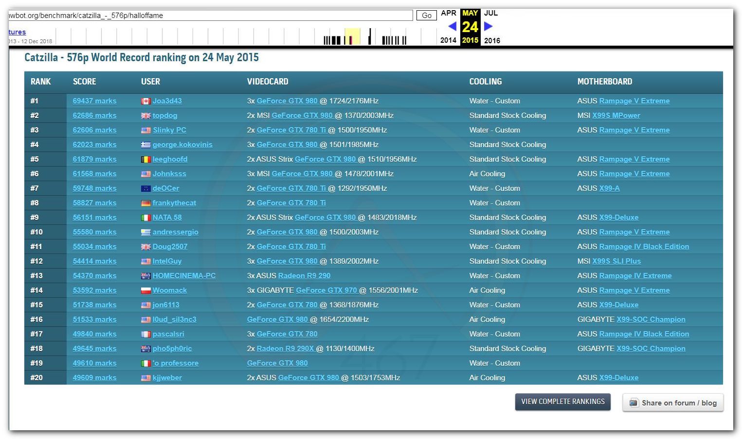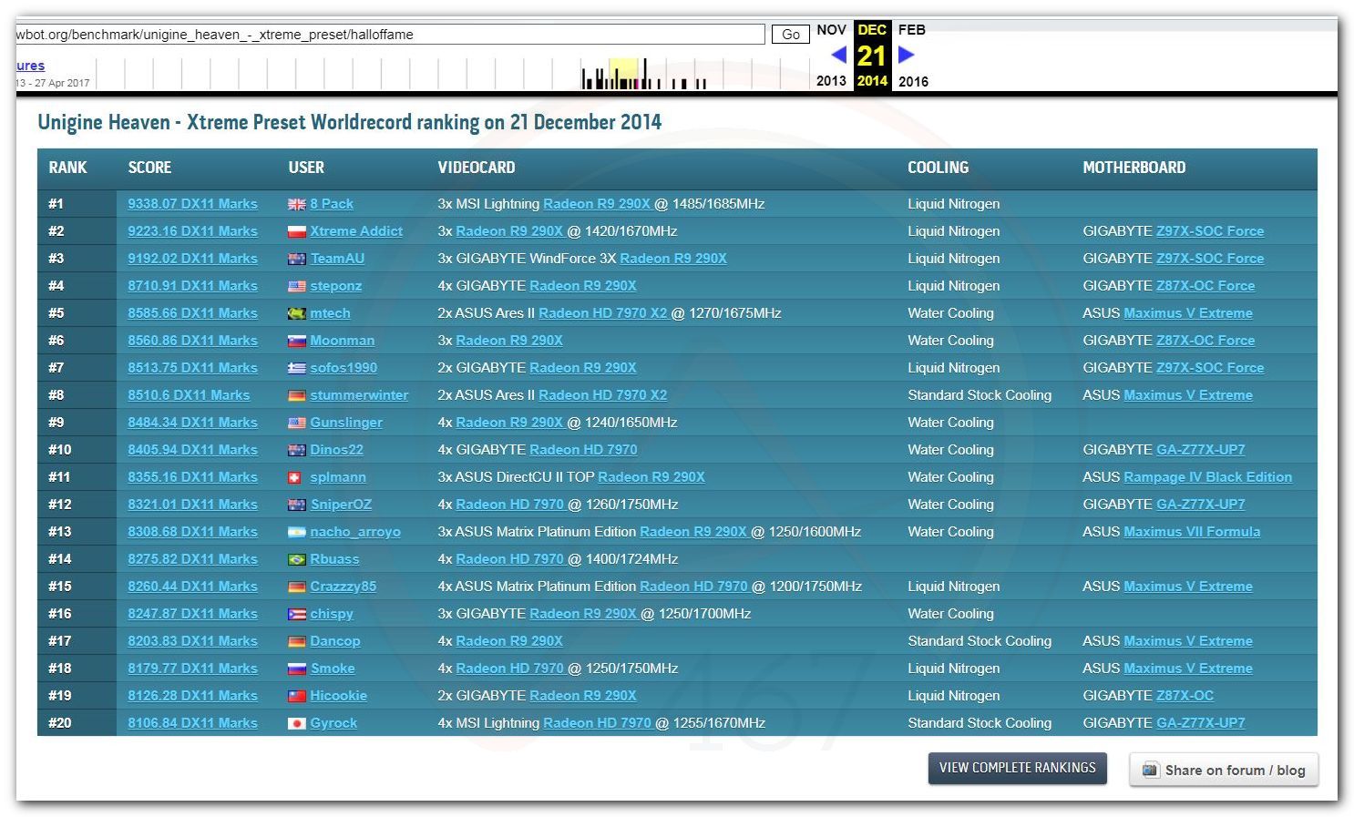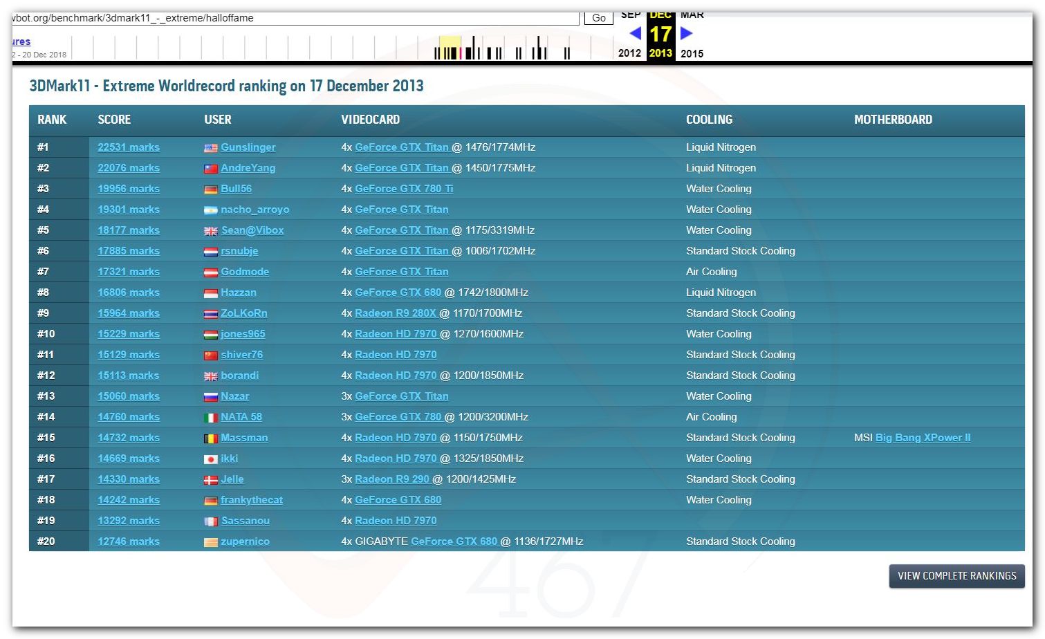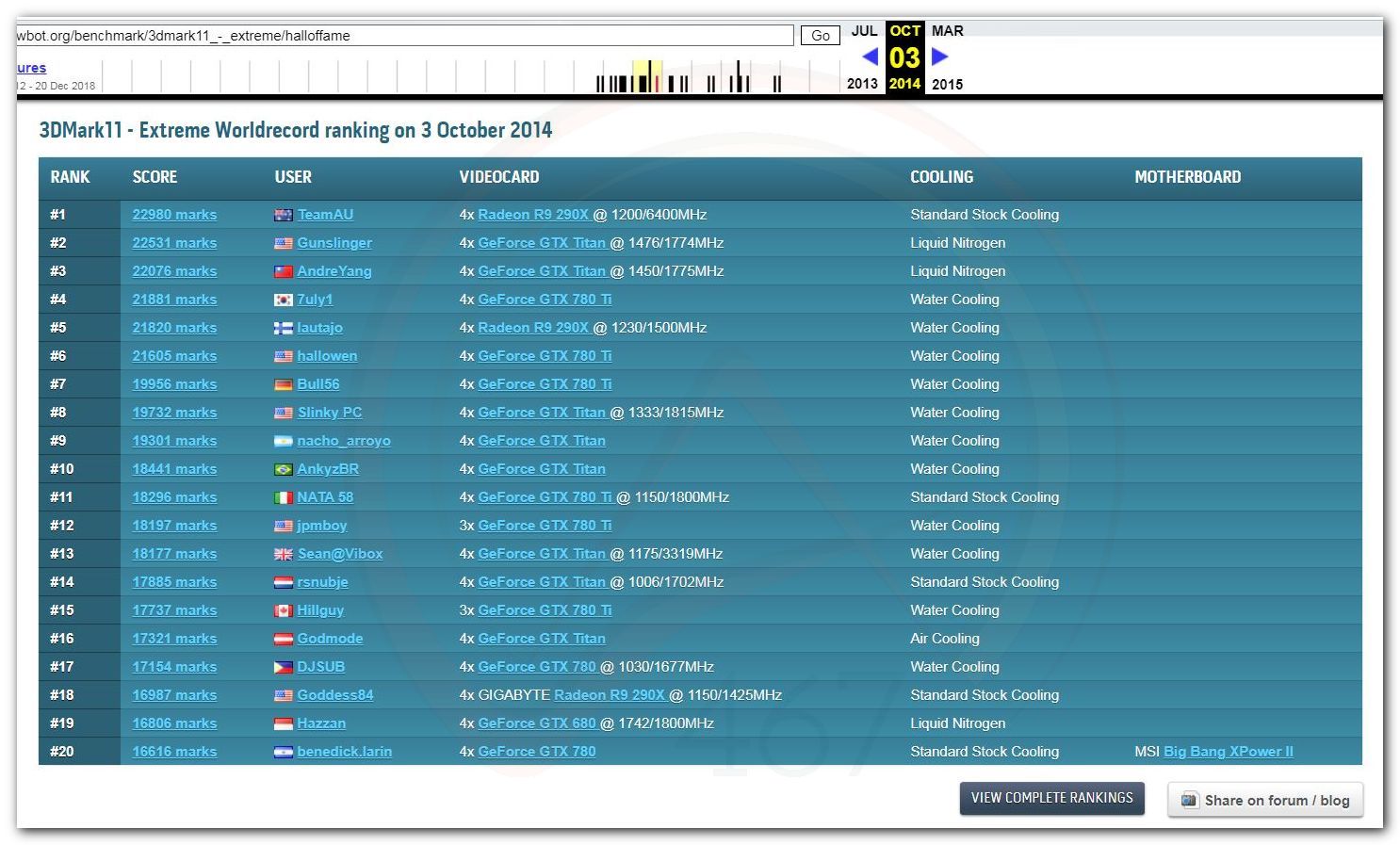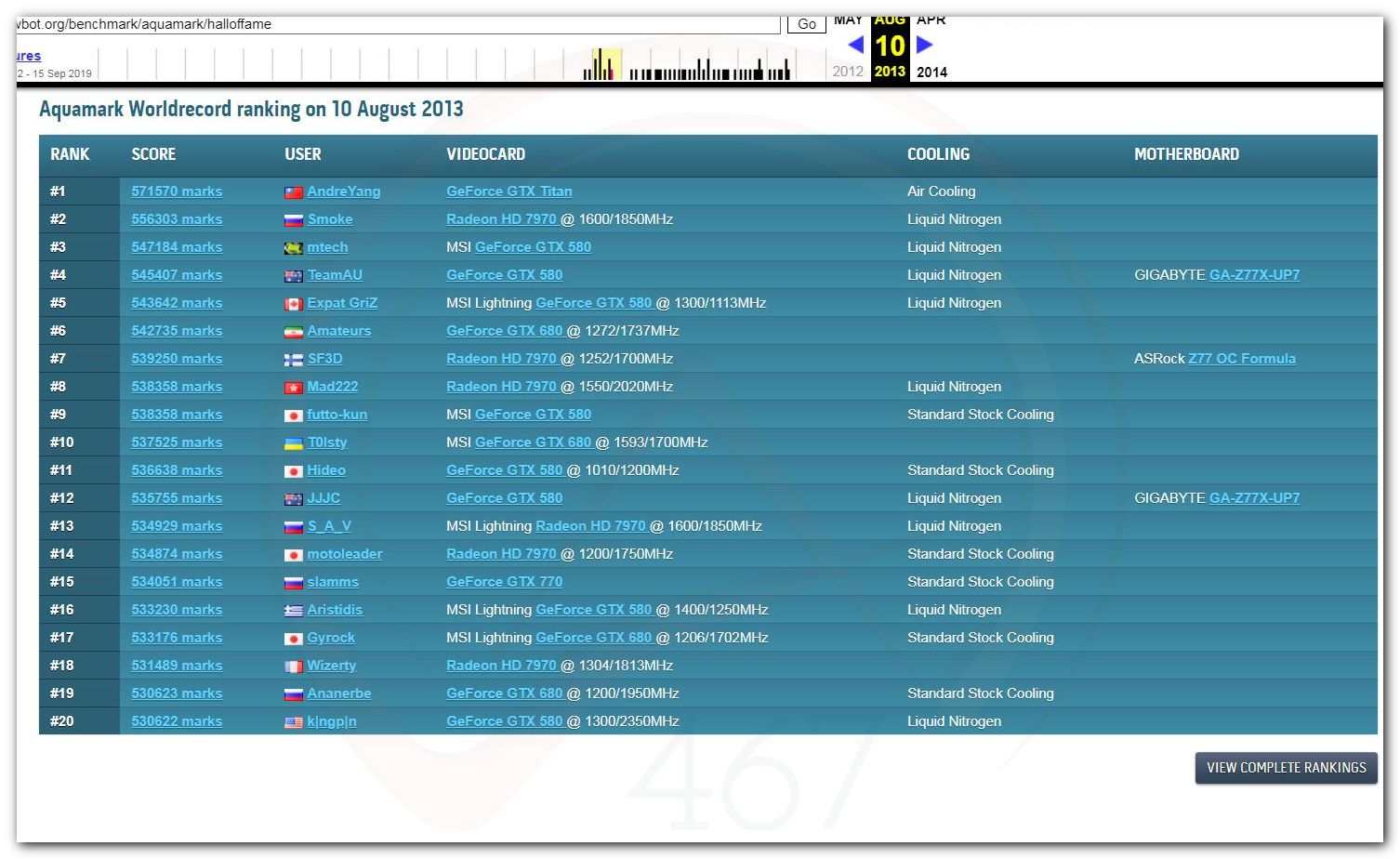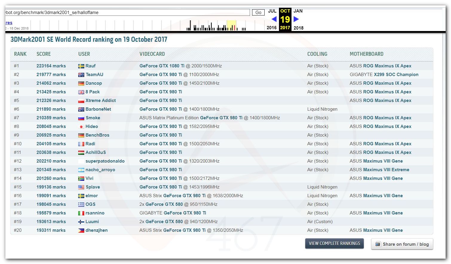 В 2000г. наверное самый бум наступил в момент появления 3DMark2000 и далее 2001, и создания базы этих результатов ORB на сайте MadOnion. В последствии перекочевала на Futuremark.