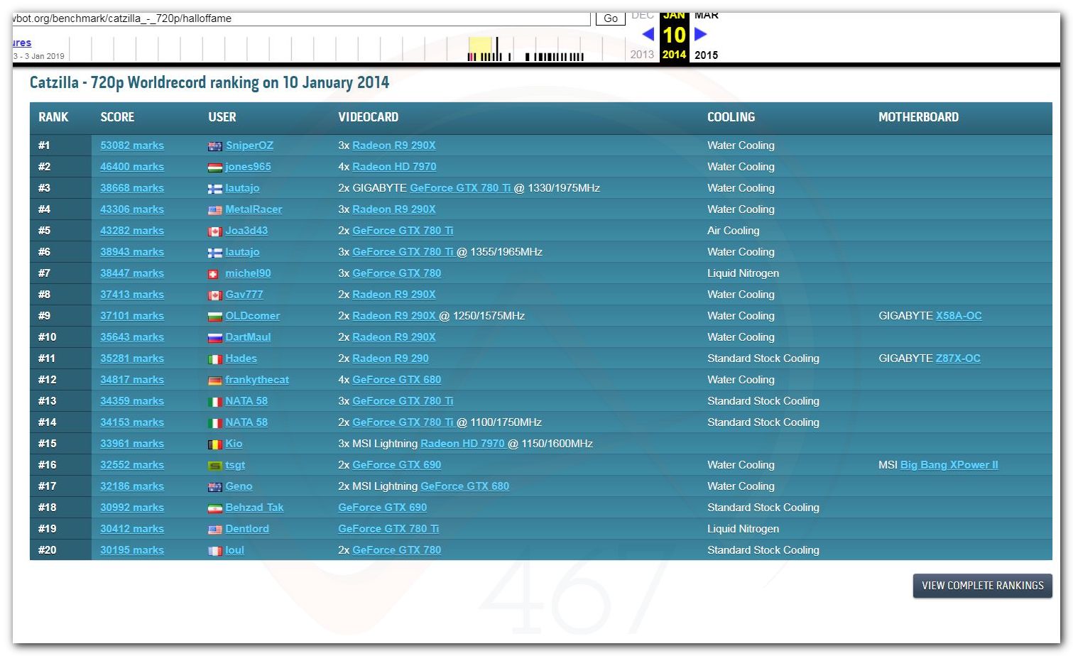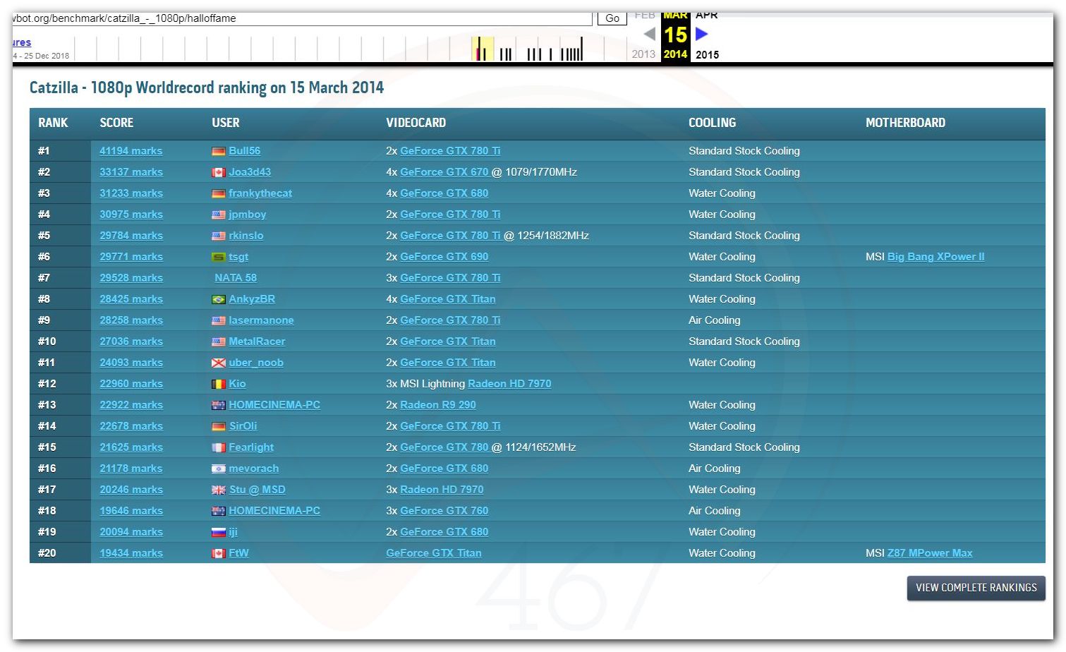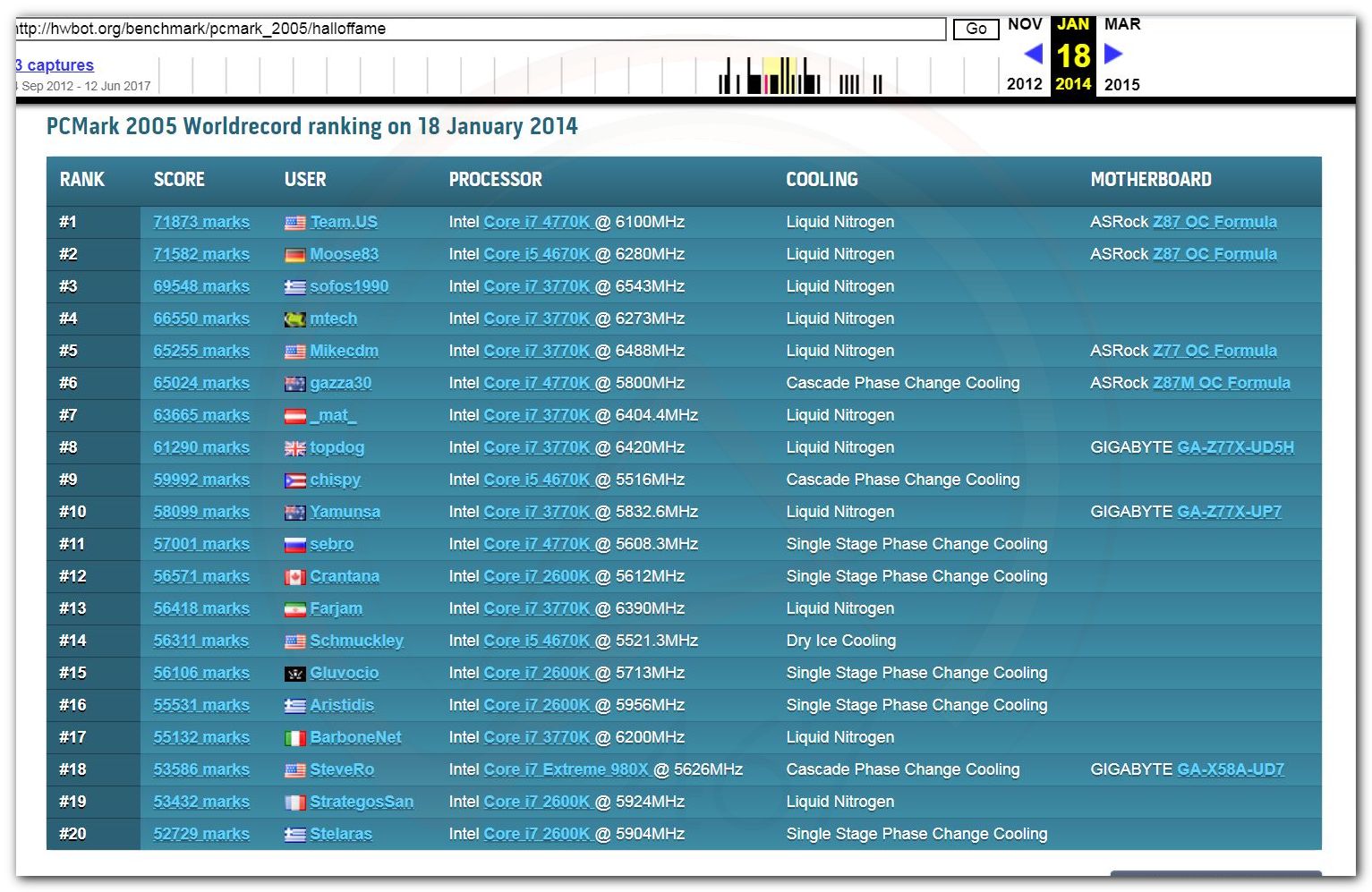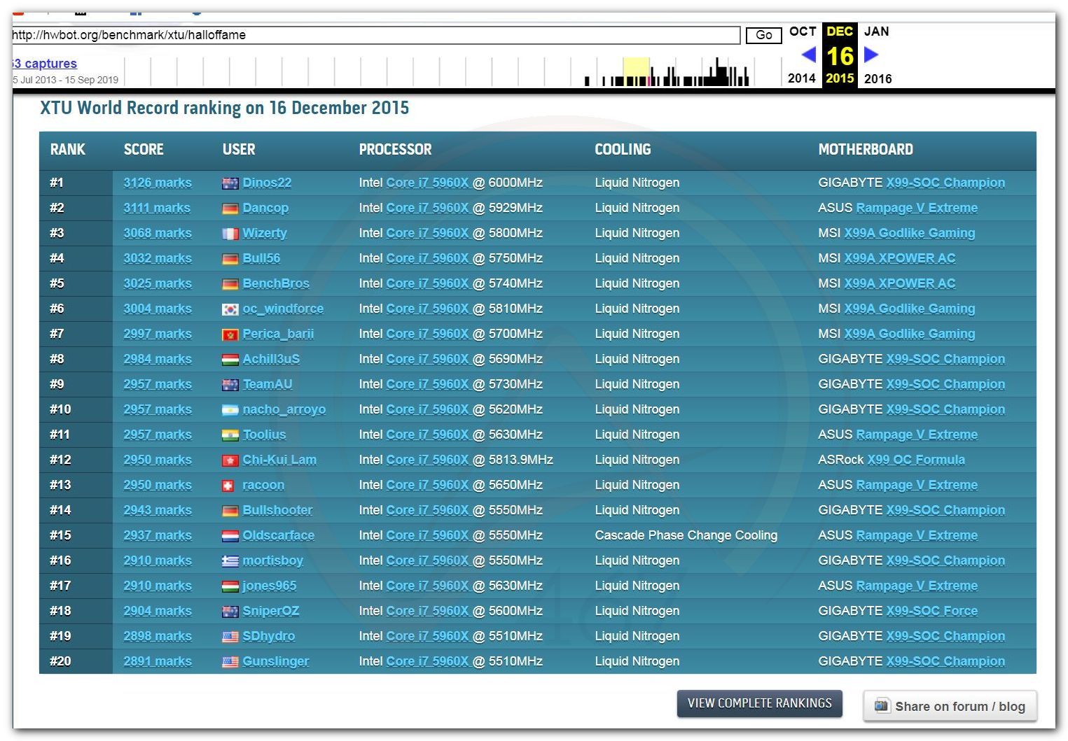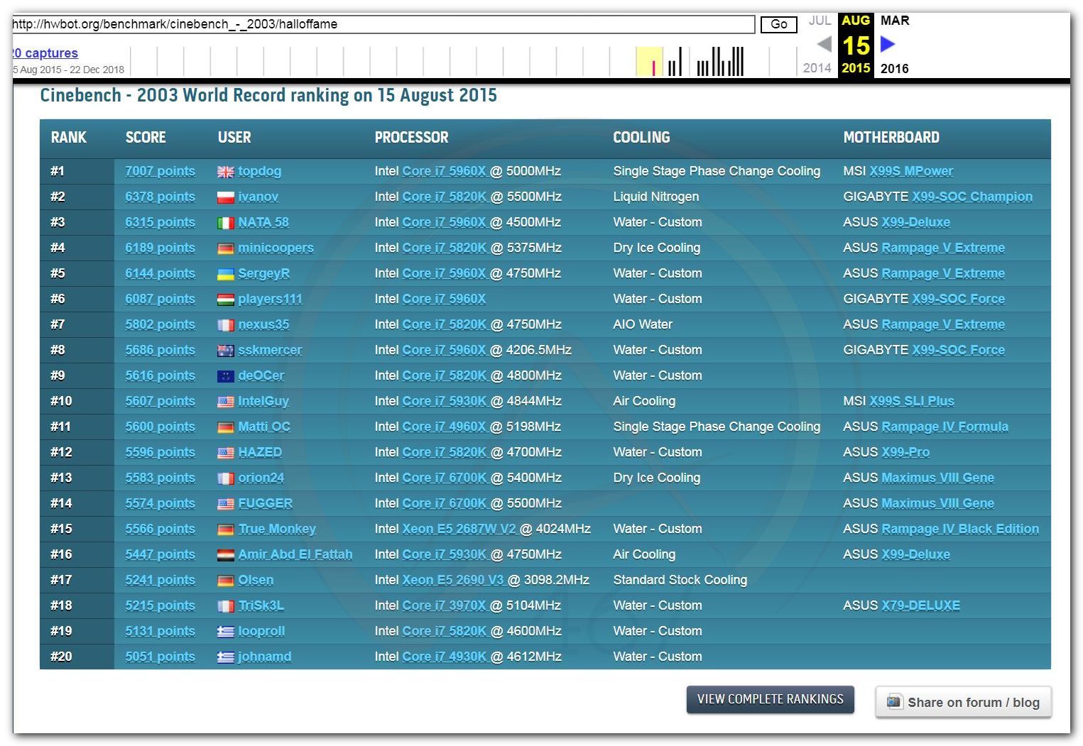 В 2000г. наверное самый бум наступил в момент появления 3DMark2000 и далее 2001, и создания базы этих результатов ORB на сайте MadOnion. В последствии перекочевала на Futuremark.