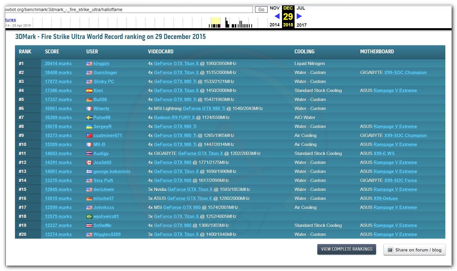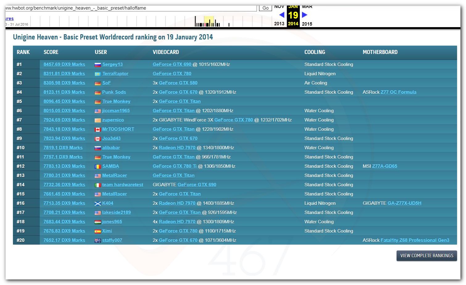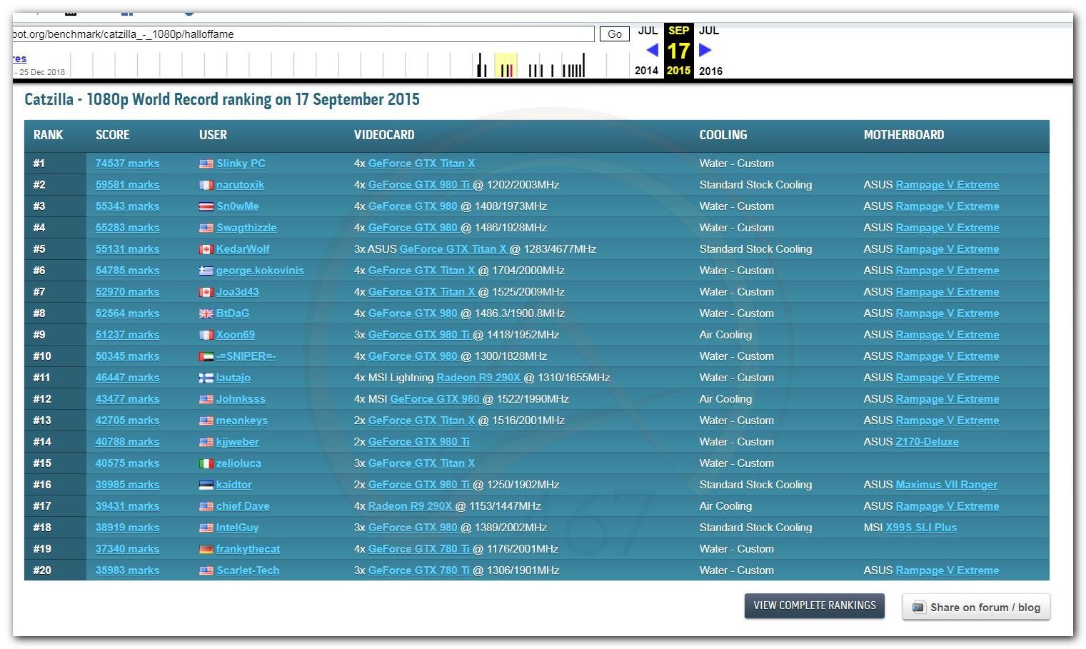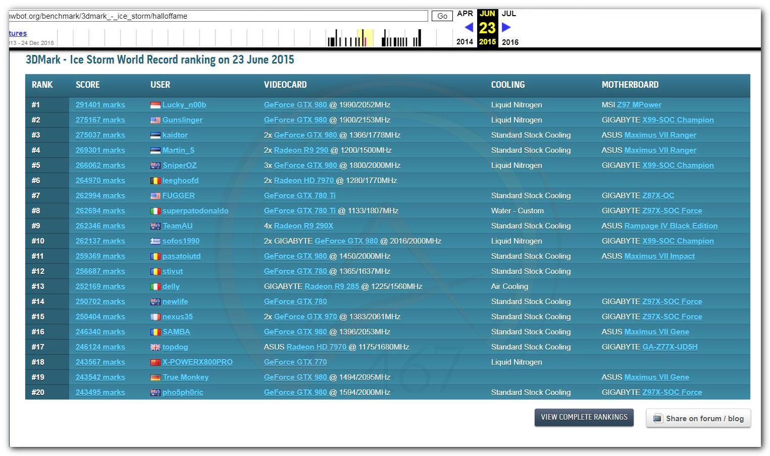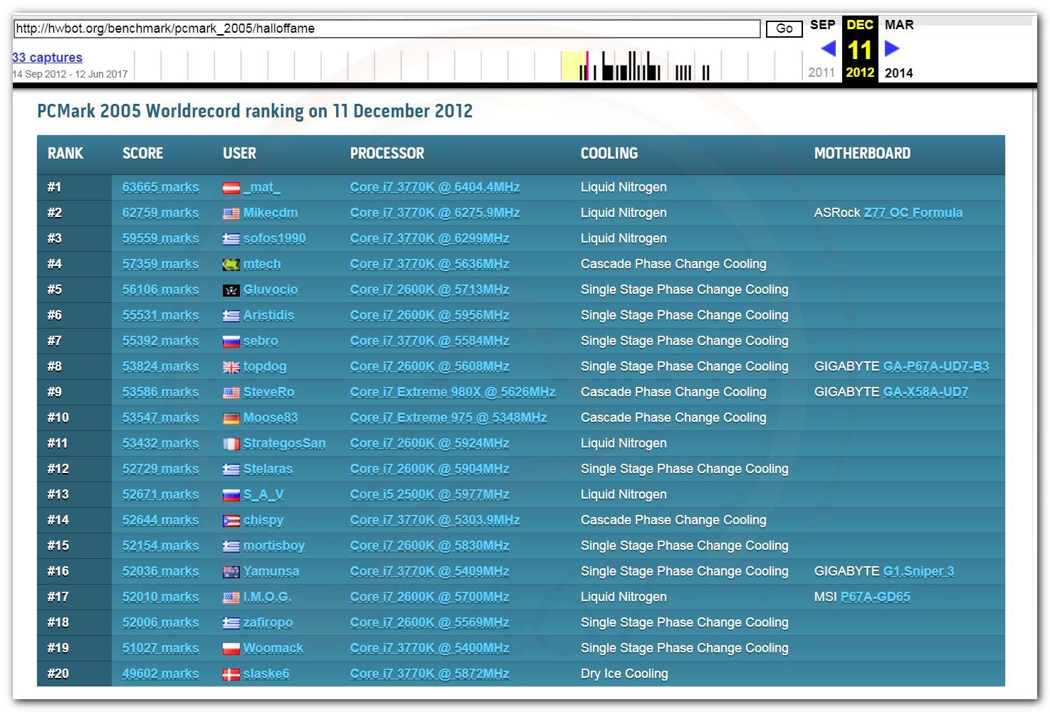 В 2000г. наверное самый бум наступил в момент появления 3DMark2000 и далее 2001, и создания базы этих результатов ORB на сайте MadOnion. В последствии перекочевала на Futuremark.