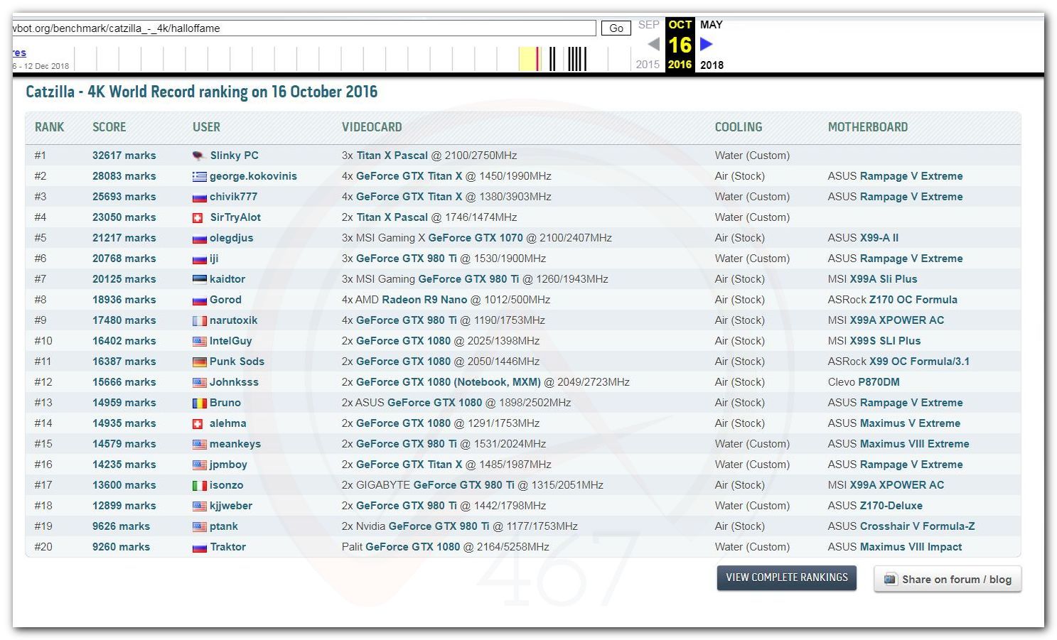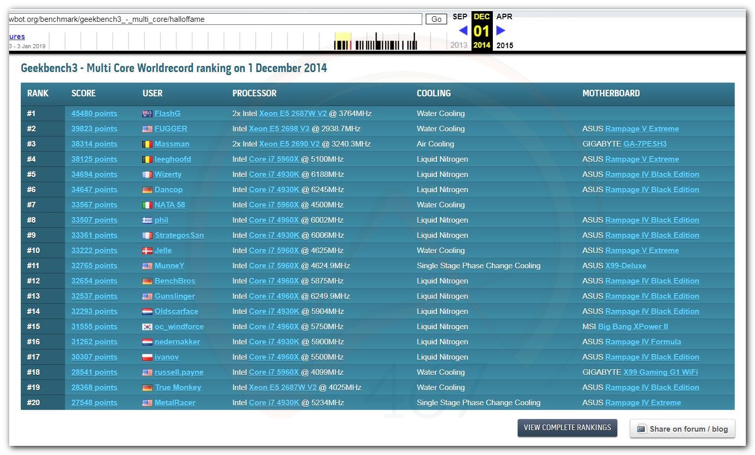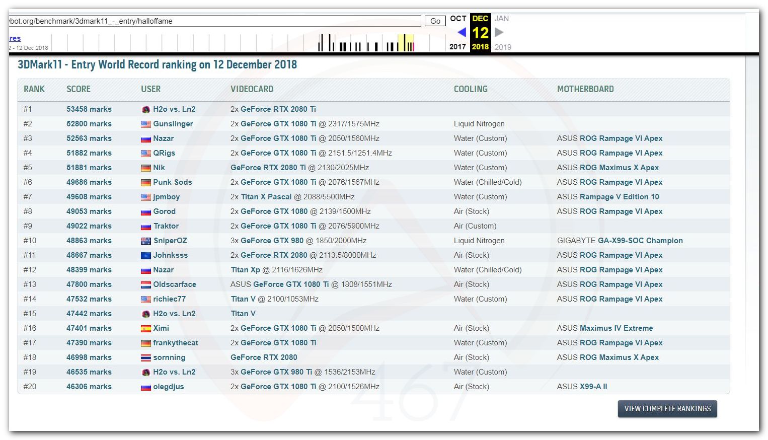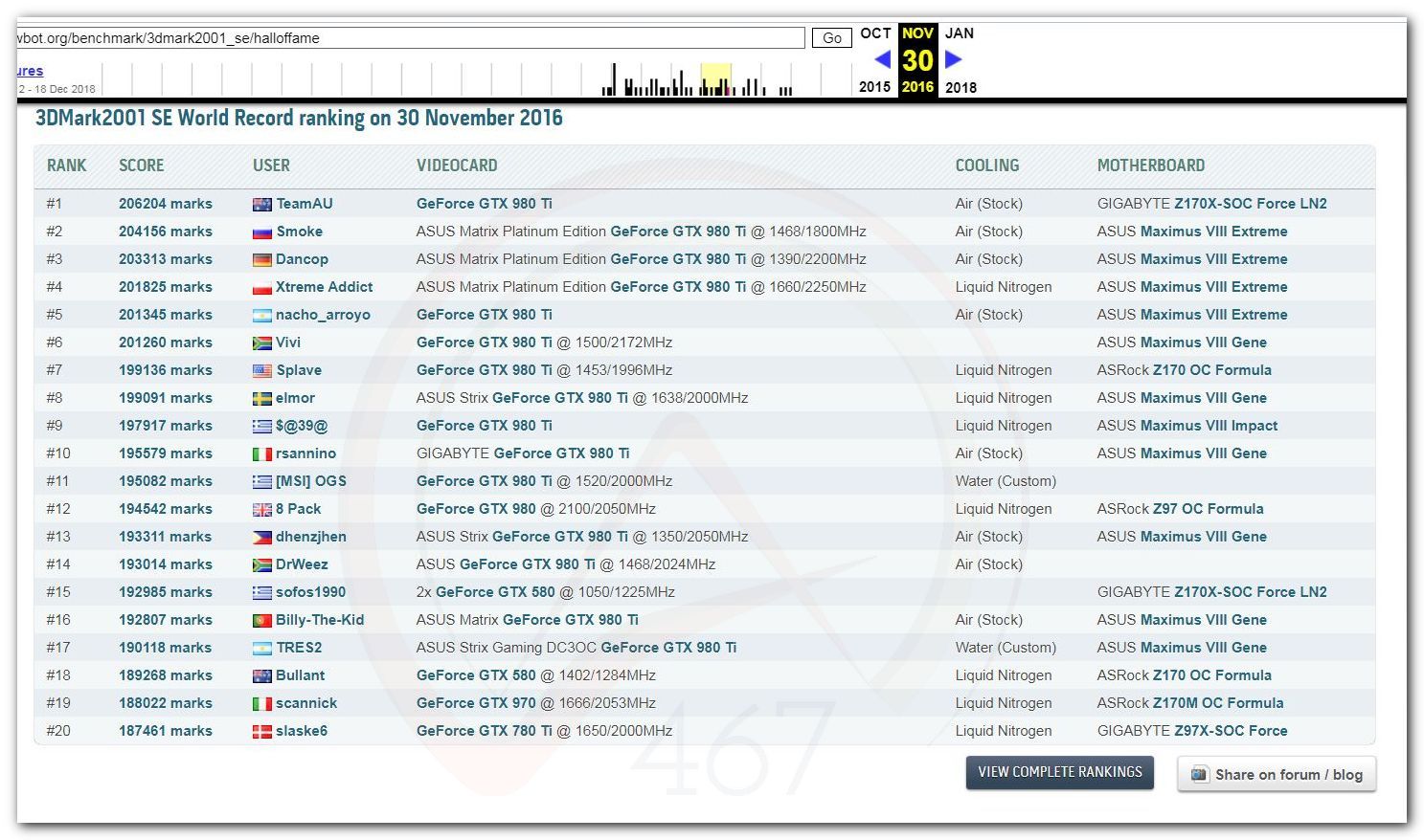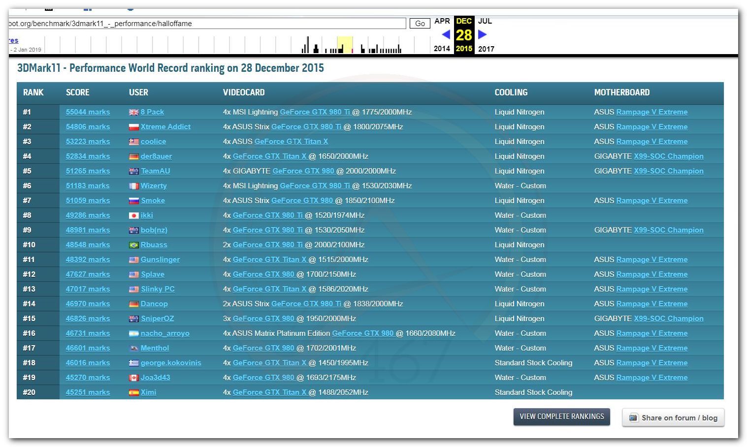 В 2000г. наверное самый бум наступил в момент появления 3DMark2000 и далее 2001, и создания базы этих результатов ORB на сайте MadOnion. В последствии перекочевала на Futuremark.