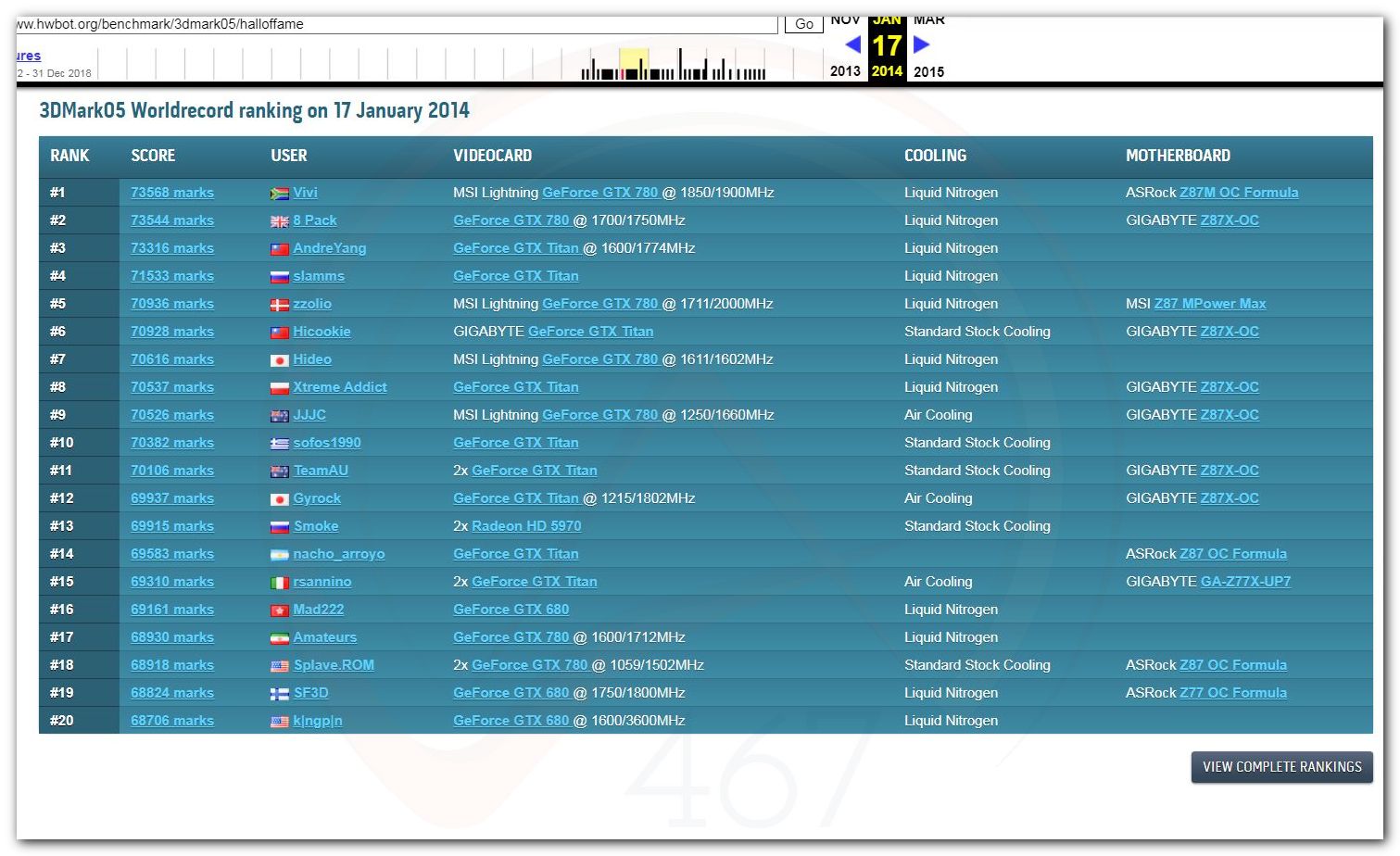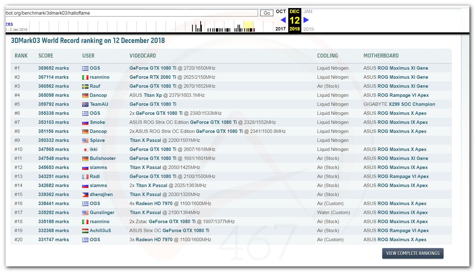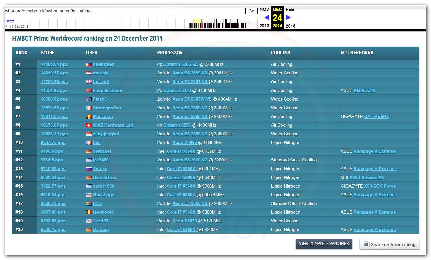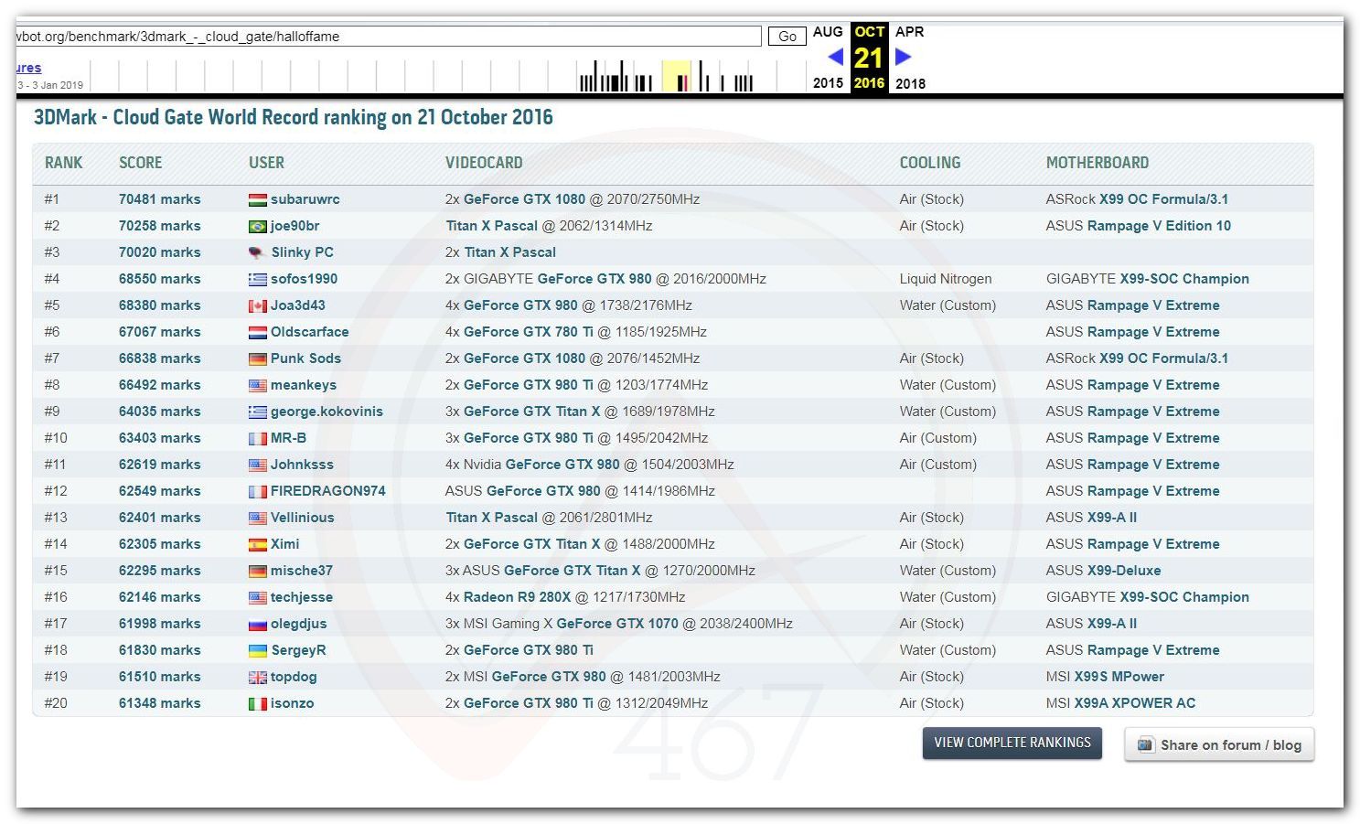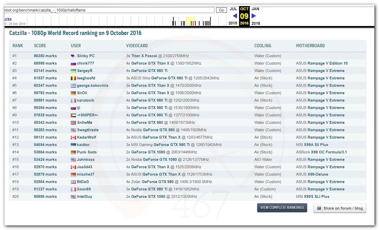 В 2000г. наверное самый бум наступил в момент появления 3DMark2000 и далее 2001, и создания базы этих результатов ORB на сайте MadOnion. В последствии перекочевала на Futuremark.