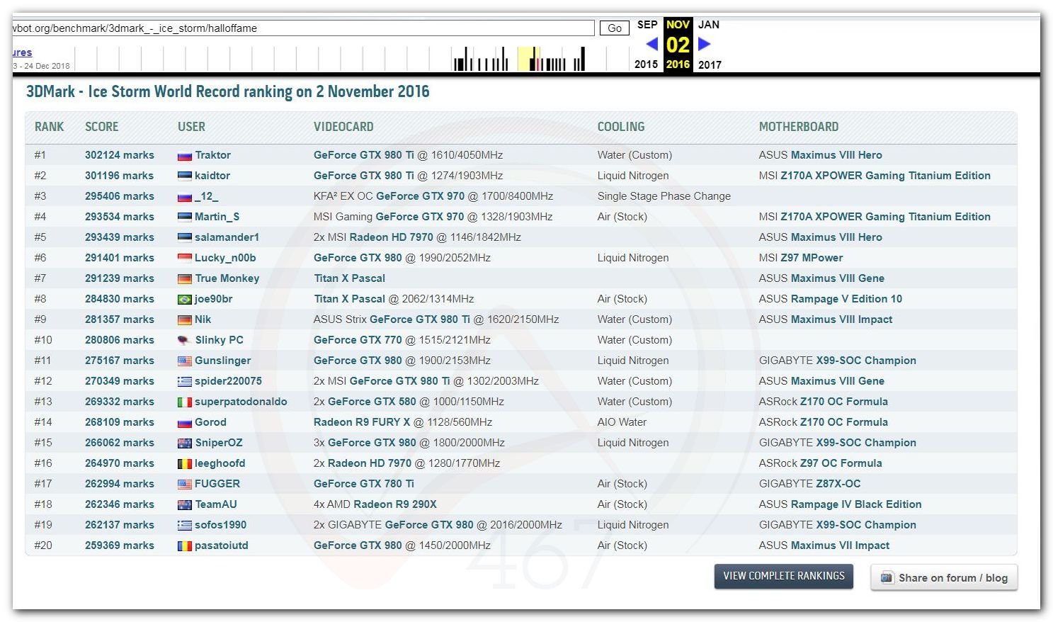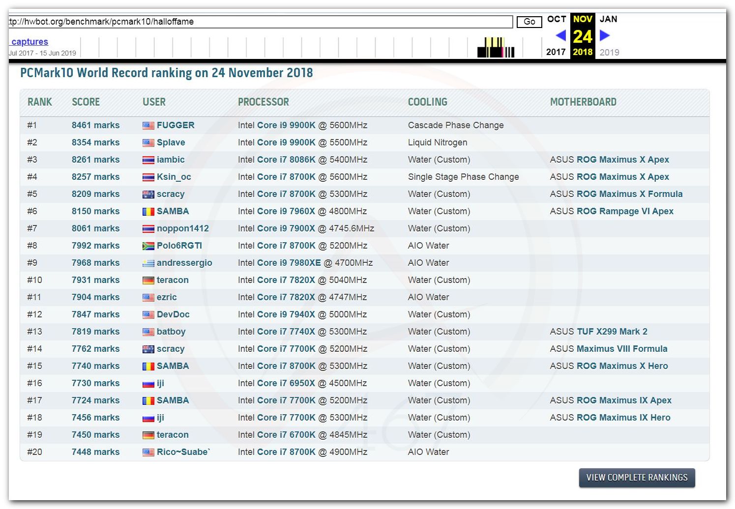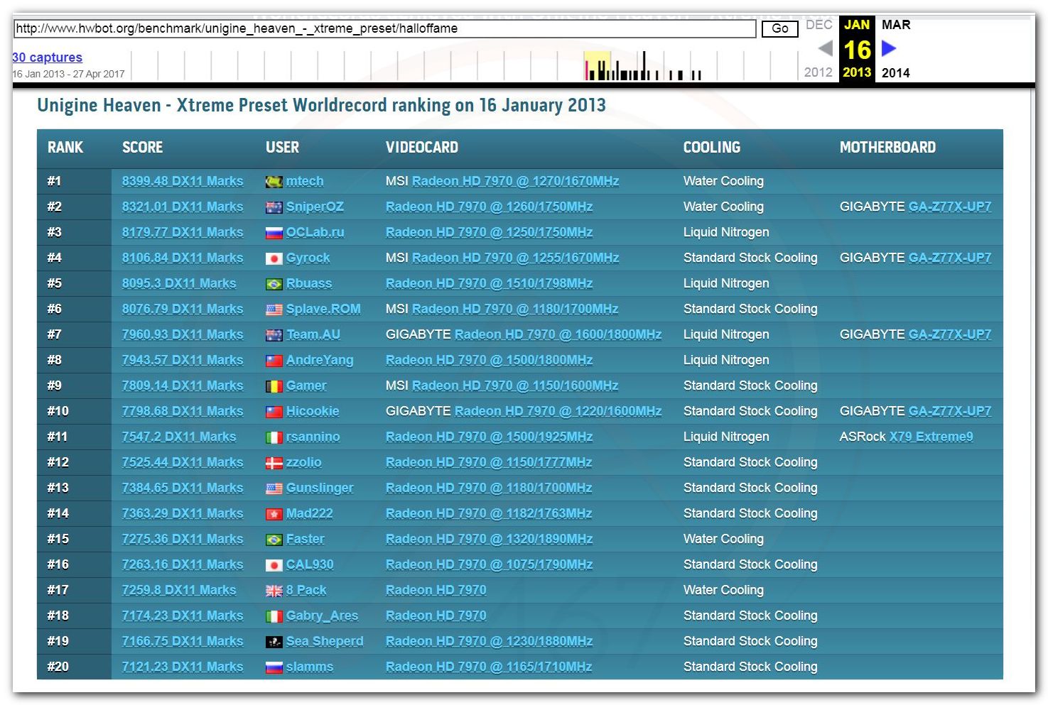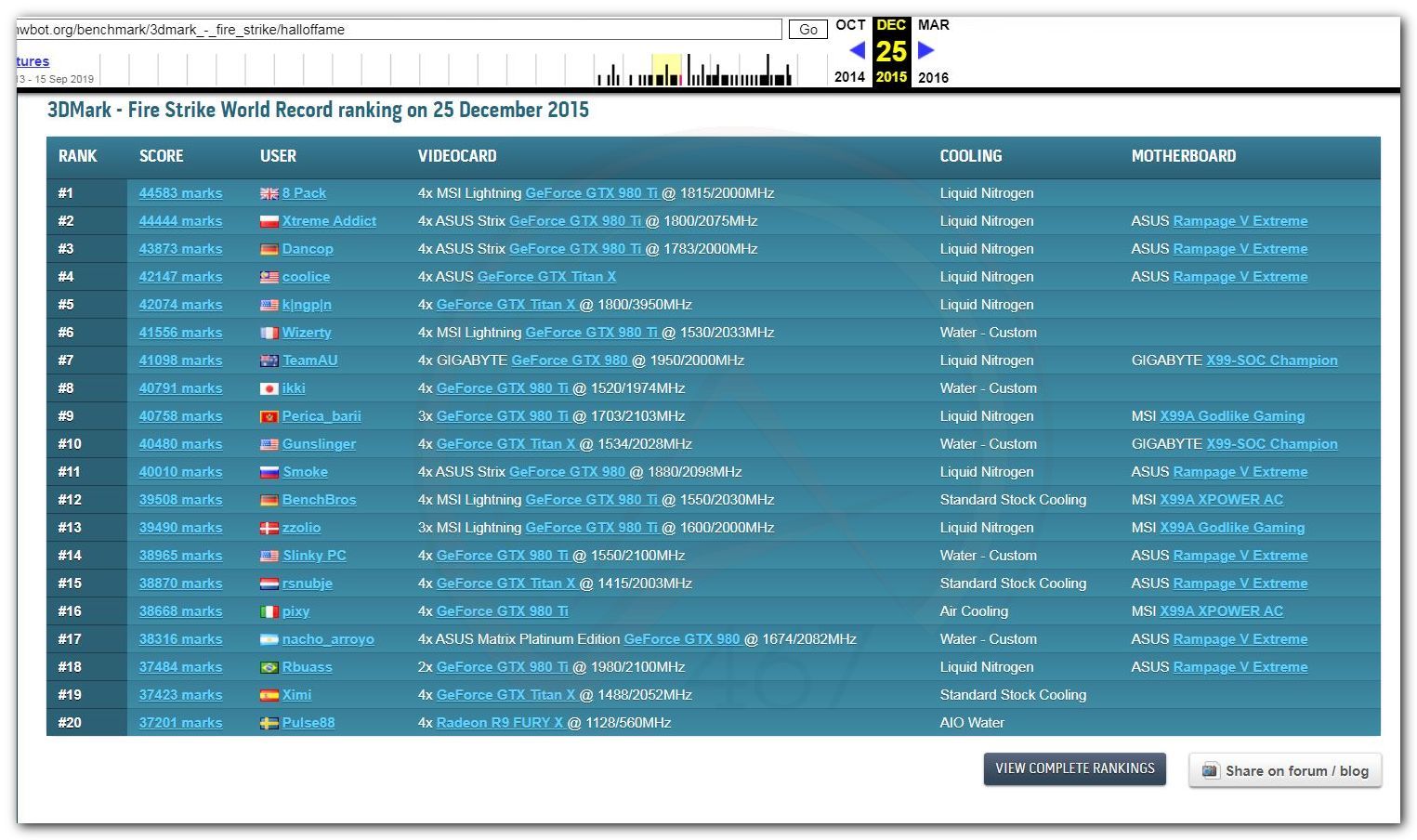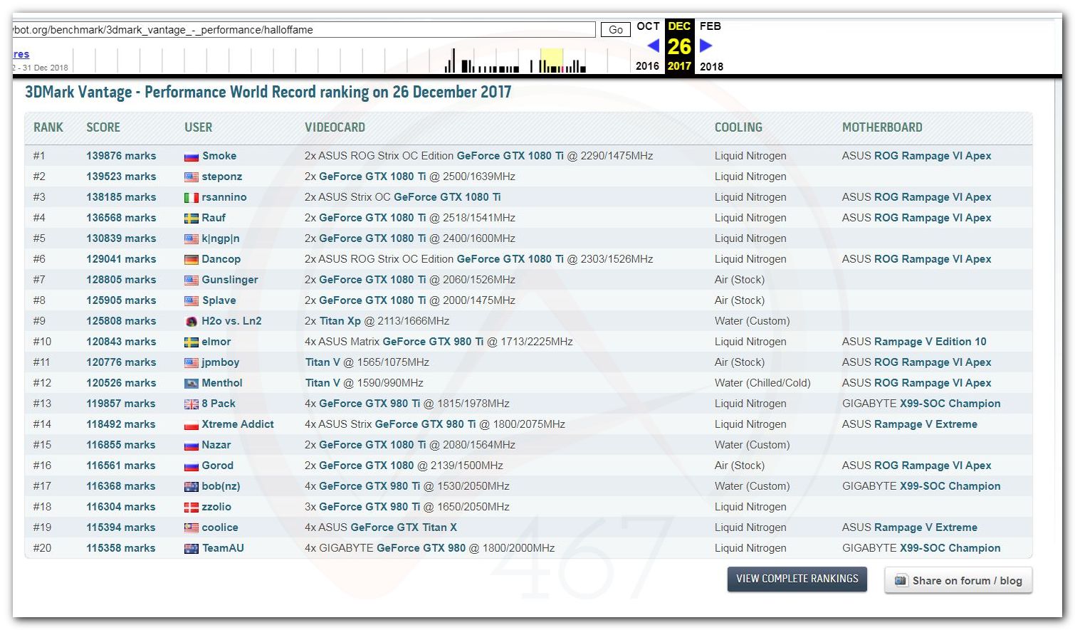 В 2000г. наверное самый бум наступил в момент появления 3DMark2000 и далее 2001, и создания базы этих результатов ORB на сайте MadOnion. В последствии перекочевала на Futuremark.