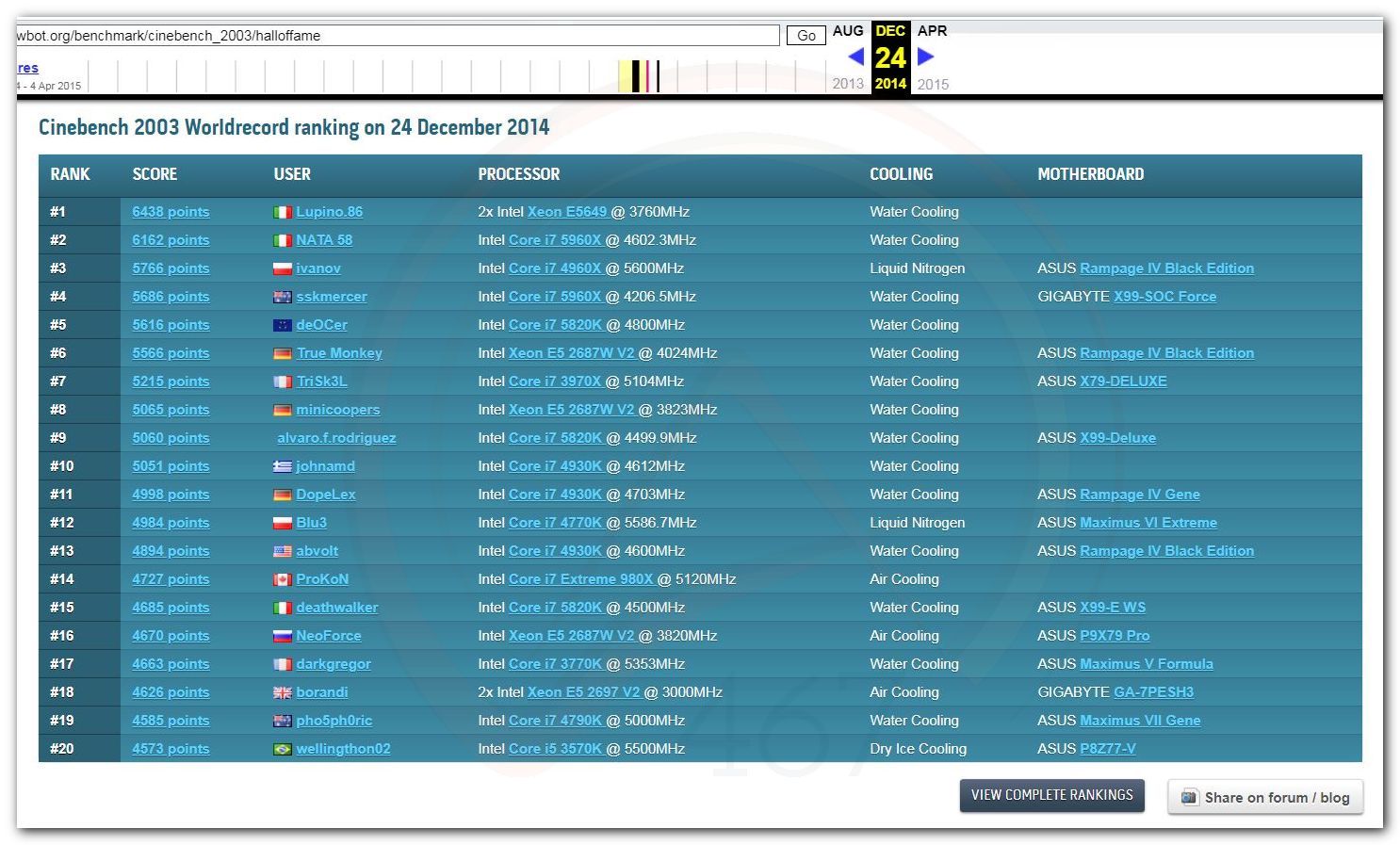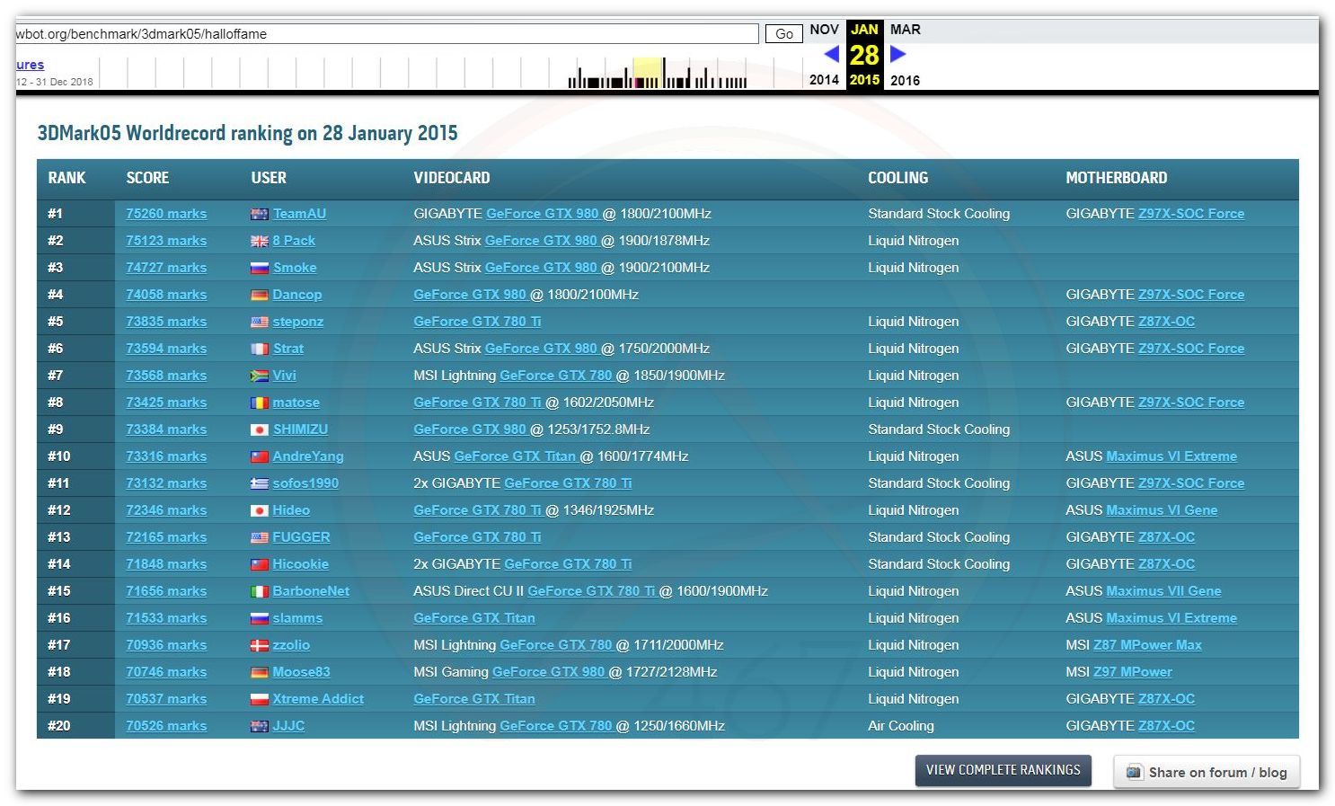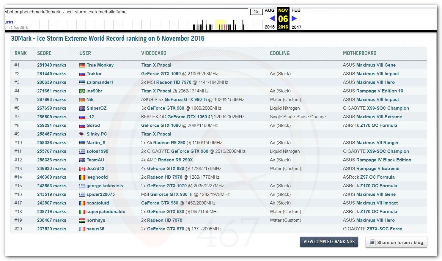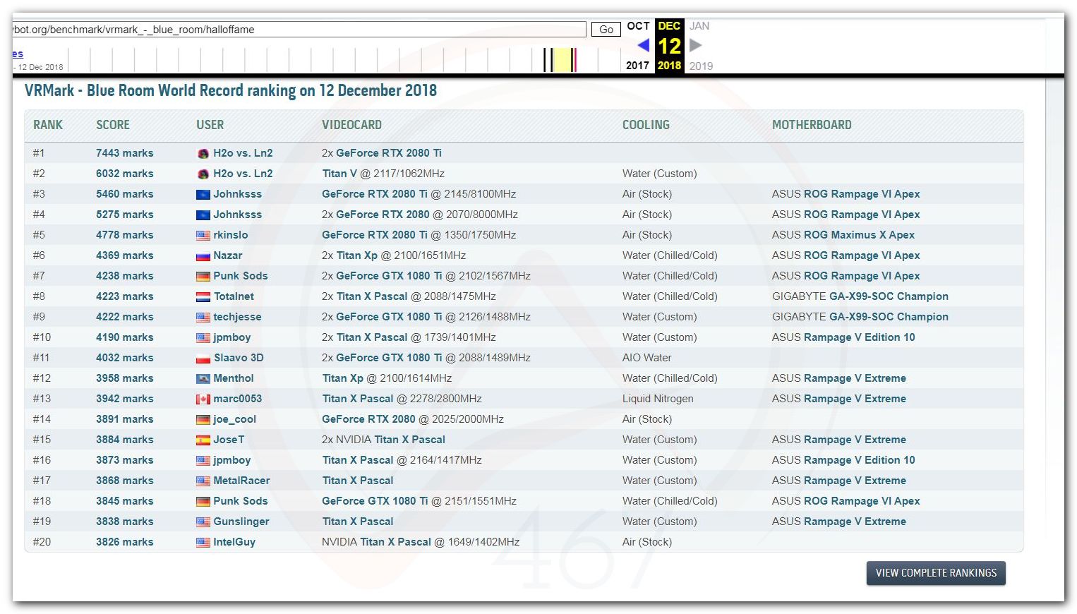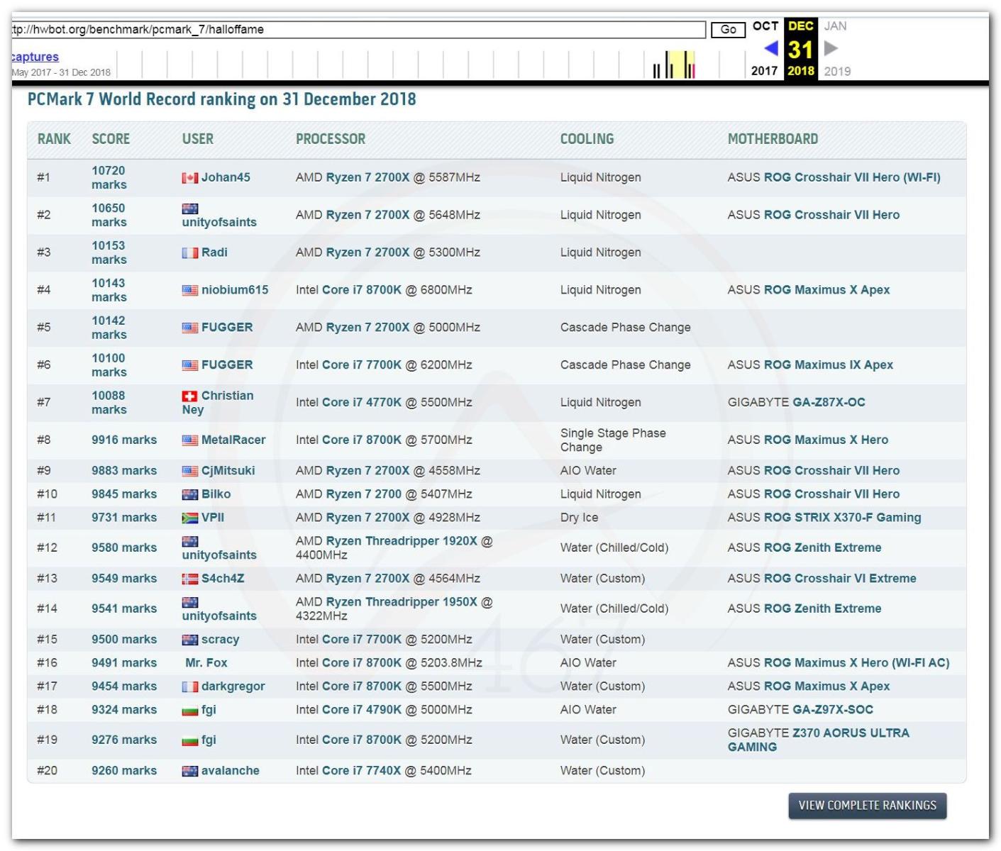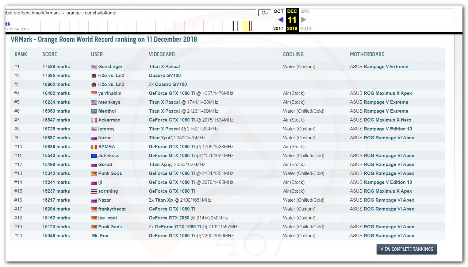 В 2000г. наверное самый бум наступил в момент появления 3DMark2000 и далее 2001, и создания базы этих результатов ORB на сайте MadOnion. В последствии перекочевала на Futuremark.