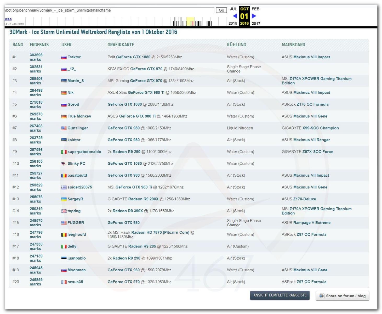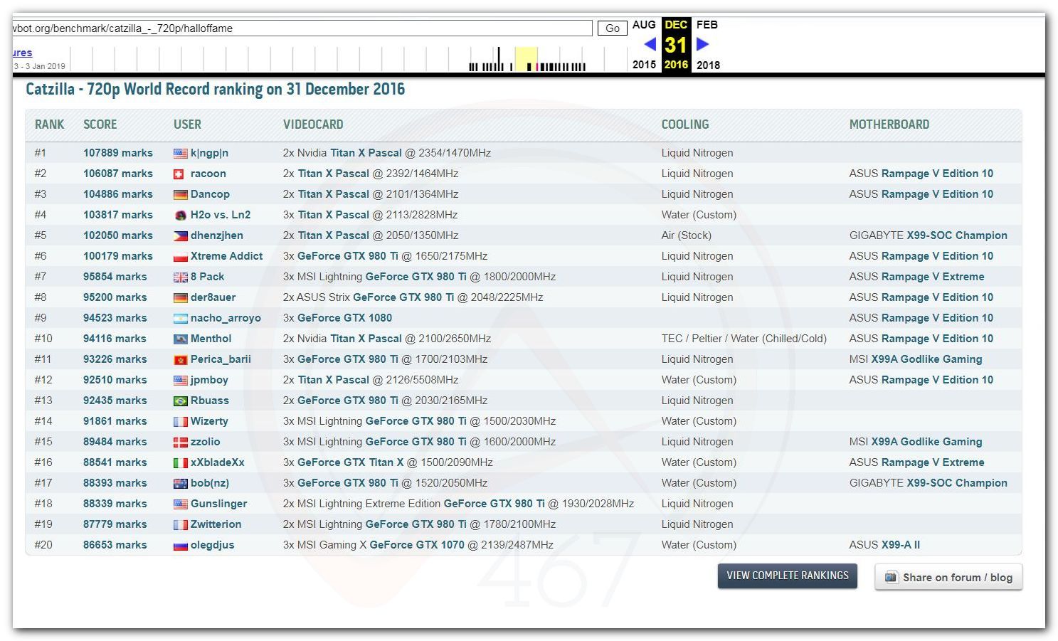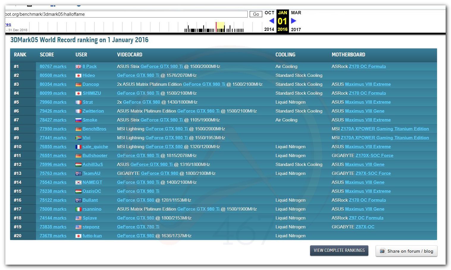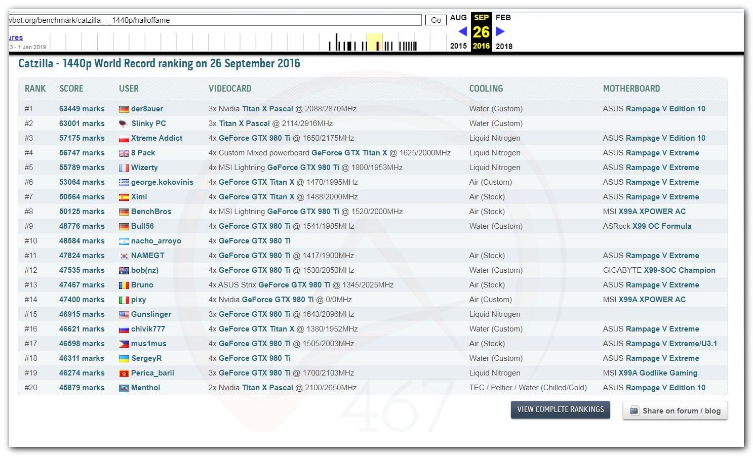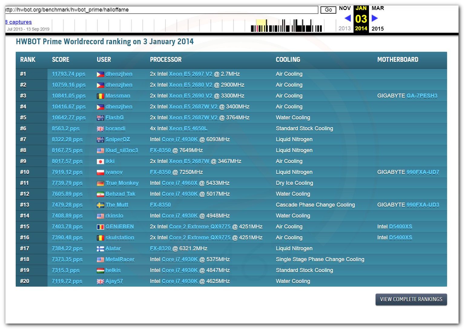 В 2000г. наверное самый бум наступил в момент появления 3DMark2000 и далее 2001, и создания базы этих результатов ORB на сайте MadOnion. В последствии перекочевала на Futuremark.