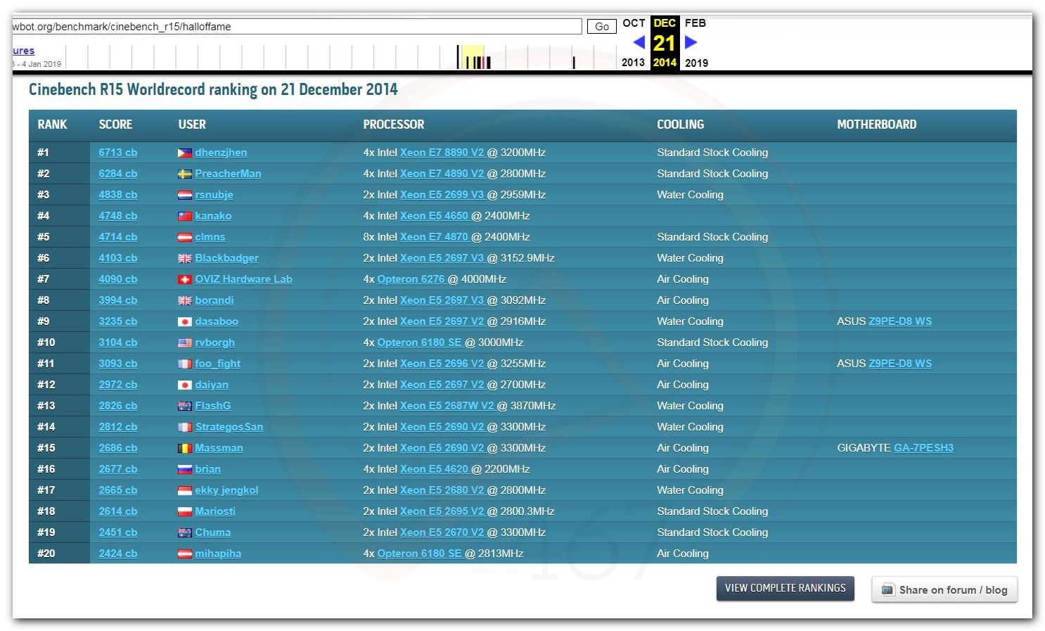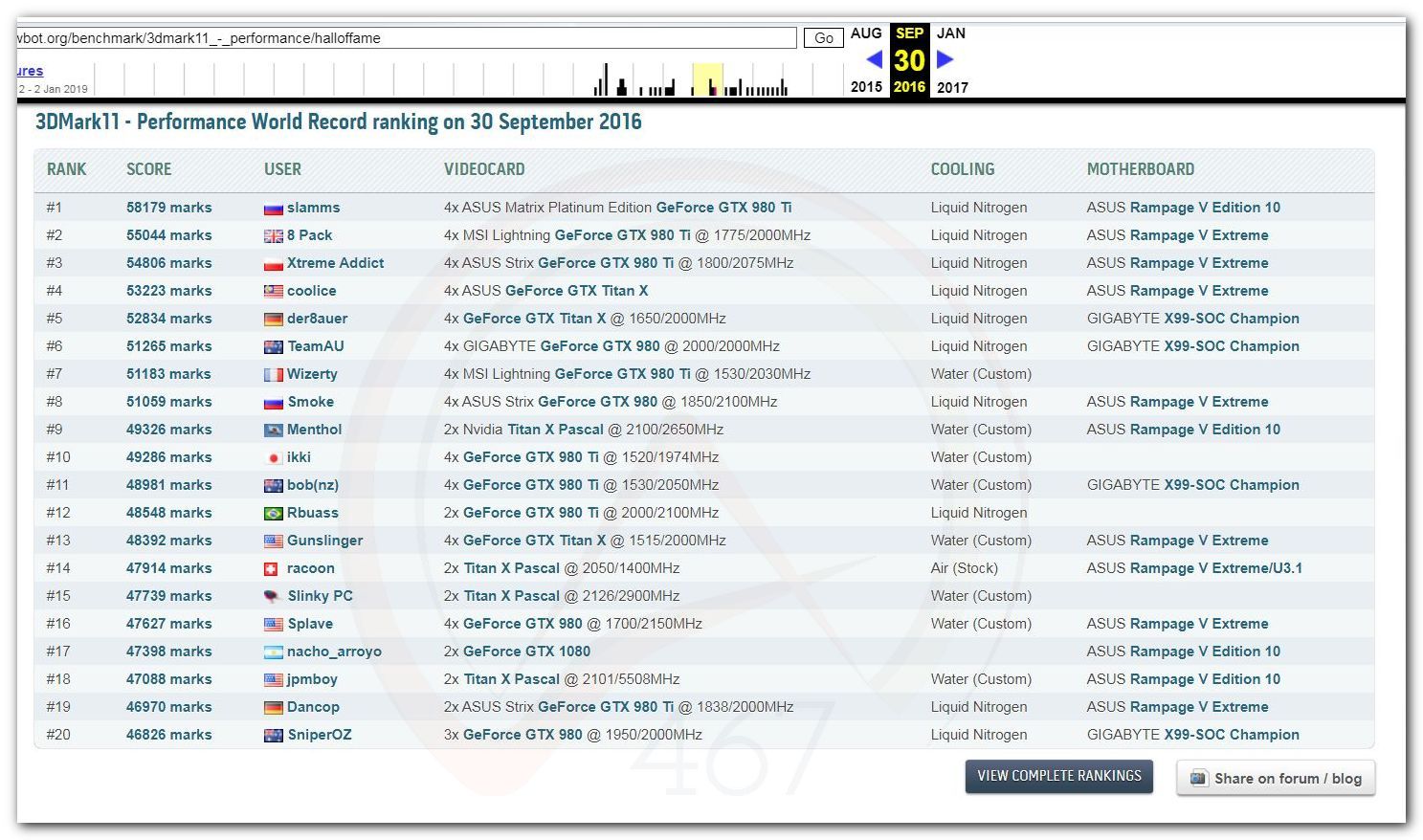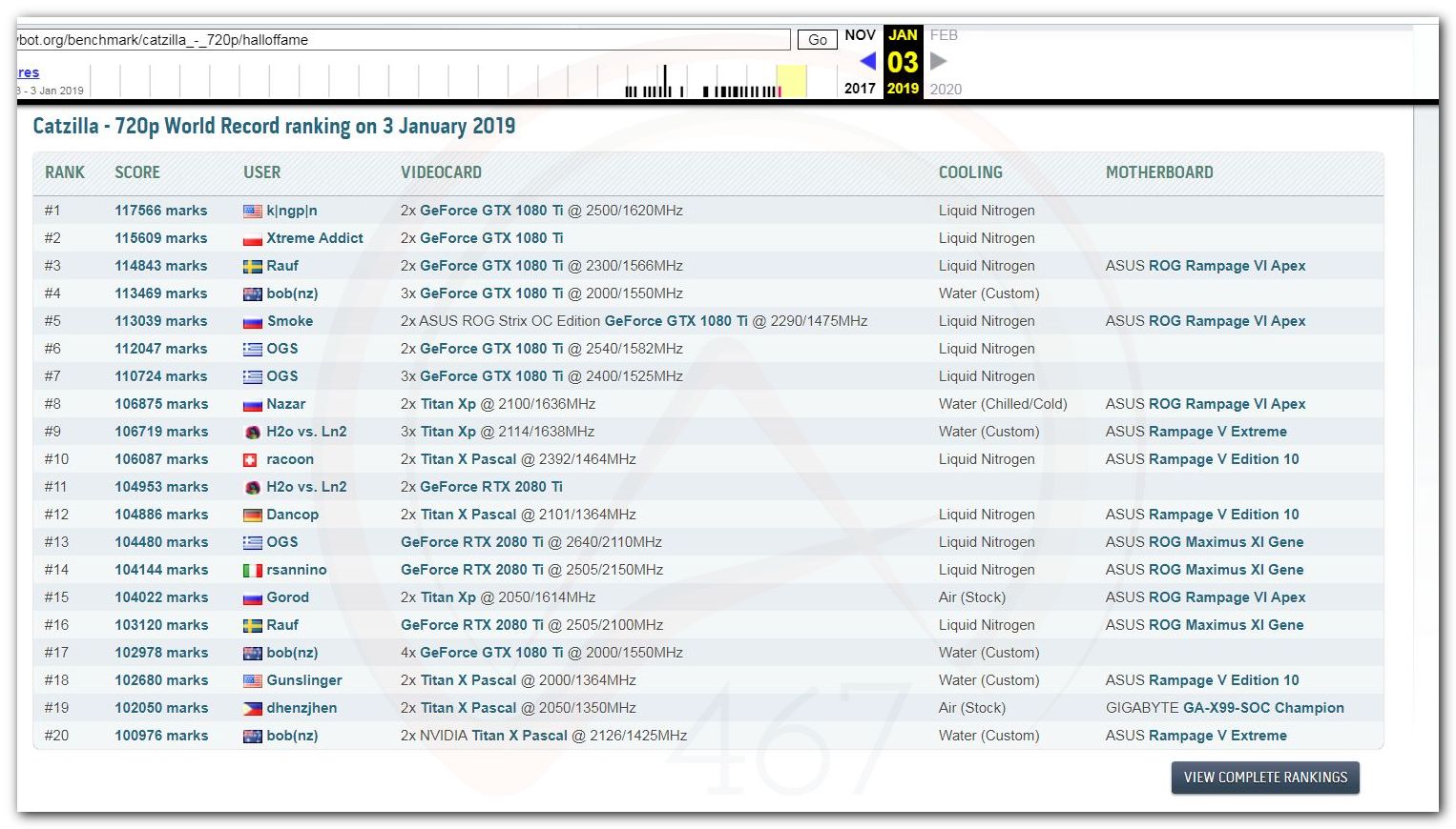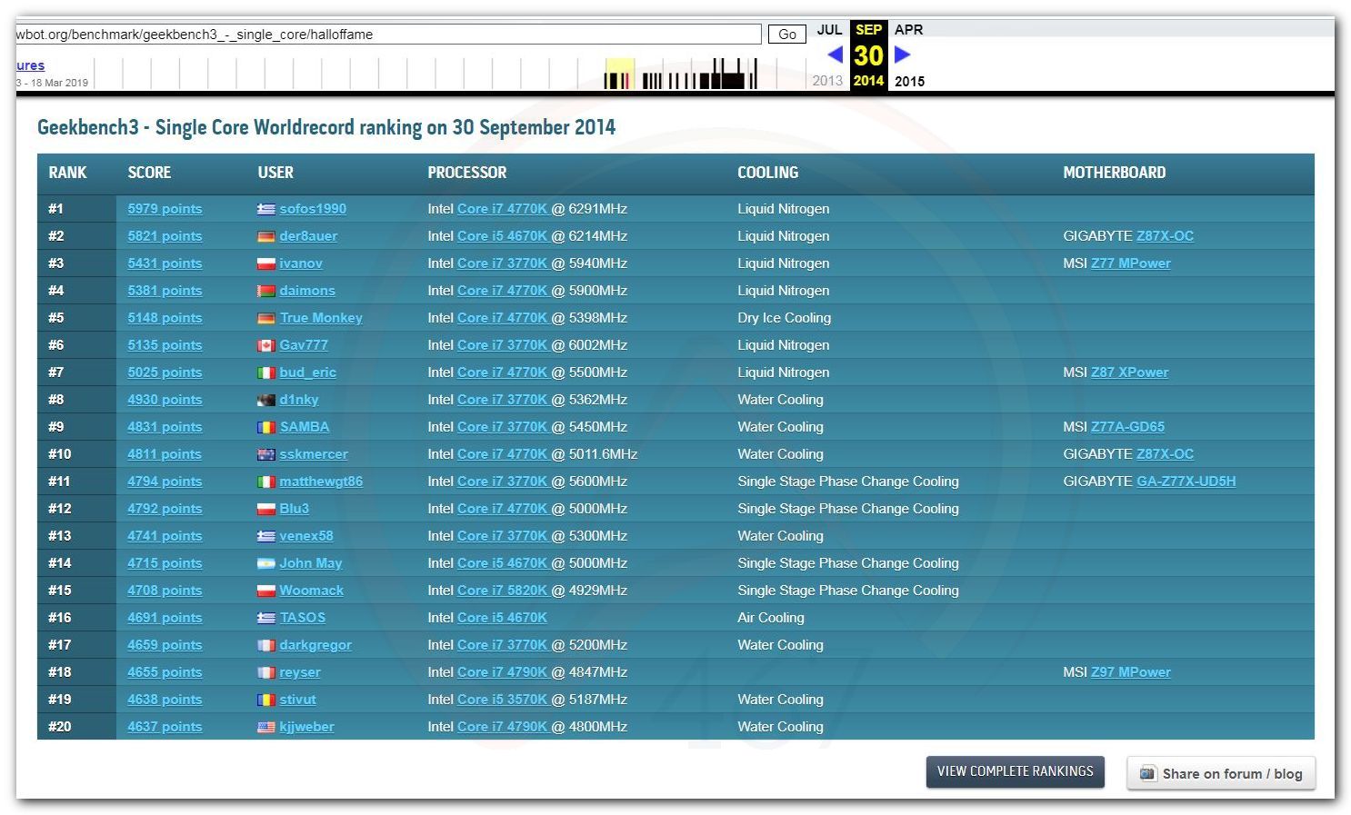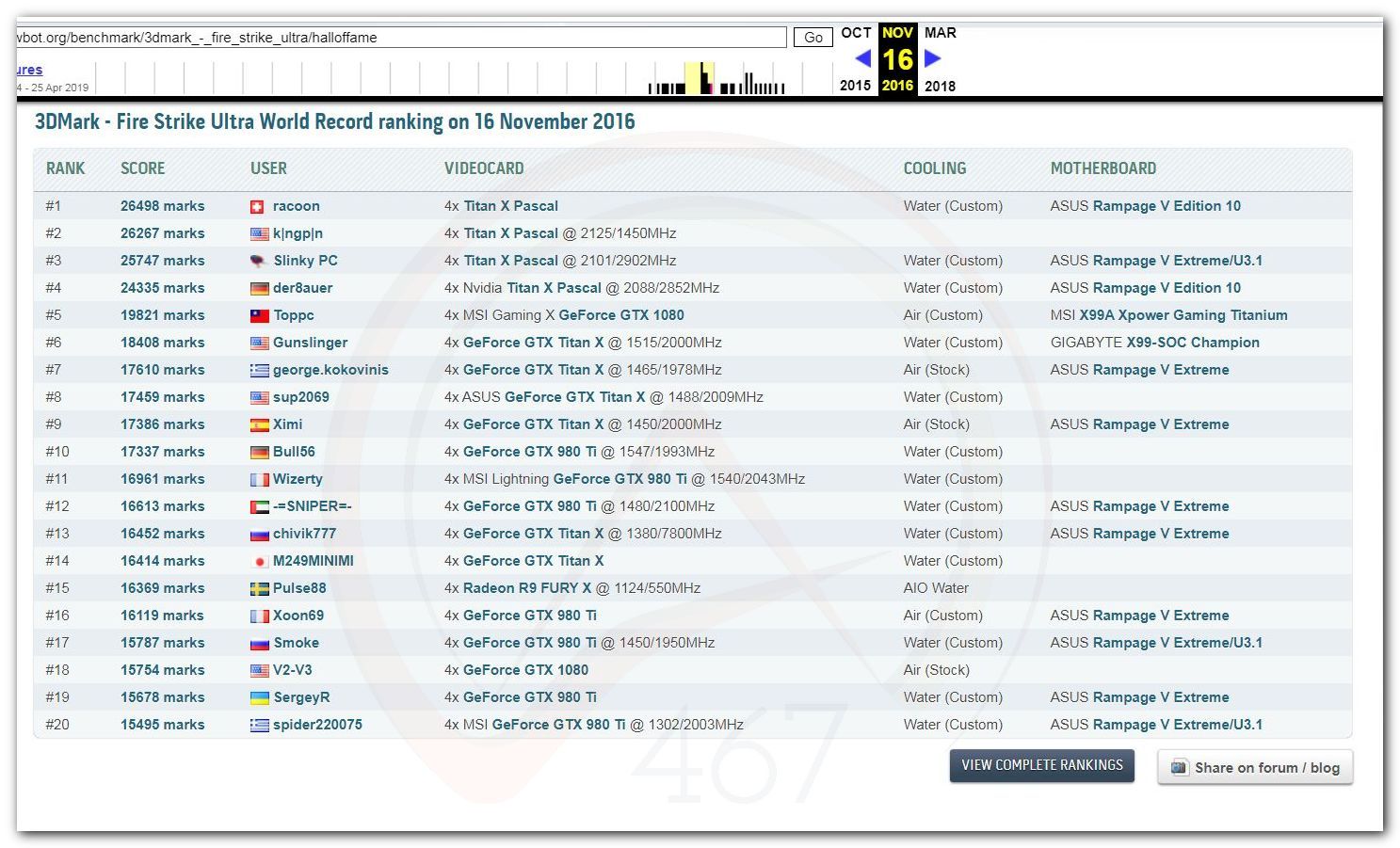 В 2000г. наверное самый бум наступил в момент появления 3DMark2000 и далее 2001, и создания базы этих результатов ORB на сайте MadOnion. В последствии перекочевала на Futuremark.