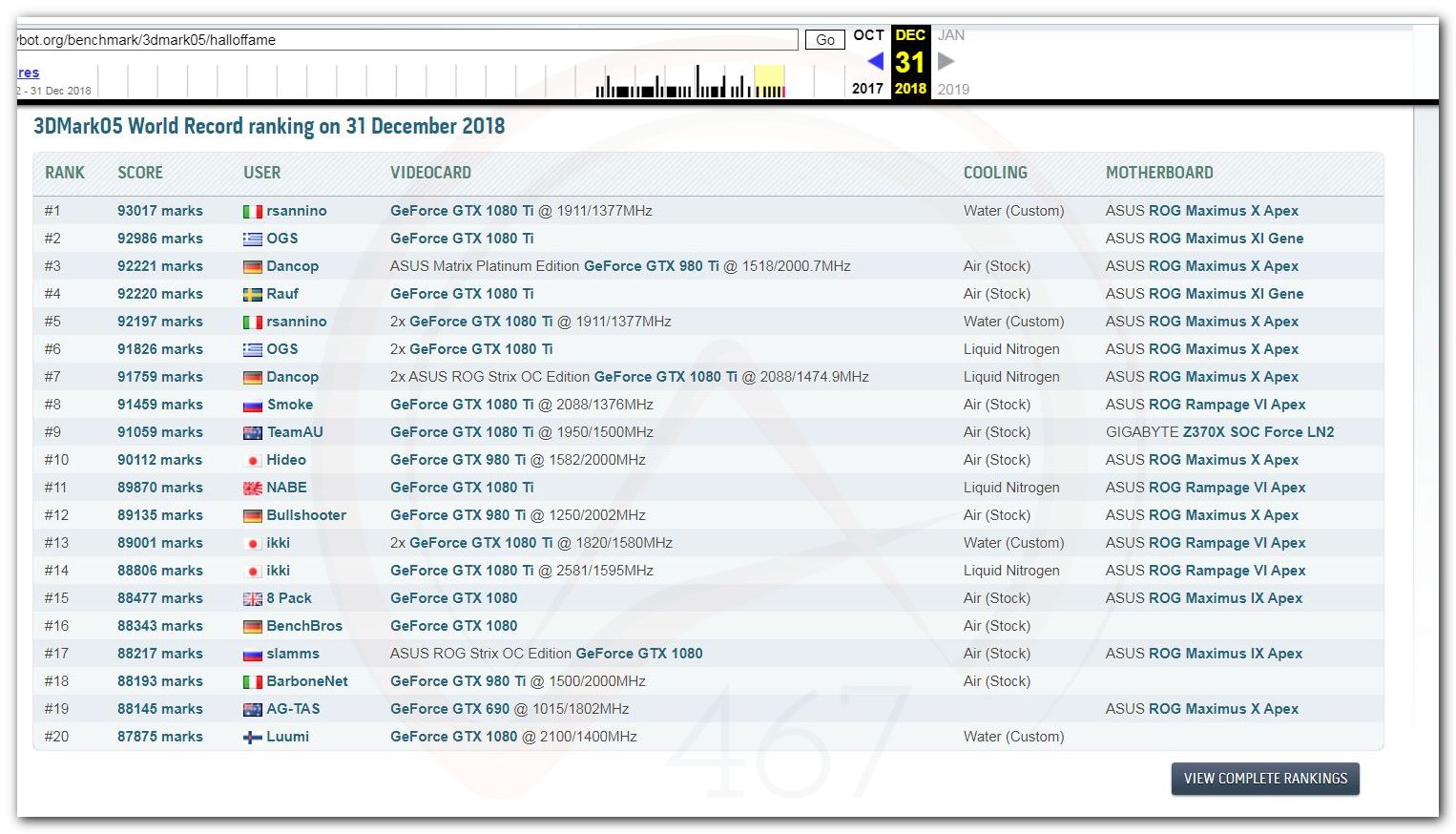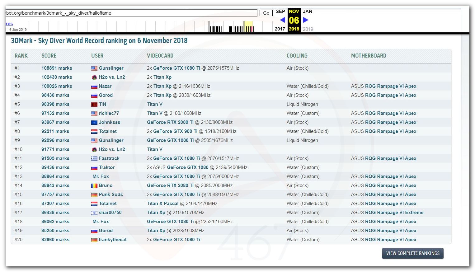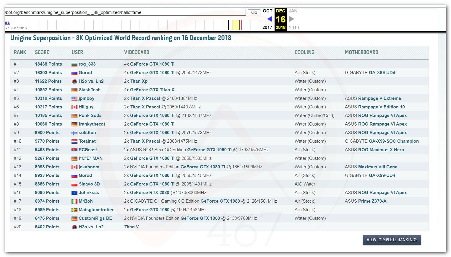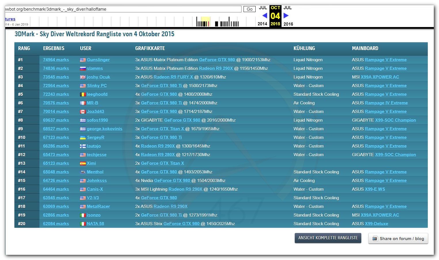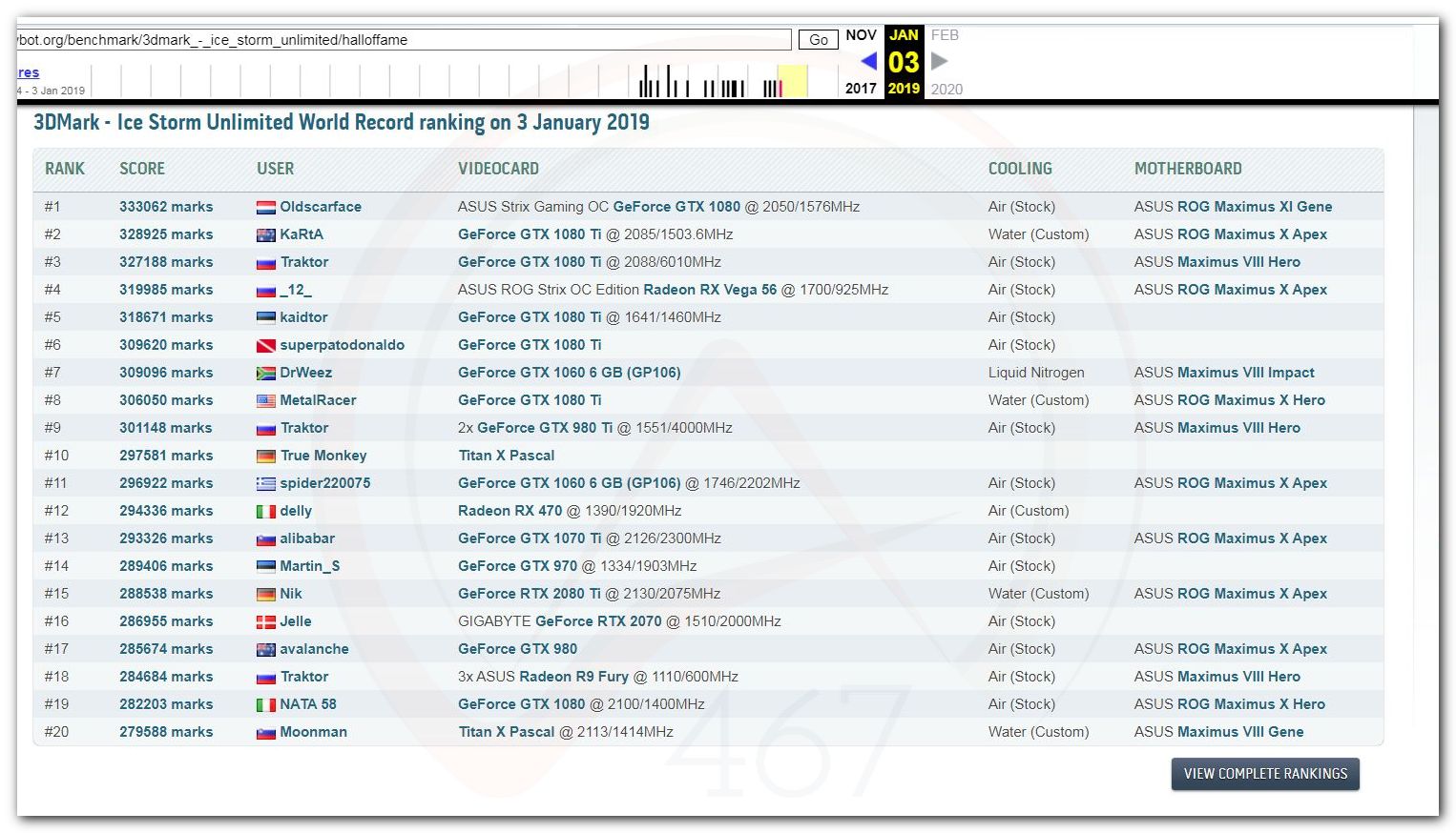 В 2000г. наверное самый бум наступил в момент появления 3DMark2000 и далее 2001, и создания базы этих результатов ORB на сайте MadOnion. В последствии перекочевала на Futuremark.