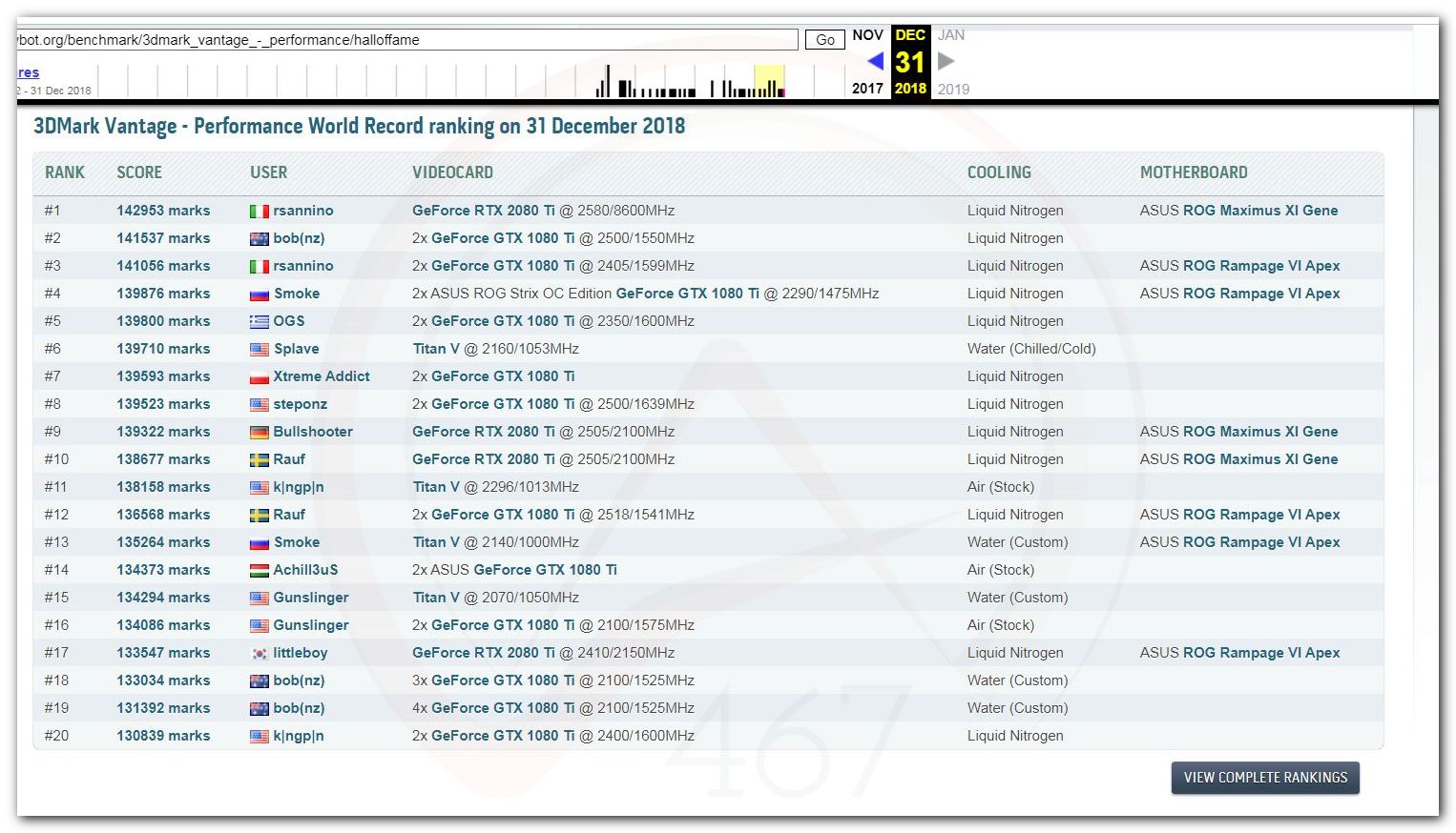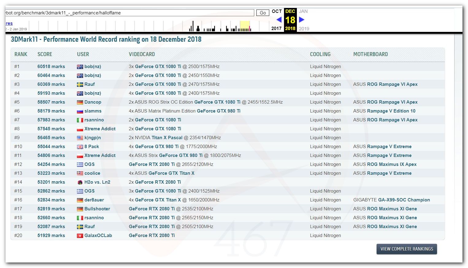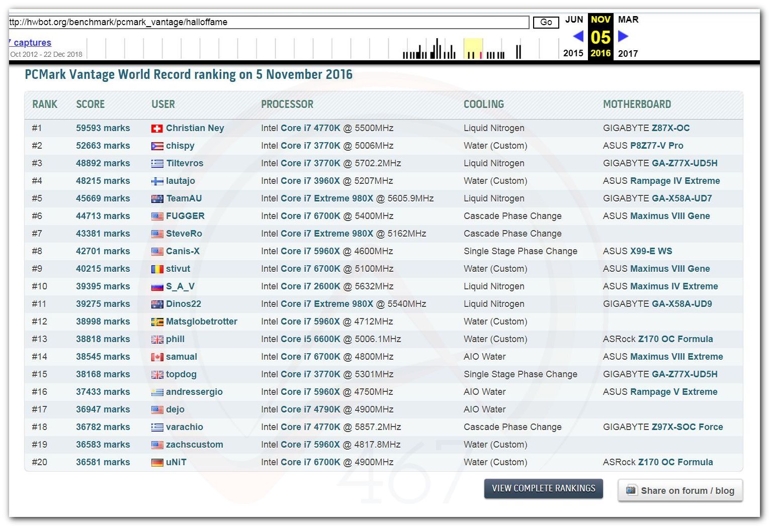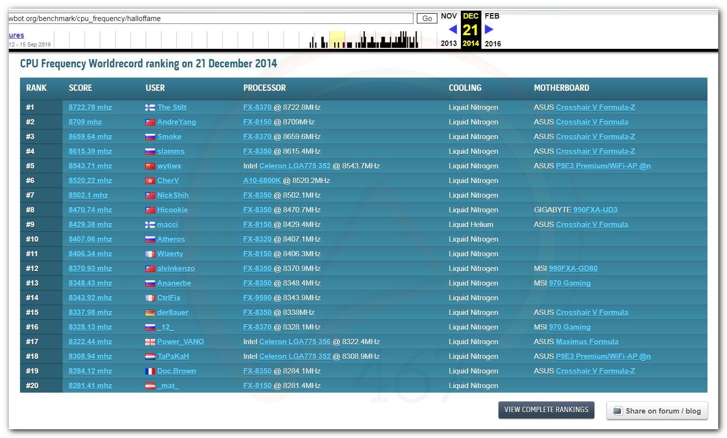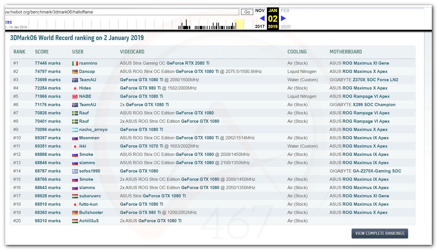 В 2000г. наверное самый бум наступил в момент появления 3DMark2000 и далее 2001, и создания базы этих результатов ORB на сайте MadOnion. В последствии перекочевала на Futuremark.
