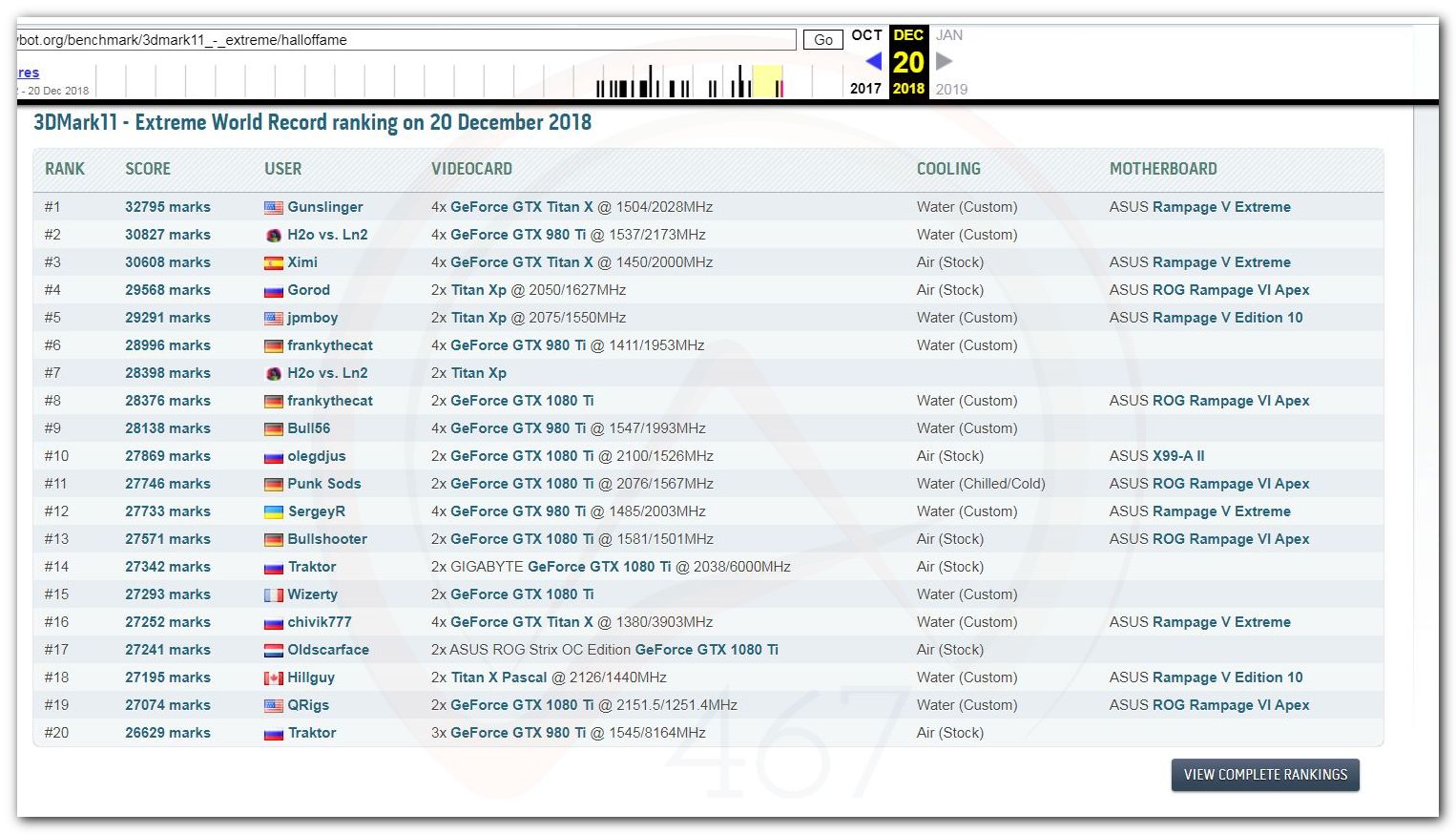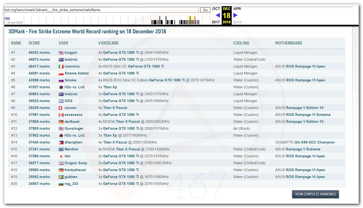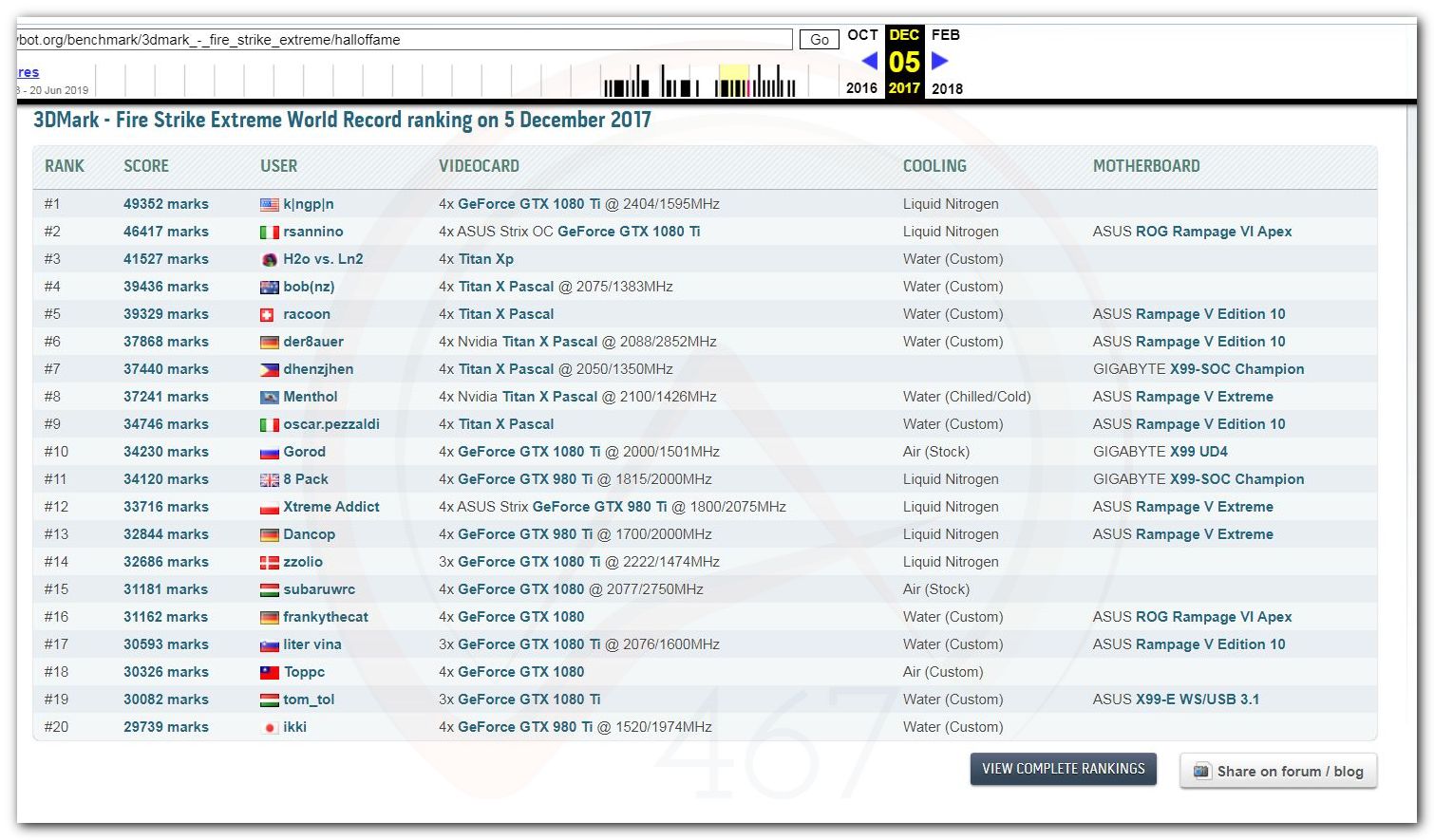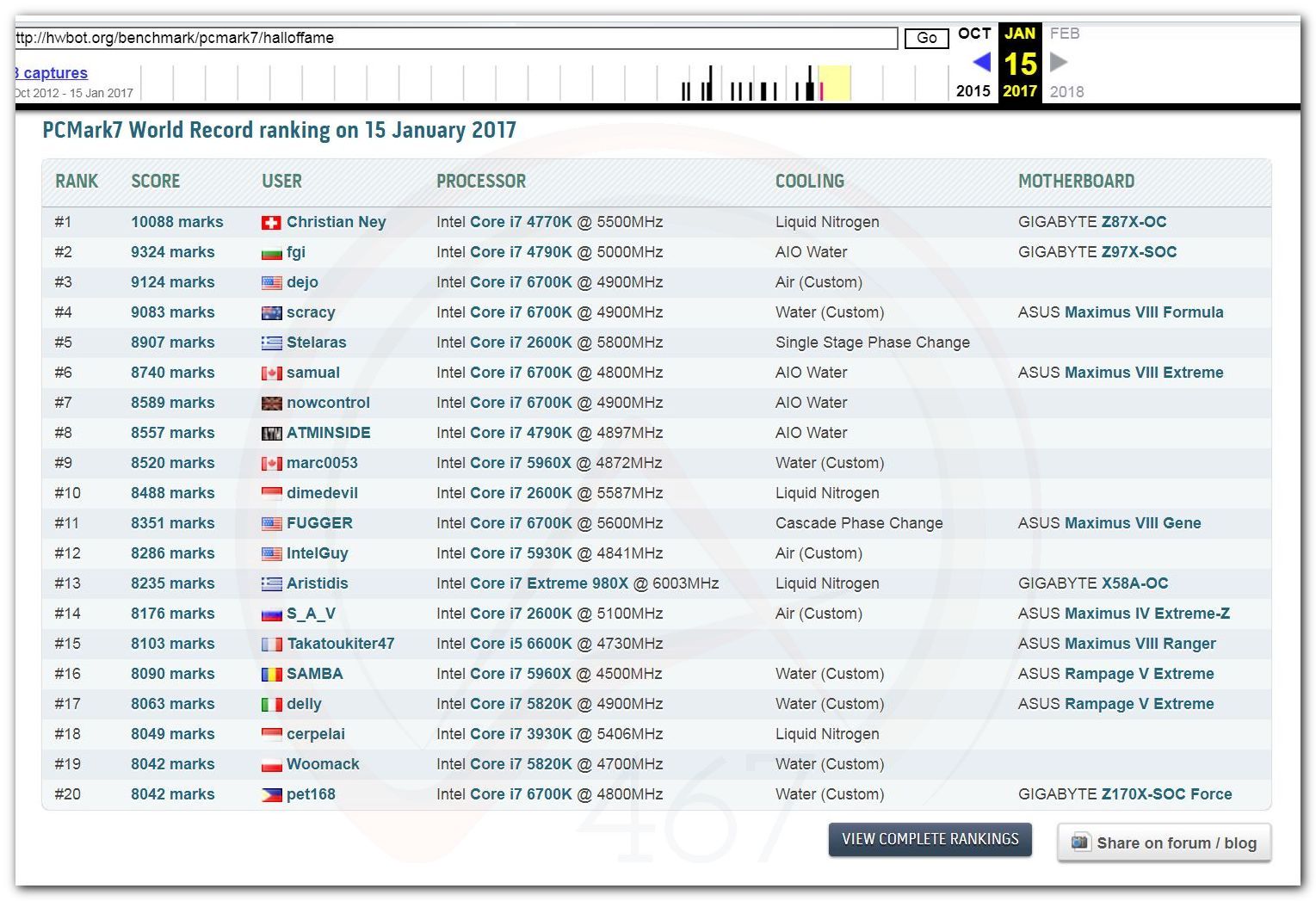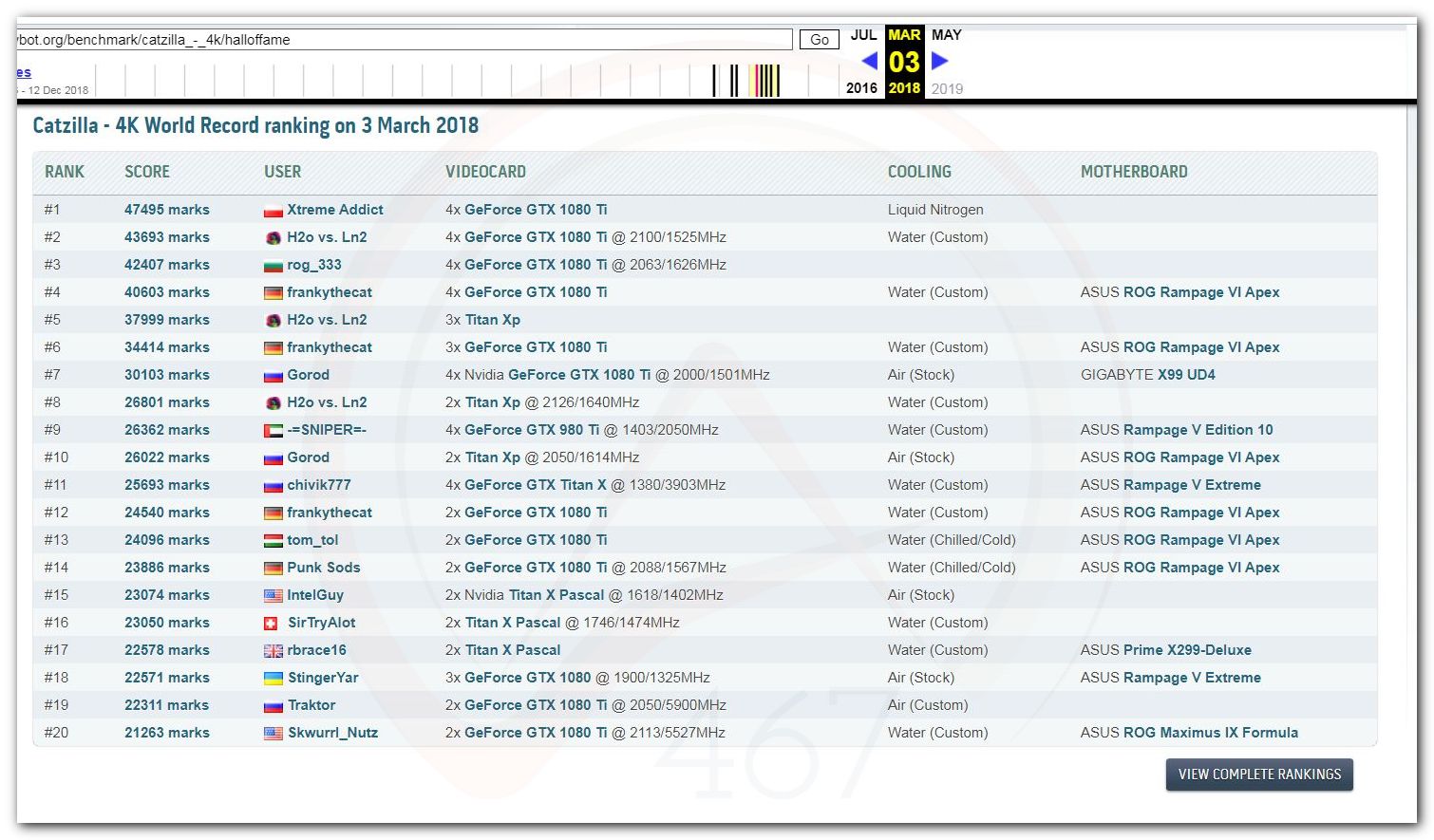 В 2000г. наверное самый бум наступил в момент появления 3DMark2000 и далее 2001, и создания базы этих результатов ORB на сайте MadOnion. В последствии перекочевала на Futuremark.