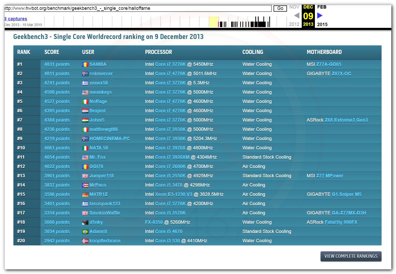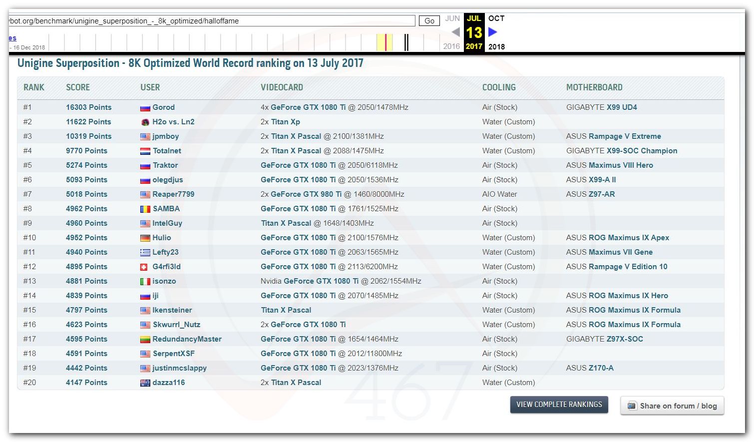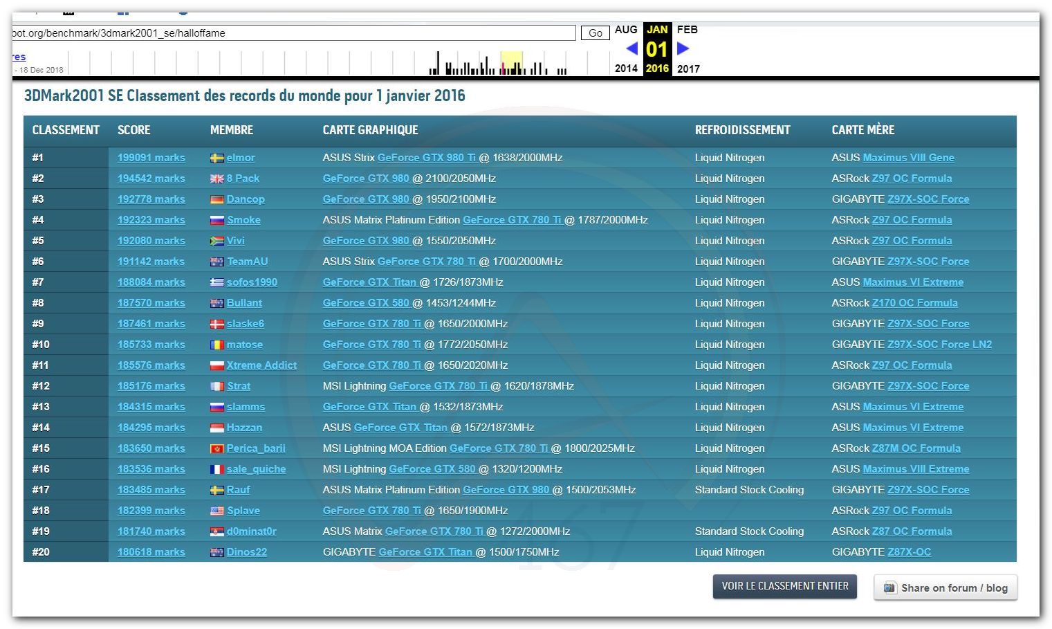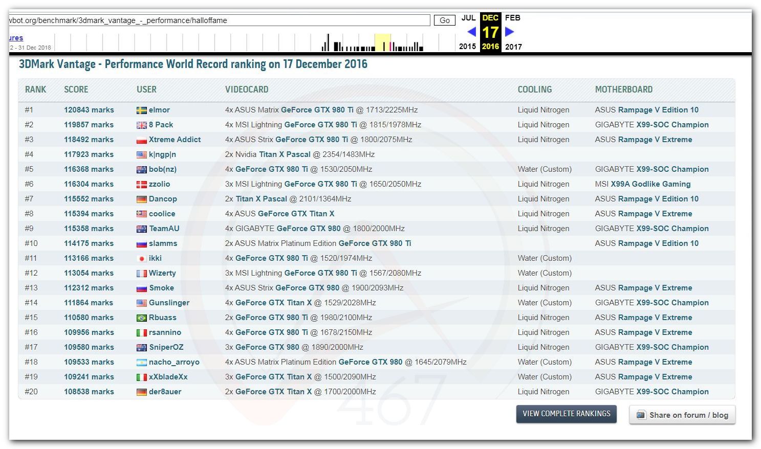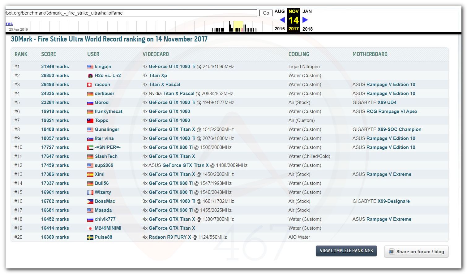 В 2000г. наверное самый бум наступил в момент появления 3DMark2000 и далее 2001, и создания базы этих результатов ORB на сайте MadOnion. В последствии перекочевала на Futuremark.